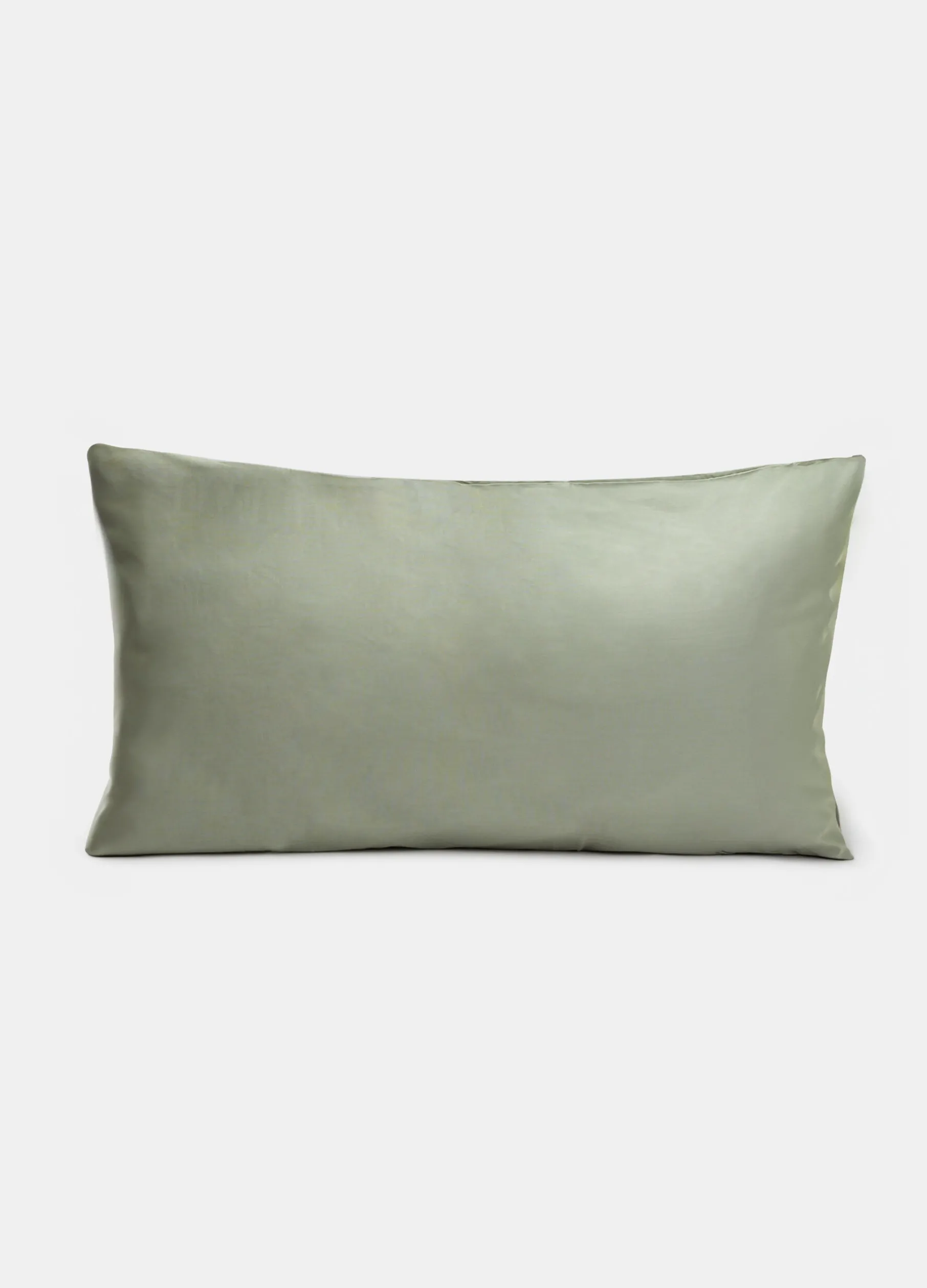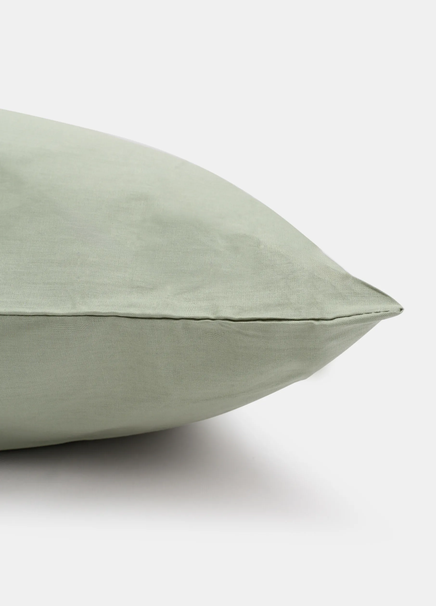 Set da due federe in tela di puro cotone verde salvia, con una particolare trama larga e visibile che mette in risalto la colorazione invernale e festosa. Dimensioni: 80 x 50 cm.