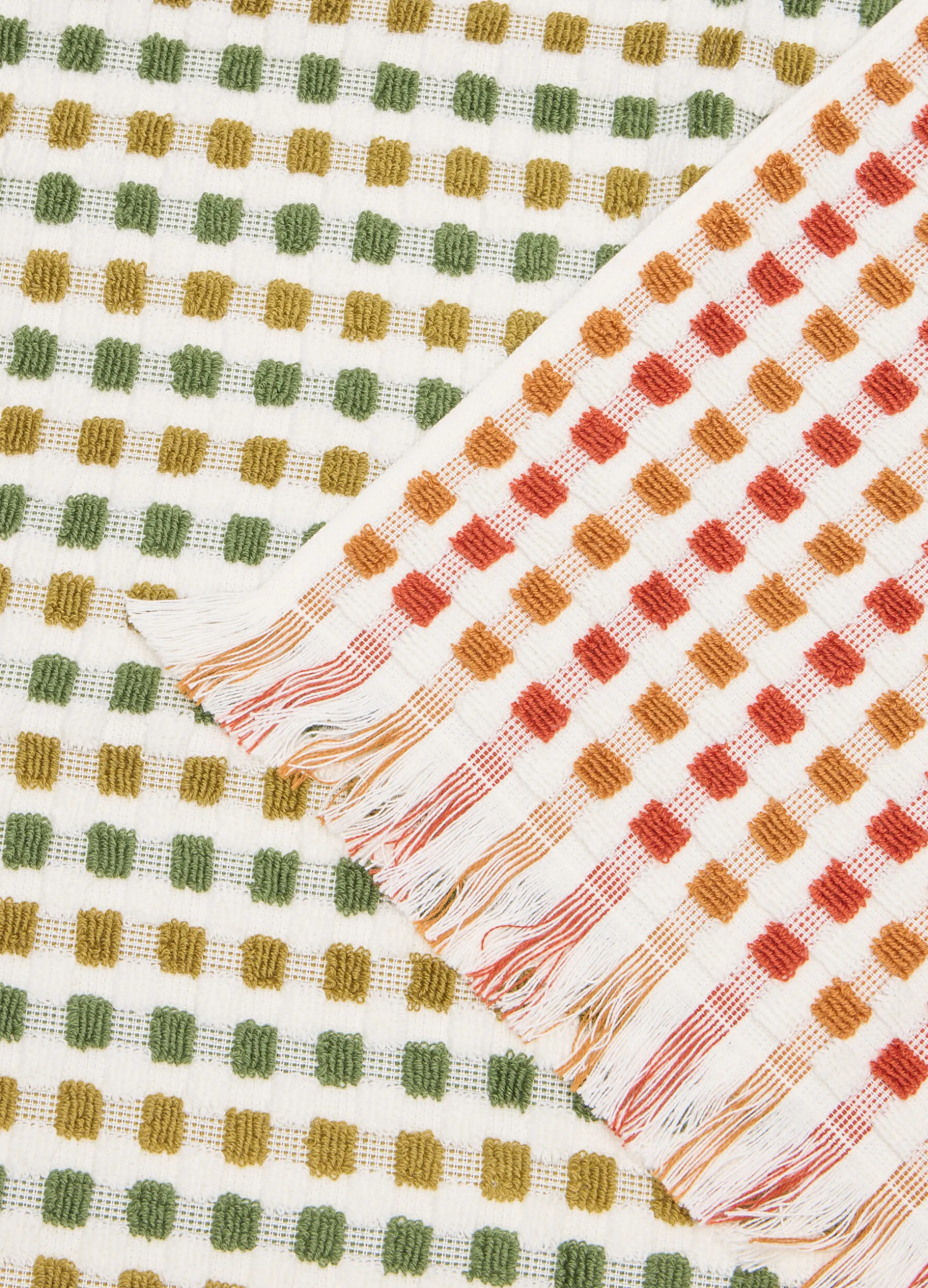 Set da due strofinacci rettangolari da cucina realizzati in spugna di puro cotone, resistente e assorbente, e arricchiti da un motivo a quadretti nei toni del verde e dell’arancione, pe richiamare le atmosfere autunnali. Dimensioni: 60 x 50 cm.