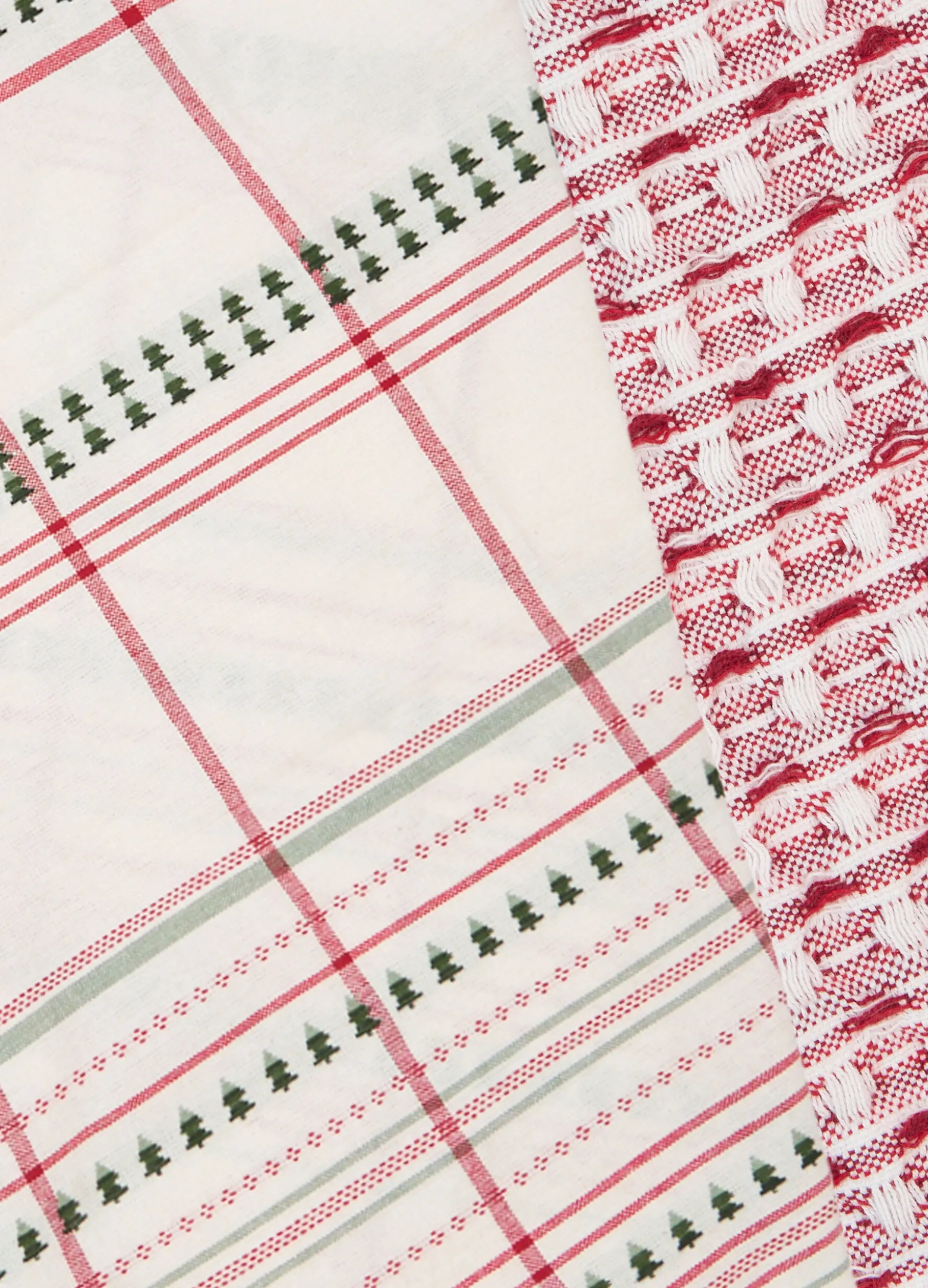 Due strofinacci in cotone, da usare singolarmente o abbinati per arricchire di allegria l’atmosfera domestica nel periodo delle feste, realizzati in puro cotone e in due varianti: a quadretti bianchi e rossi effetto seersucker e a quadrettoni con un delicato motivo di abeti natalizi. Dimensioni: 70 x 50 cm.