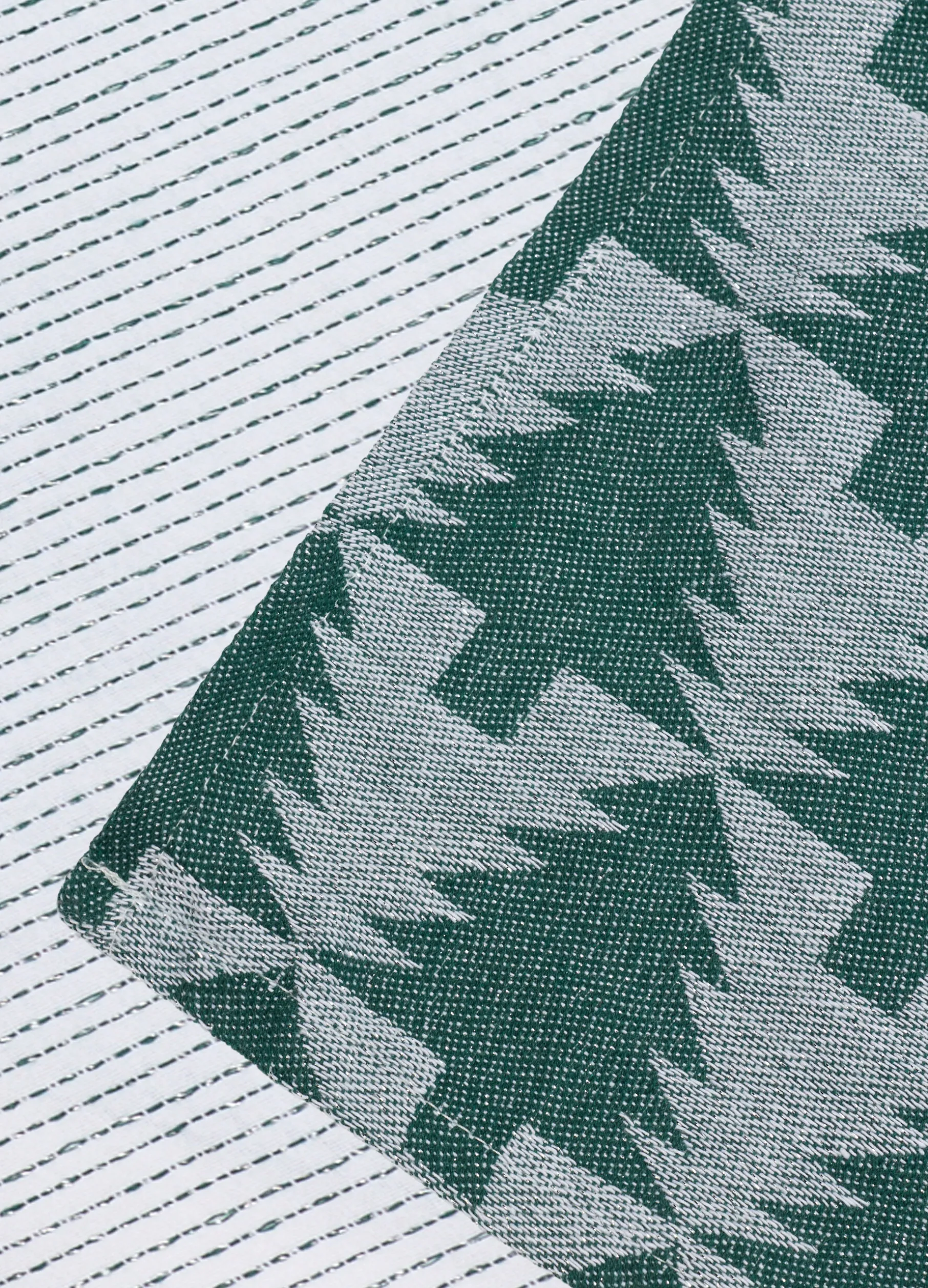 Due strofinacci in cotone, da usare singolarmente o abbinati per arricchire il periodo delle feste di un tocco allegro e ricercato, realizzati in puro cotone e in due varianti: in semplice tela bianca con righe verdi o con motivo natalizio effetto jacquard e filo metallico. Dimensioni: 70 x 50 cm.