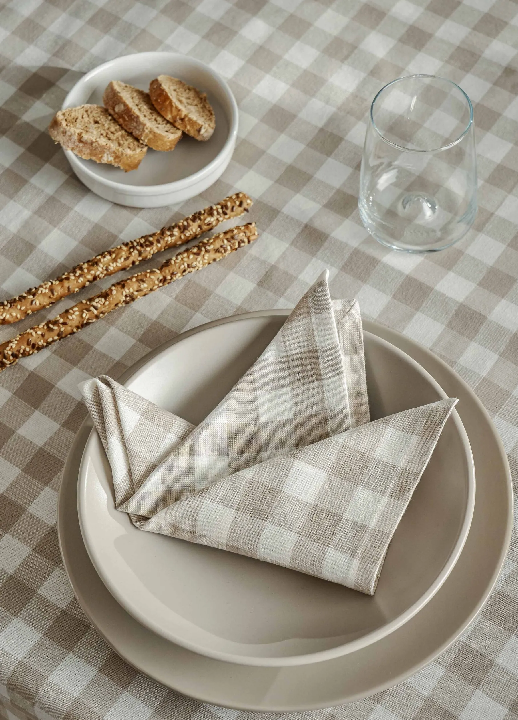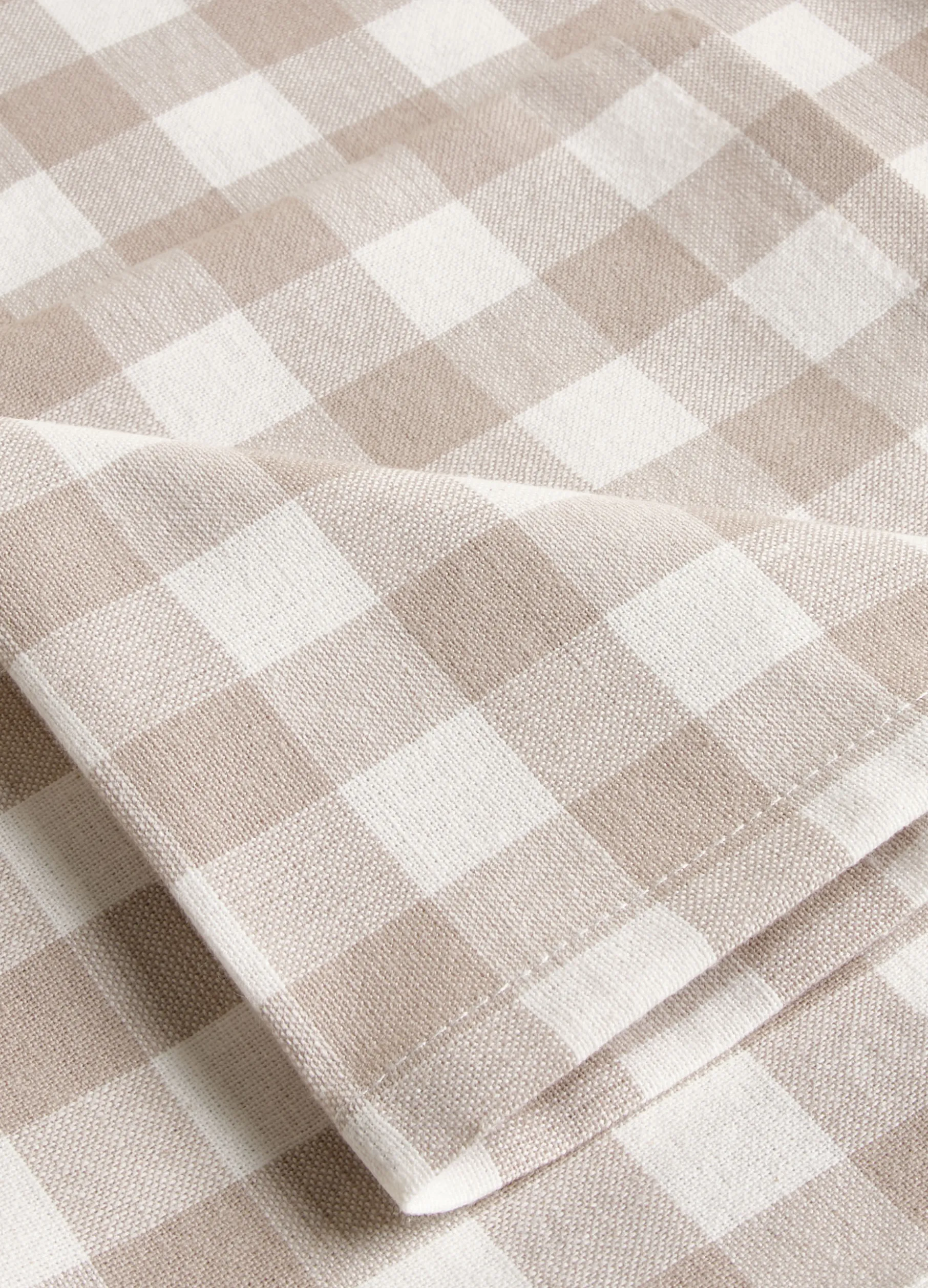 Set da due tovaglioli in puro cotone, resistente e leggero, arricchito da un classico motivo a quadretti bianco e marrone chiaro.