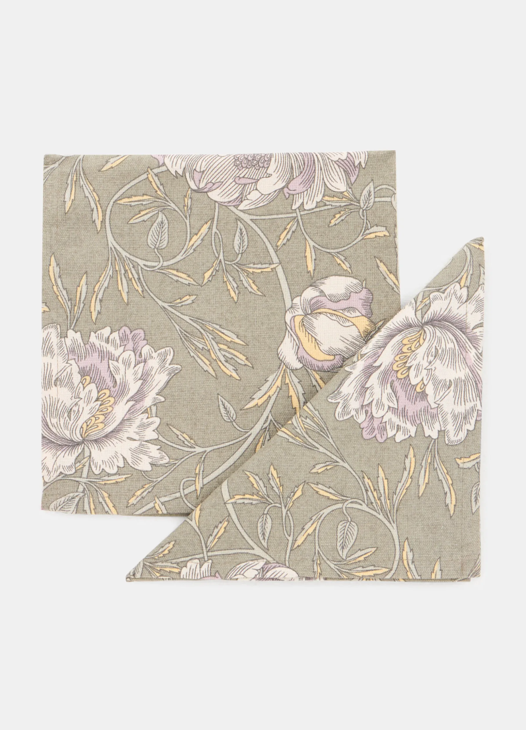 Set da due tovaglioli realizzati in puro cotone, leggero e versatile, ideale per l’uso quotidiano. La stampa a fiori dal gusto rétro spicca sul fondo grigio antracite. Dimensioni: 42 x 42 cm.