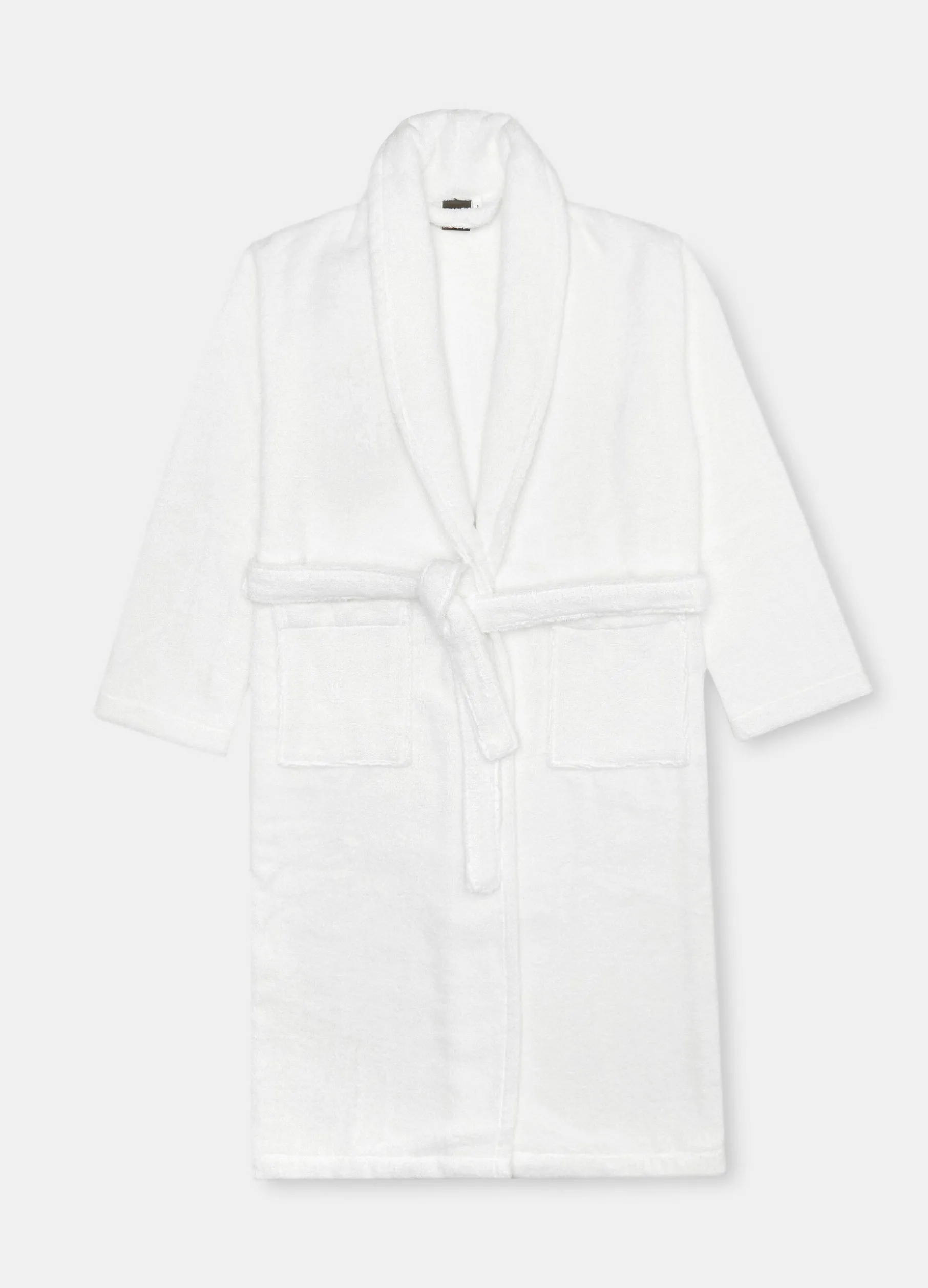 Accappatoio a scialle New Best Quality in puro cotone Made in Portogallo. Due tasche a toppa davanti e fusciacca in vita. Tinta unita. Taglia L.