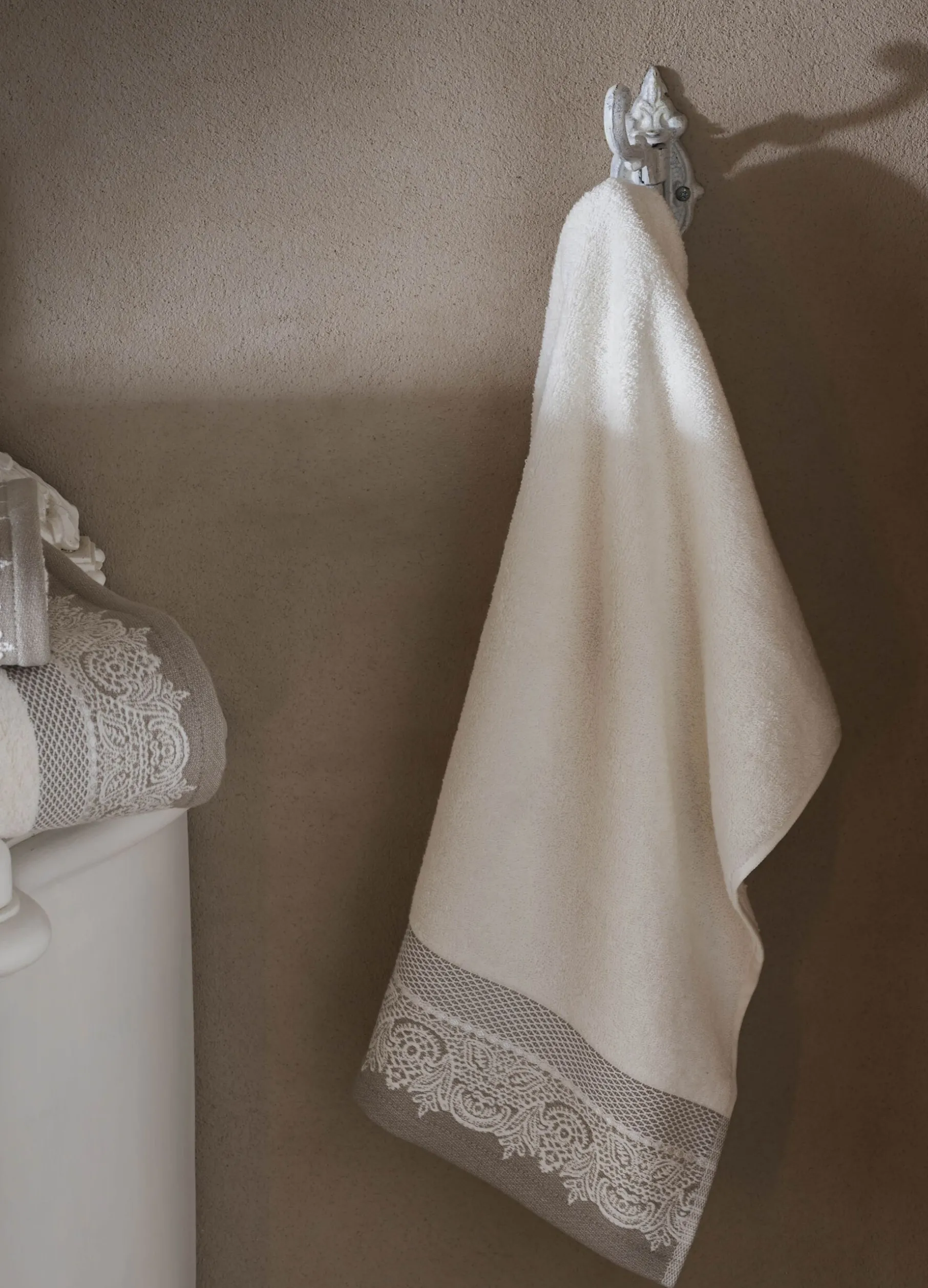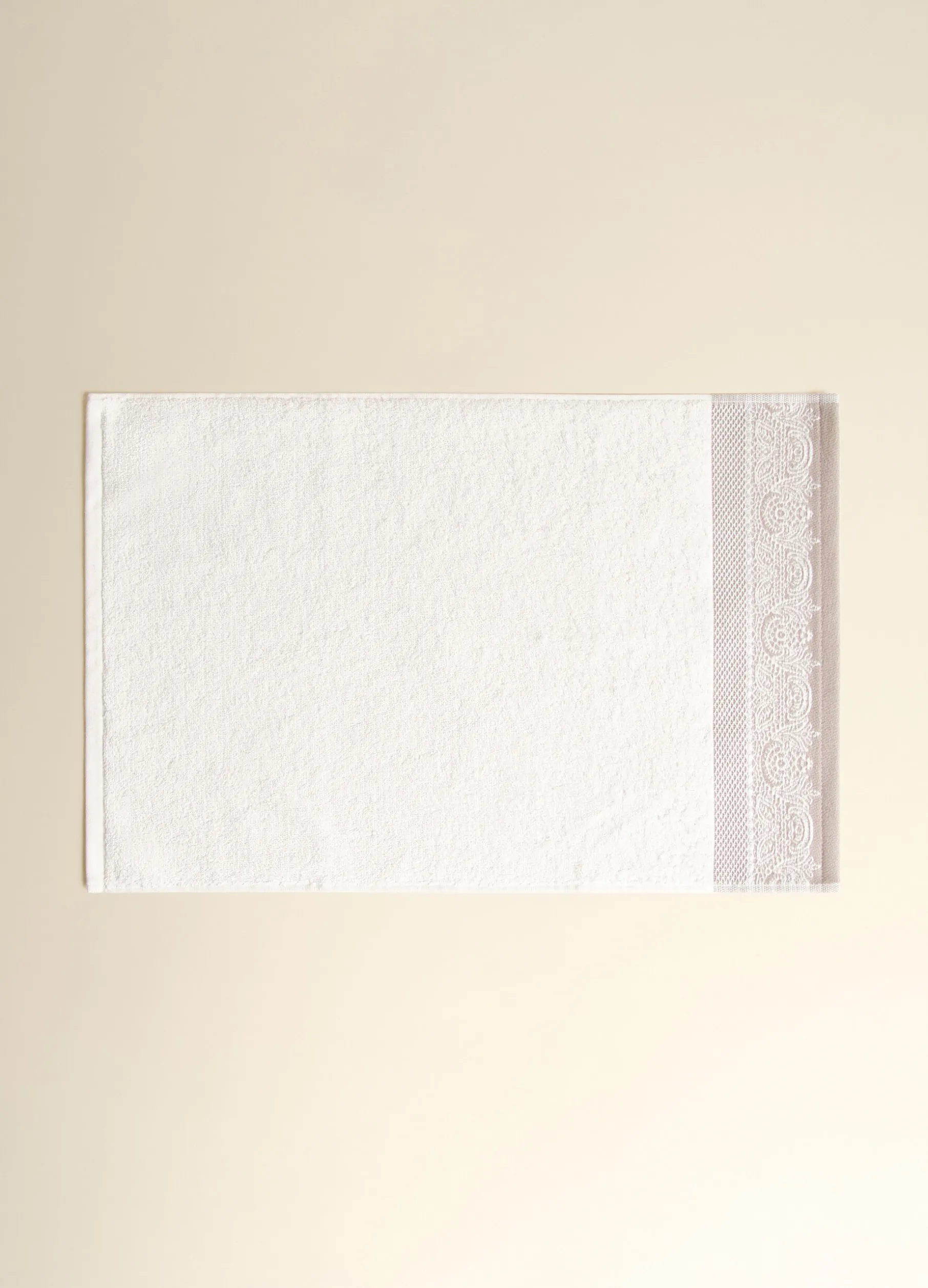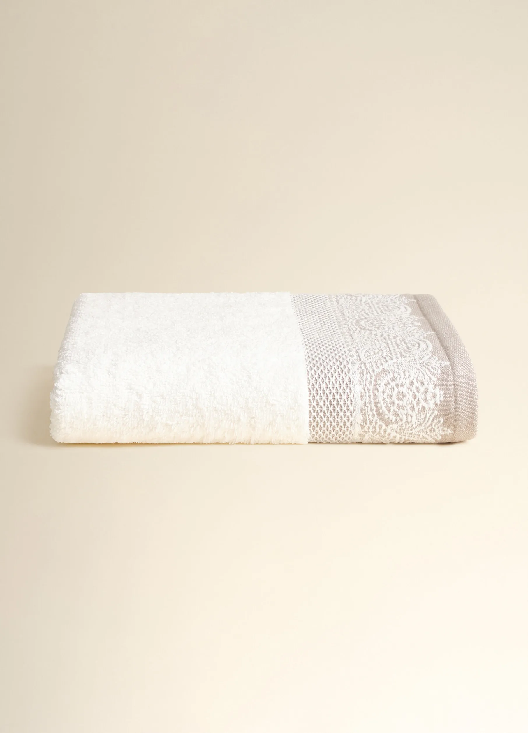 Asciugamano in puro cotone con bordo ricamato. Dimensioni 100x60cm. Made in Portugal.