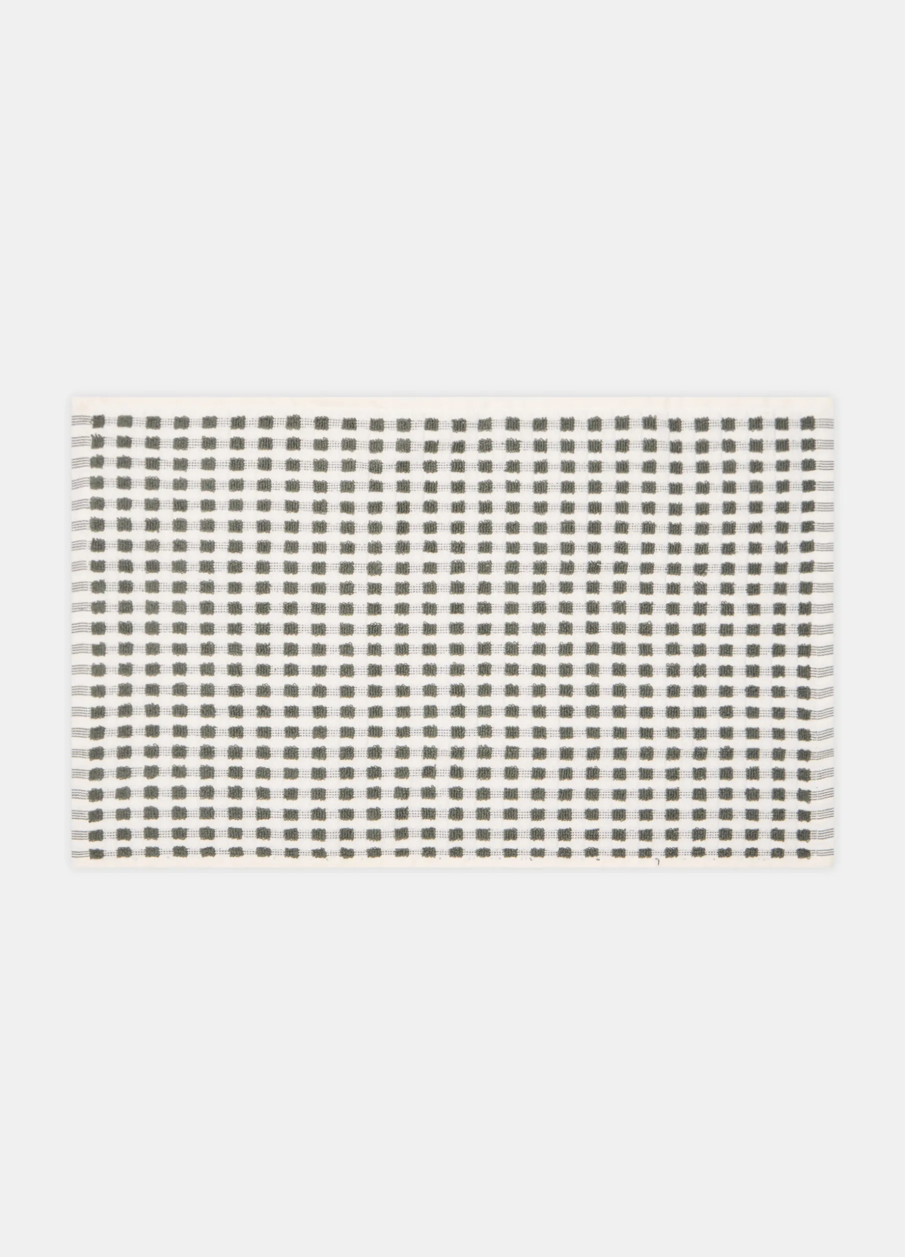 Asciugamano piccolo per gli ospiti realizzato in spugna di puro cotone a nido d’ape, un classico tessuto leggero e resistente, perfetto per assorbire l’acqua pur restando delicato sulla pelle. La trama a scacchi alterna il fondo color crema a riquadri verde scuro. Dimensioni: 50 x 30 cm.