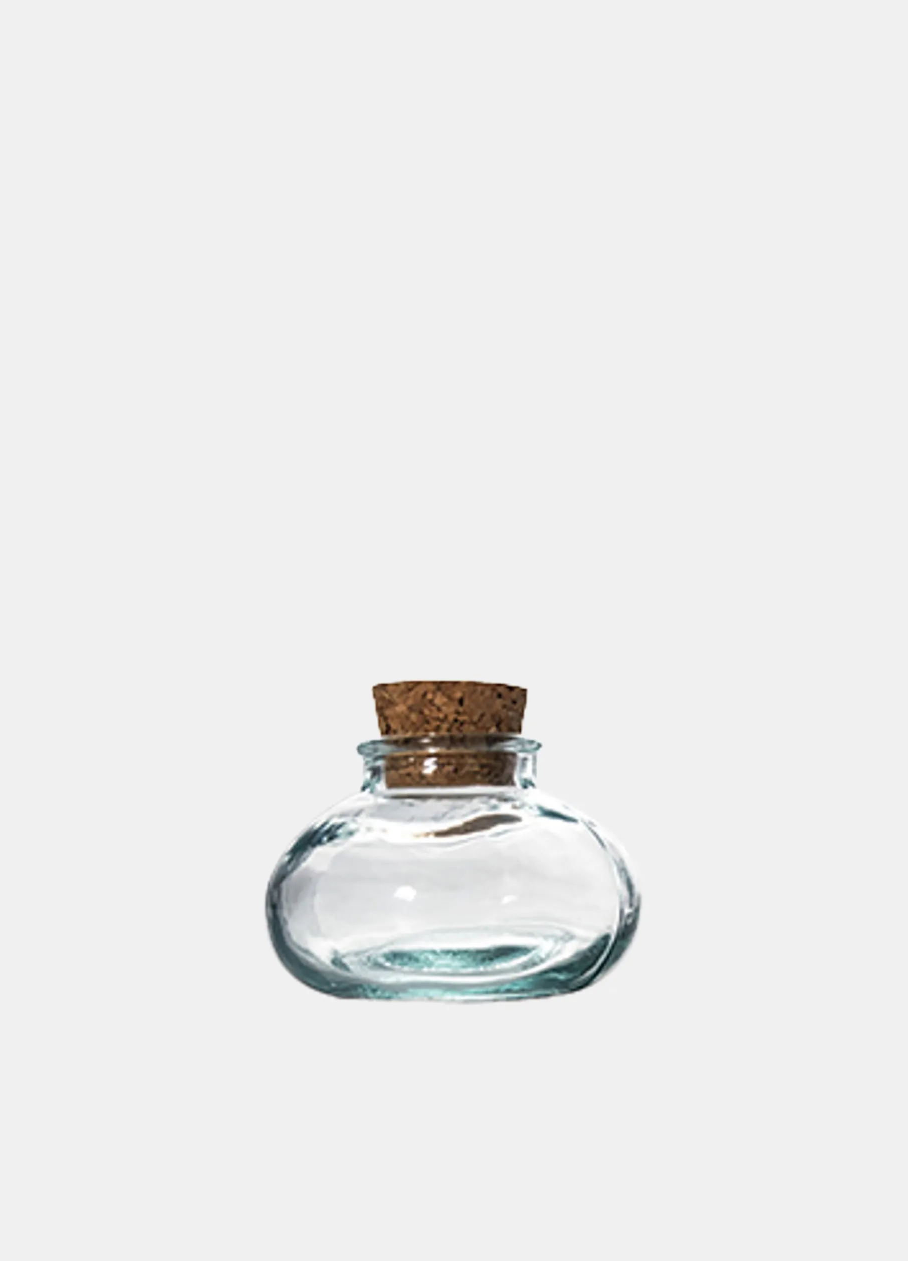Barattolo portaspezie da cucina in vetro riciclato trasparente con tappo in sughero.