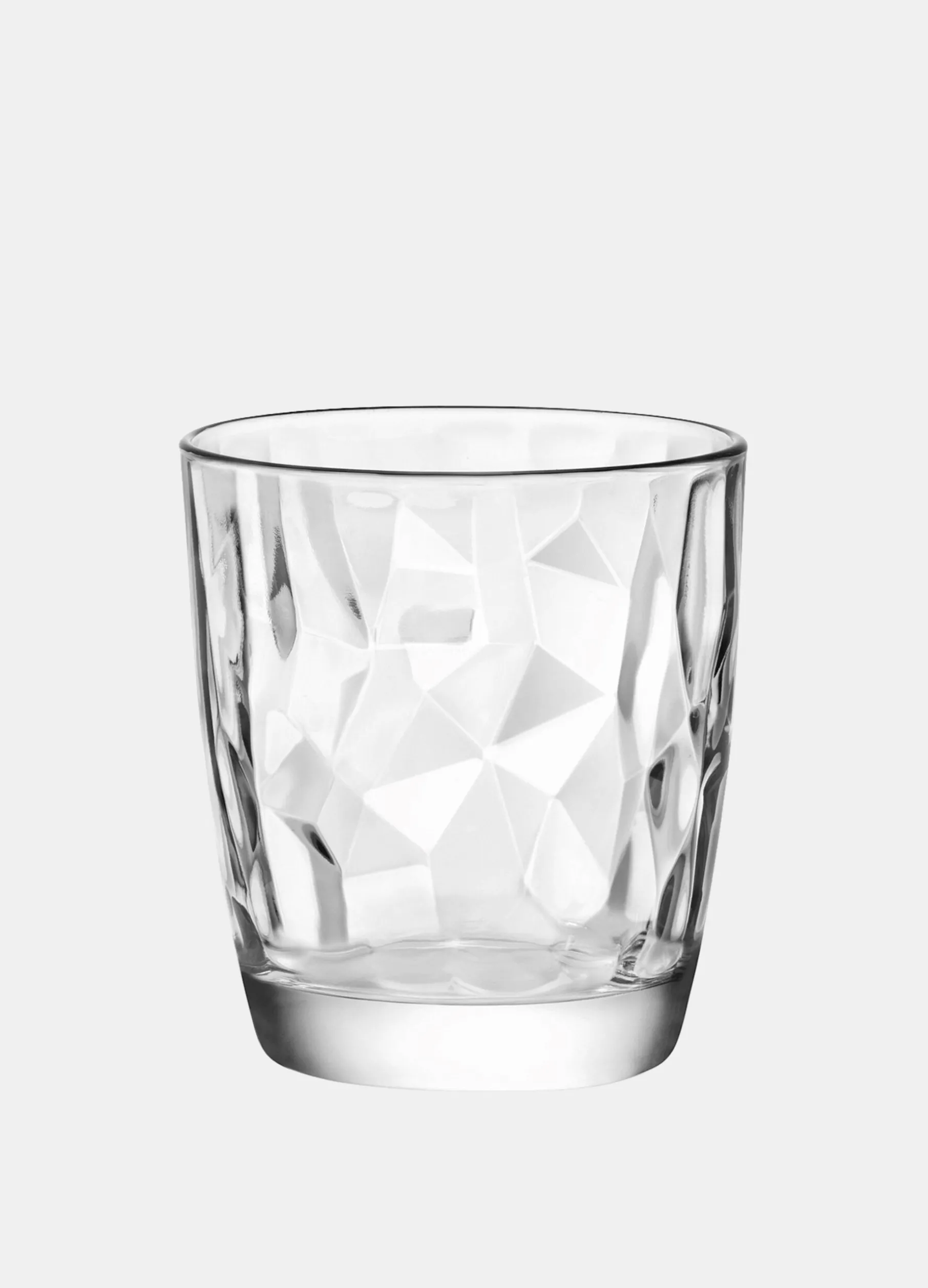 Bicchiere lavorato effetto Dimonda in vetro. Dimensioni 8x9x8 cm.