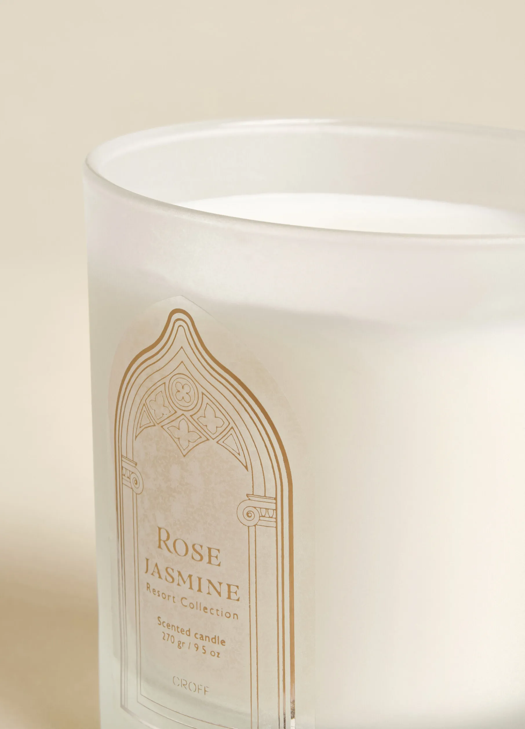 Candela rotonda in contenitore di vetro satinato e trasparente, arricchito da un’evocativa stampa a contrasto sul davanti. La fragranza alla rosa e gelsomino evoca i caldi aromi delle sere d’estate. Altezza: 9 cm; diametro: 28 cm.