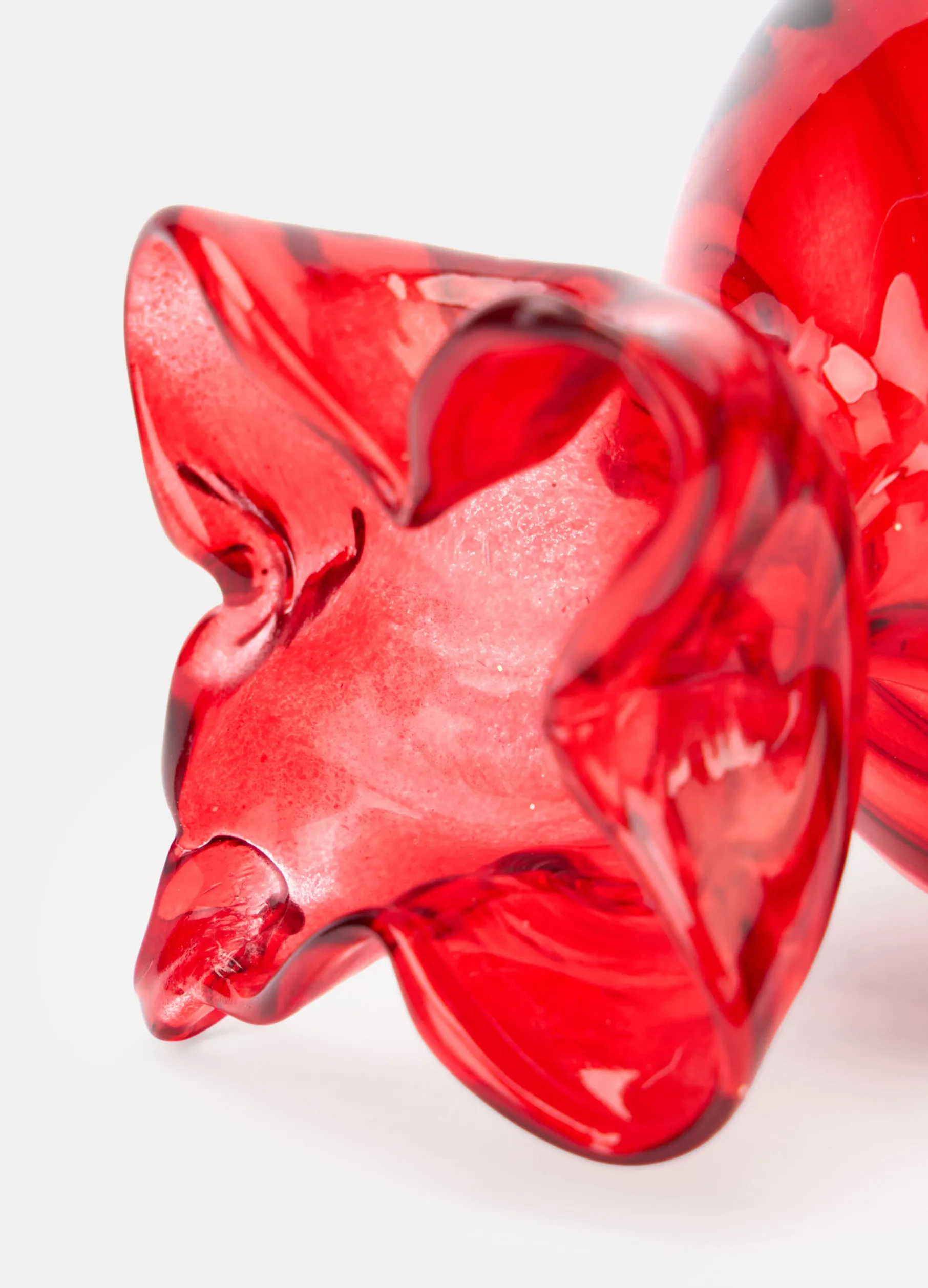 Decorazione allegra e ricercata in vetro dipinto a forma di caramella: il centro rotondo e le due estremità ondulate esaltano la tinta rossa leggermente irregolare. Altezza: 11 cm; diametro: 6 cm.