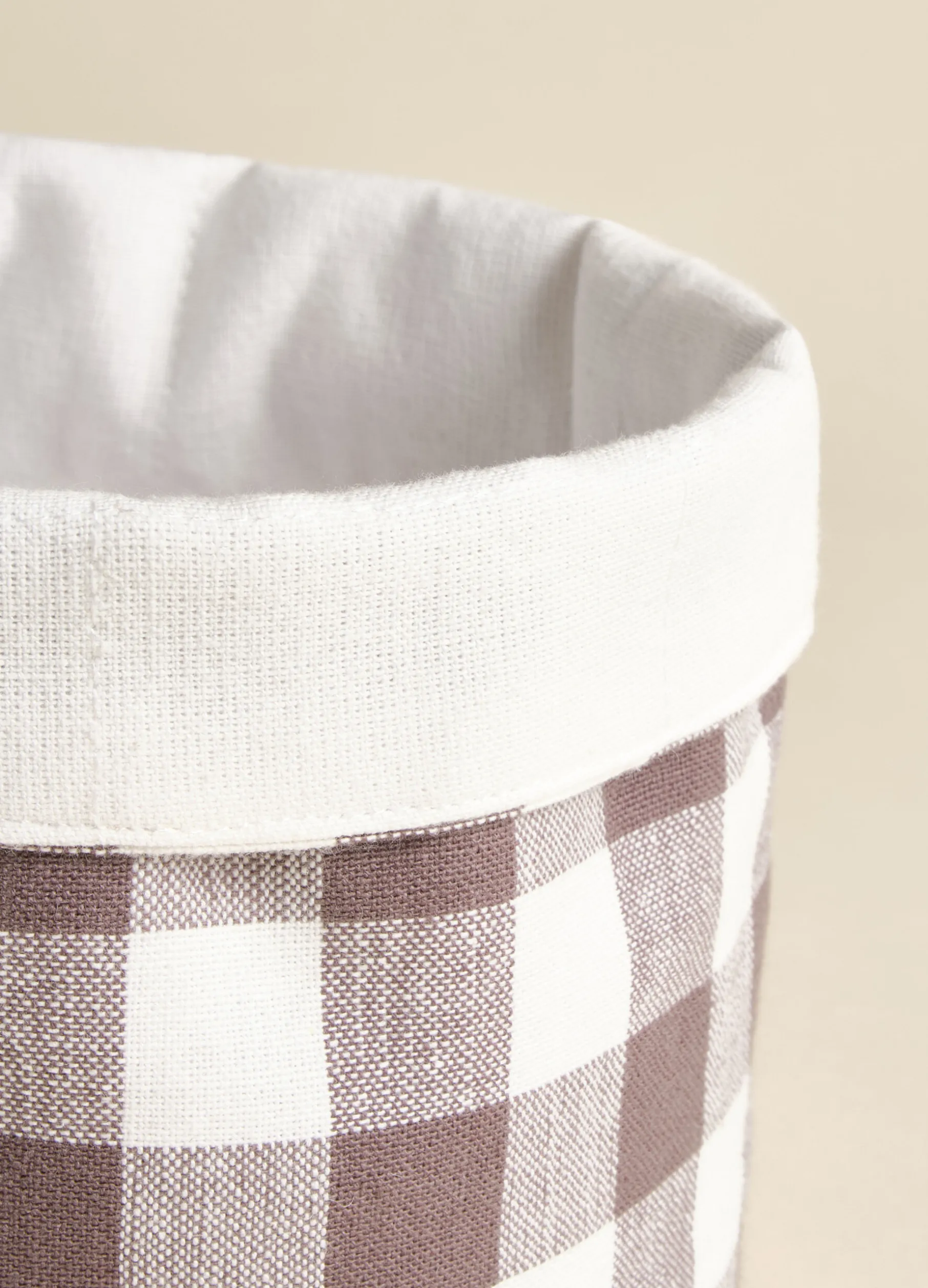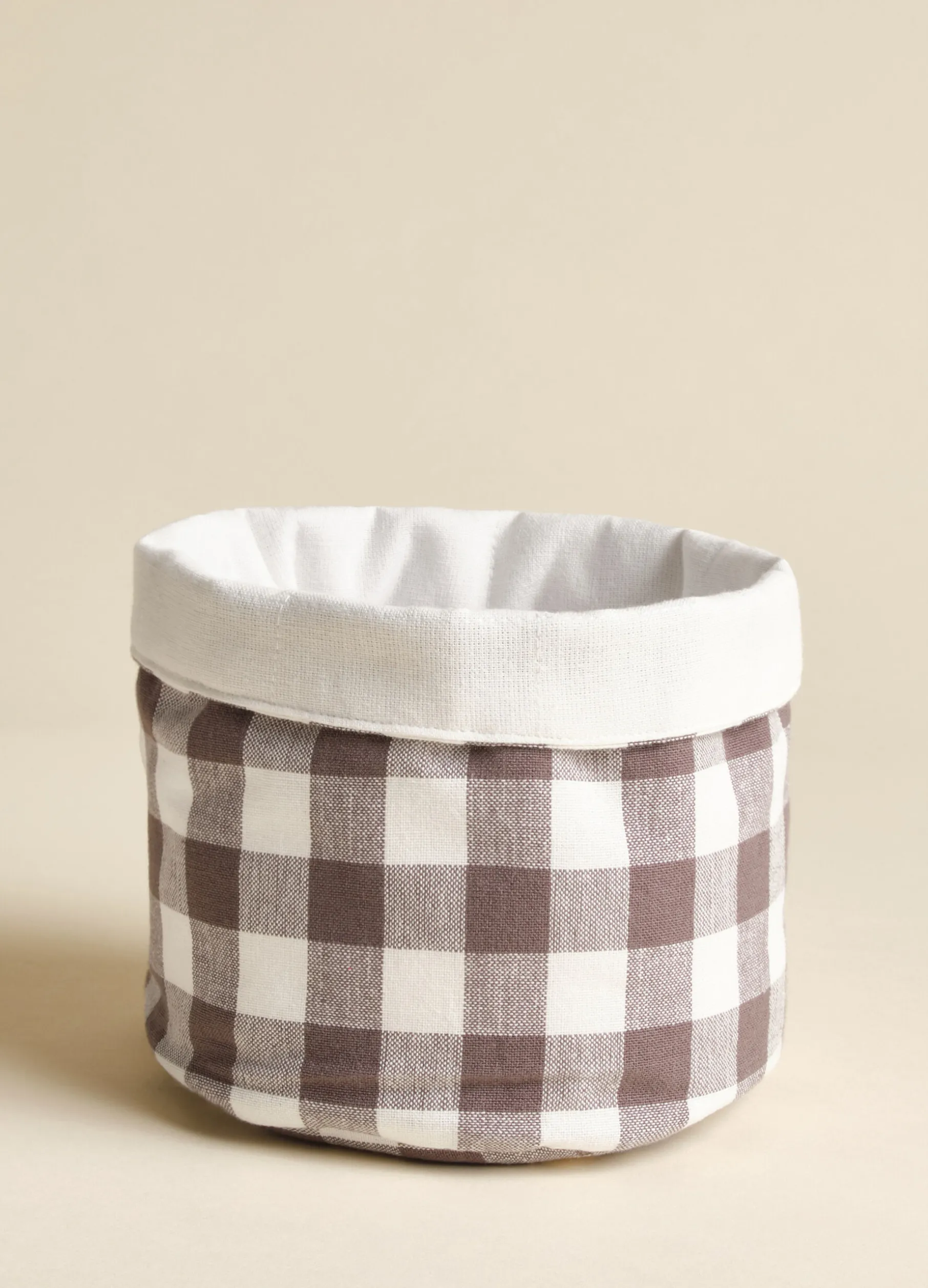 Cestino per pane e vivande realizzato in cotone morbido ma resistente, ottimo per l’utilizzo quotidiano. L’esterno con motivo bianco e marrone a quadretti contrasta con l’interno bianco.