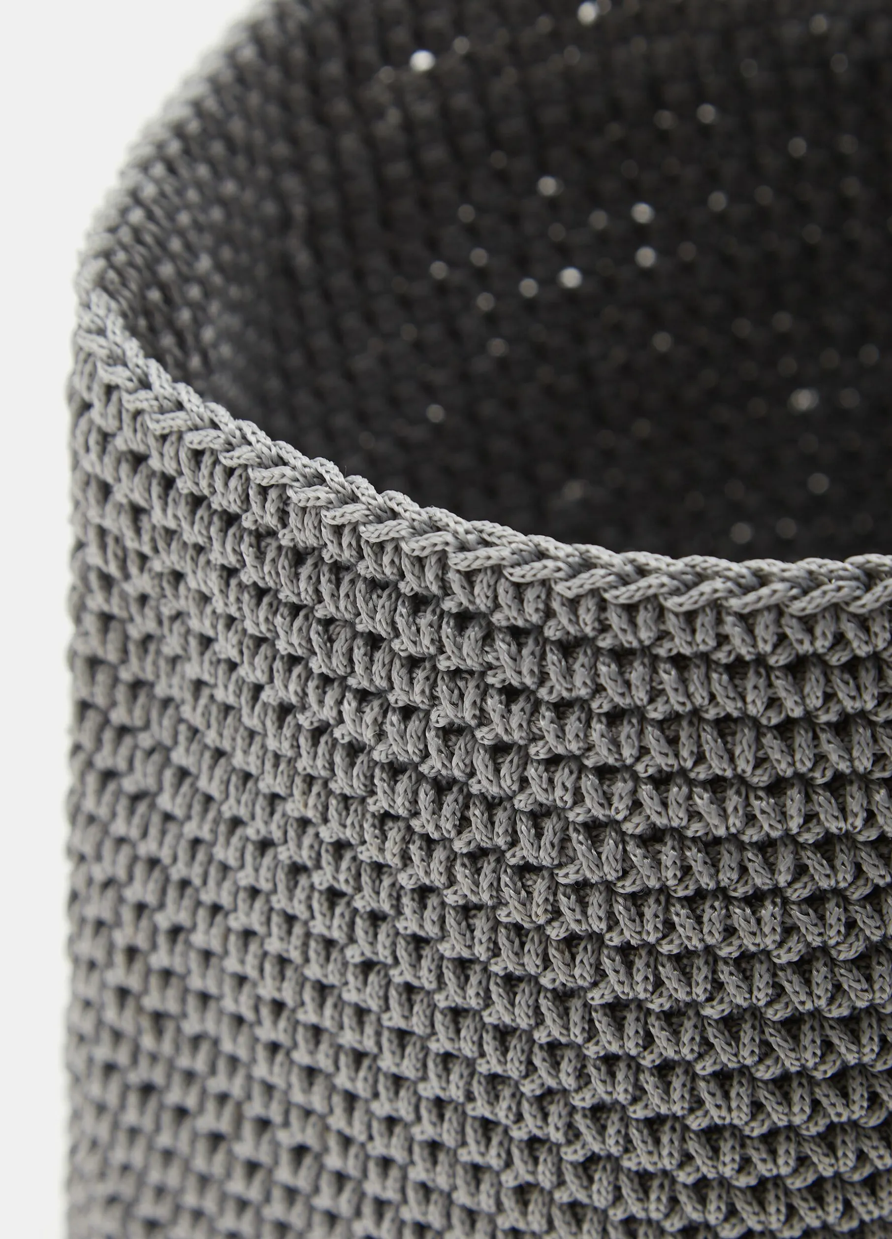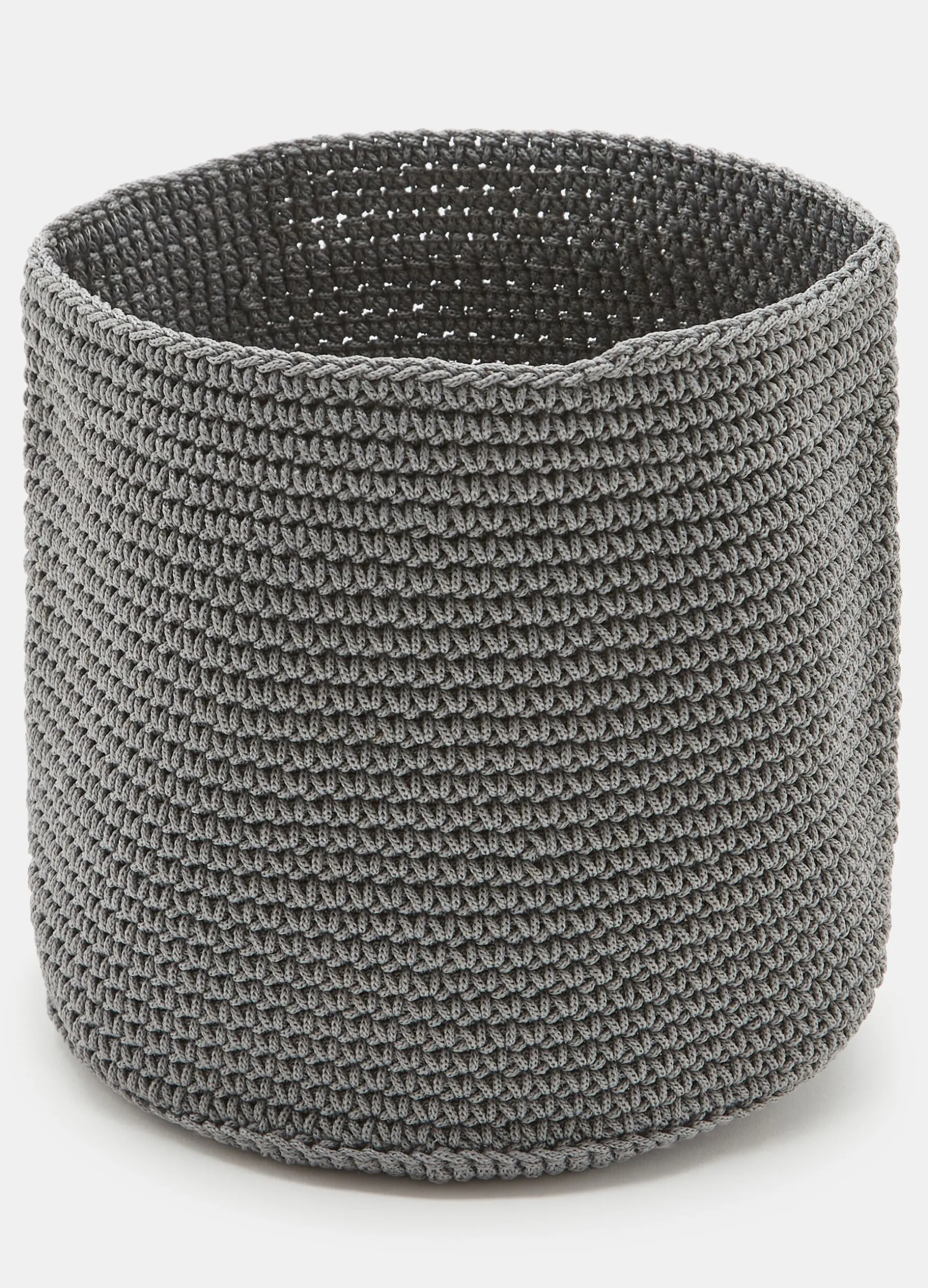 Cesto portaoggetti in tessuto intrecciato. Forma cilindrica. Diametro 19 cm.