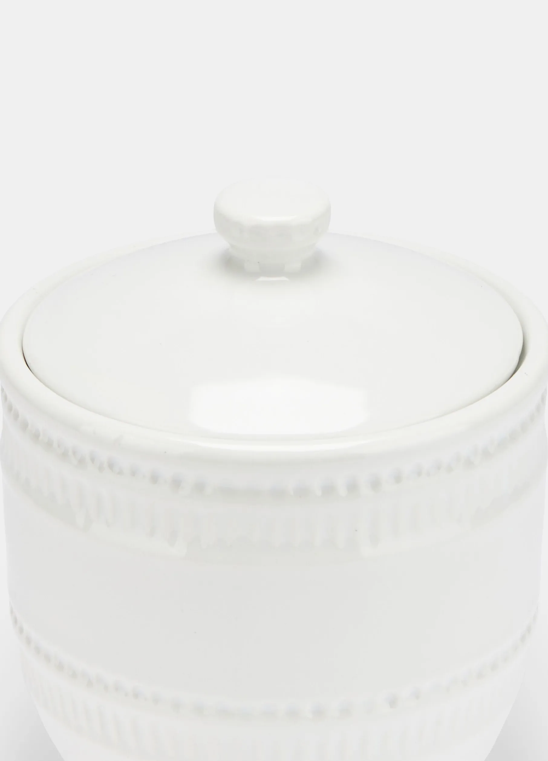 Contenitore in ceramica bianca portaoggetti. Dimensioni 12.5X 12.5X17.5 cm.