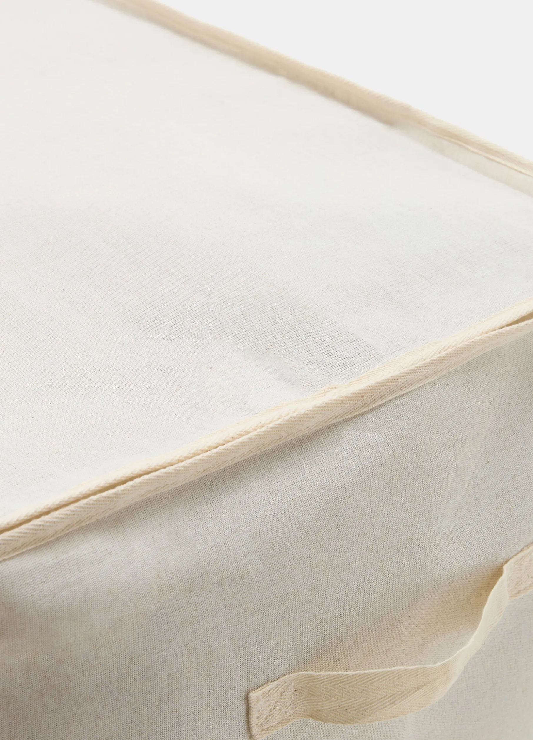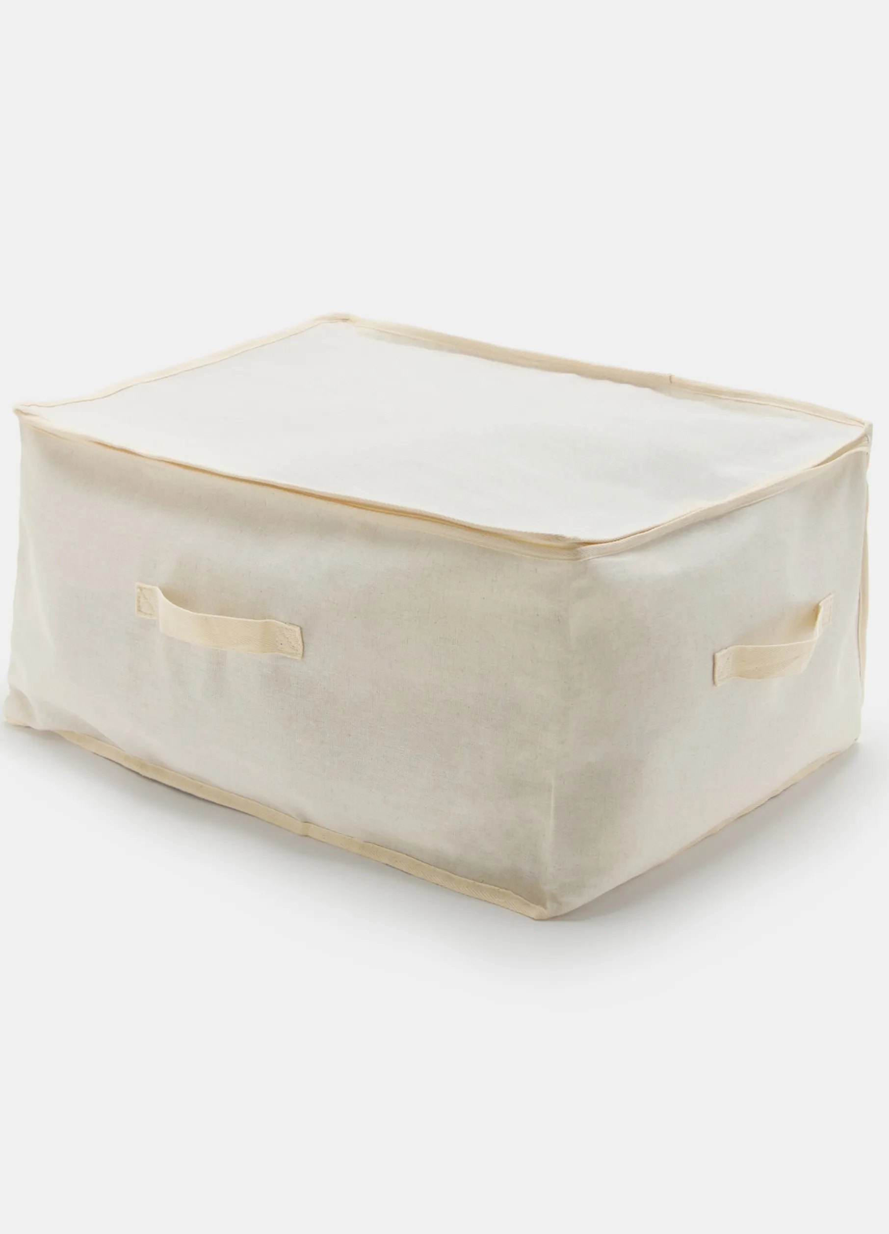 Contenitore per trapunte in cotone con apertura a zip. Dimensioni 60x45x30 cm.