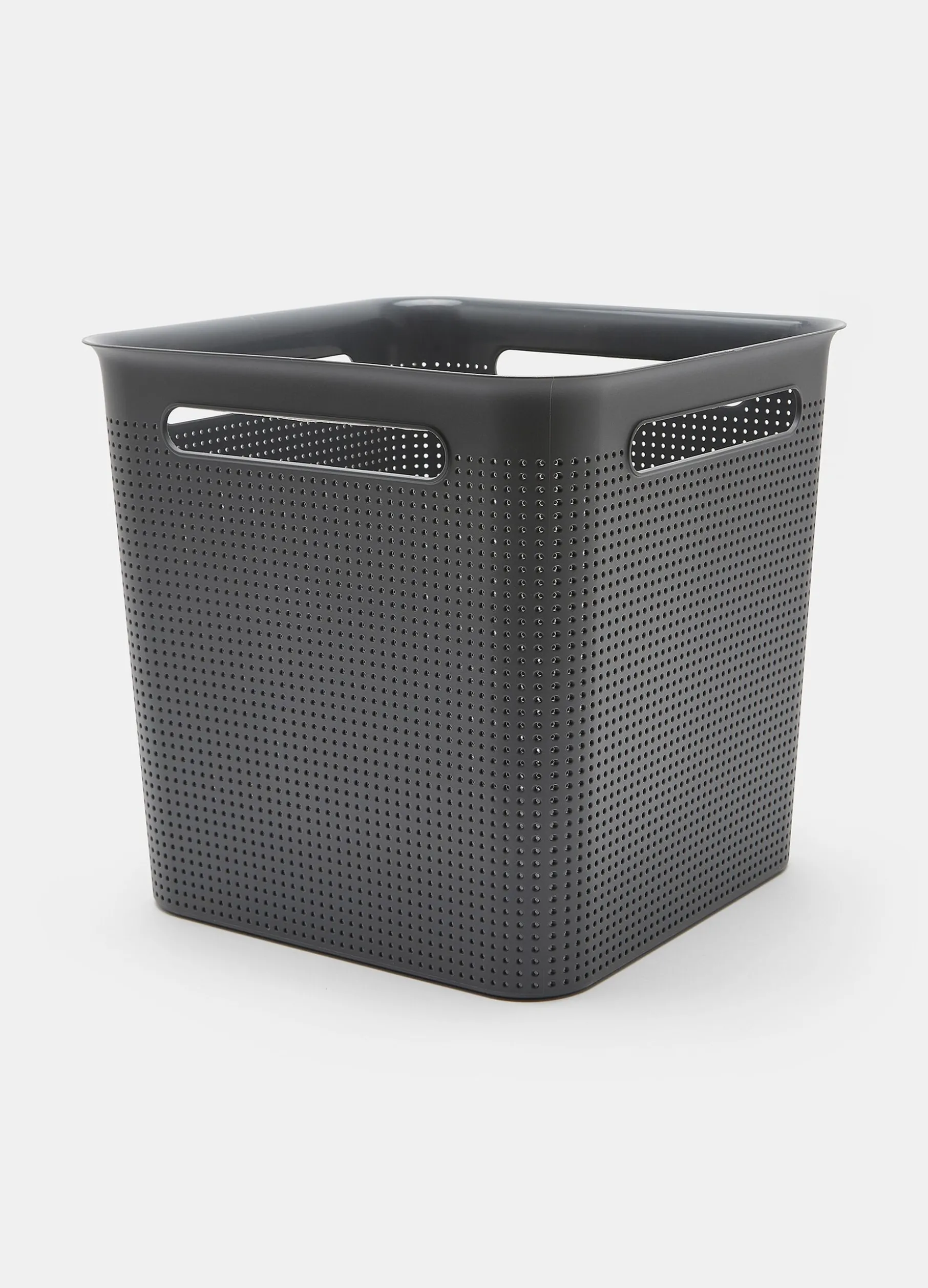 Contenitore traforato in tinta unita. Dimensioni 26.2x18x13 cm.