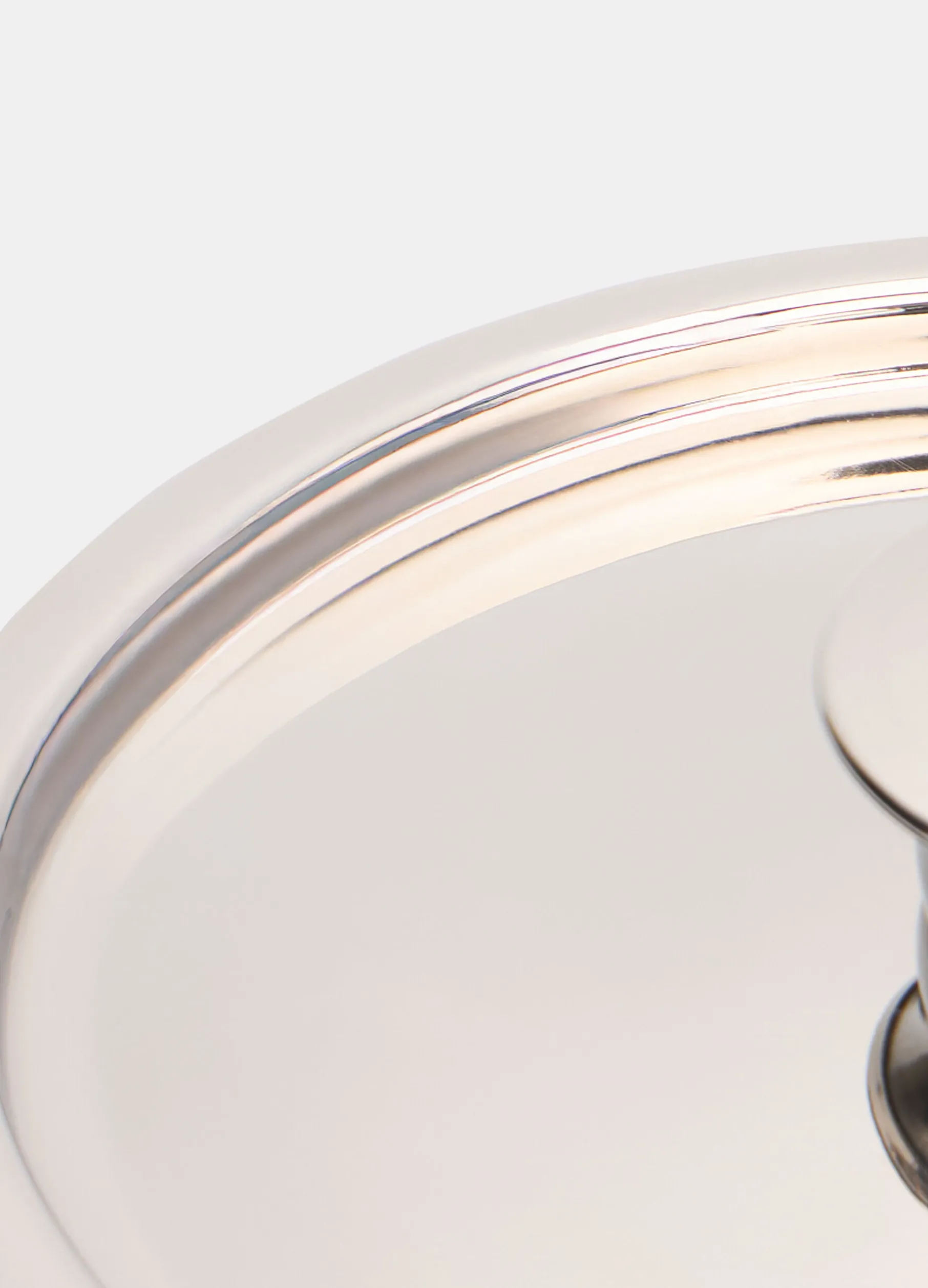 Coperchio per pentola molto larga in acciaio dalla finitura argentata, liscia e luminosa, con pomello in metallo. Versatile e funzionale, è immancabile in qualsiasi cucina.