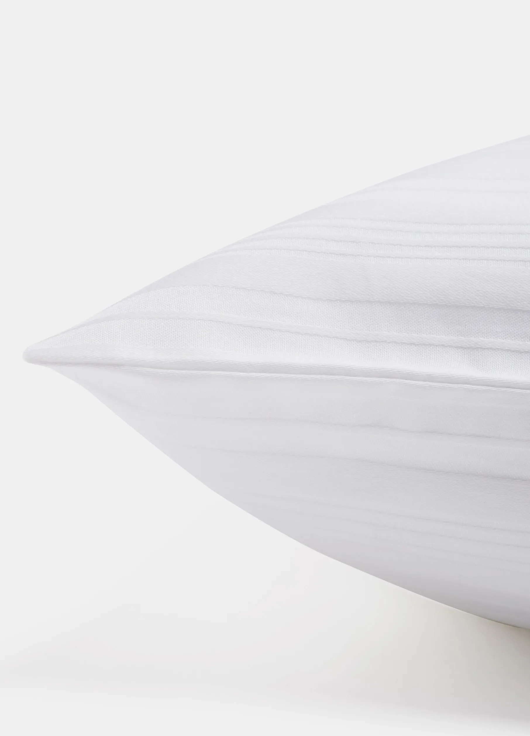 Copriguanciale in raso di puro cotone con lavorazione jacquard. Tessuto resistente e morbido al tatto, ideale per proteggere qualsiasi tipo di guanciale. Fantasia a righe tono su tono.