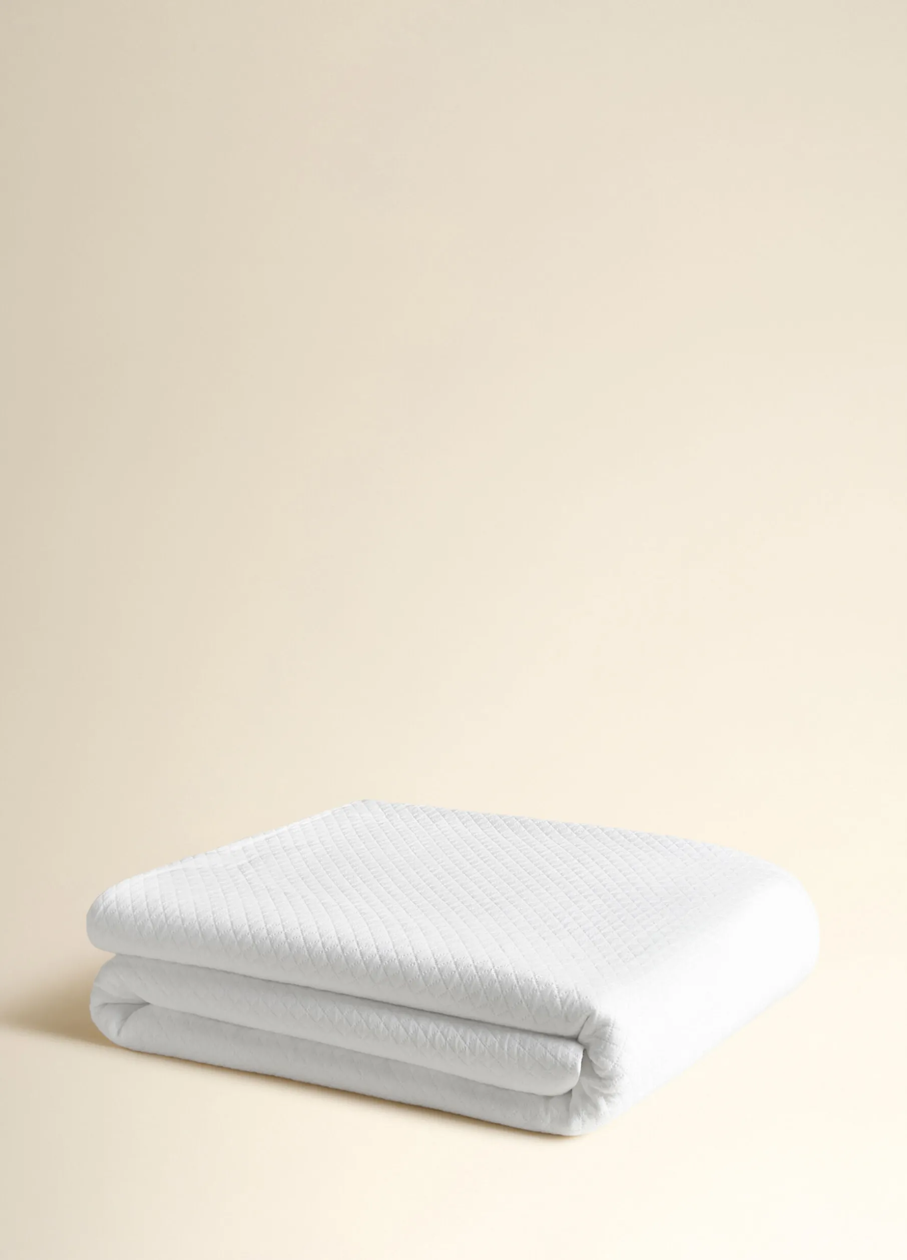 Coprimletto bianco candido a 2 piazze, ideale per letti matrimoniali, realizzato in puro cotone dalla superficie morbida, perfetto per garantire il comfort durante il riposo. Dimensioni: 260 x 260 cm.