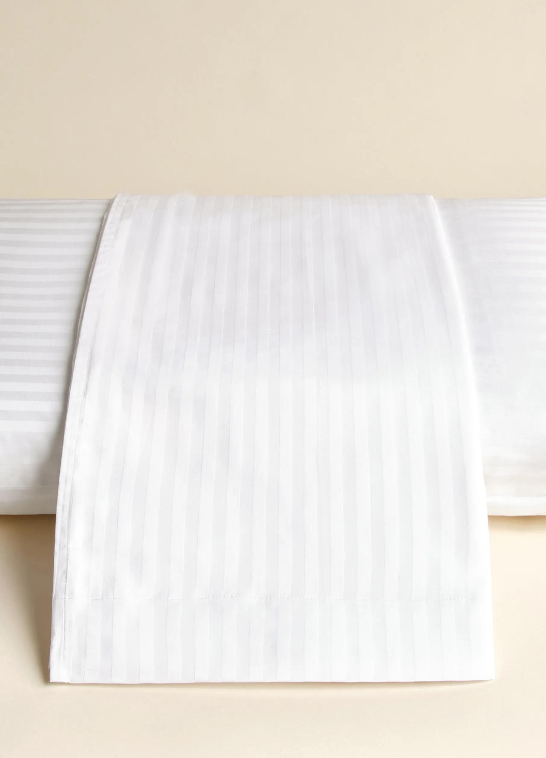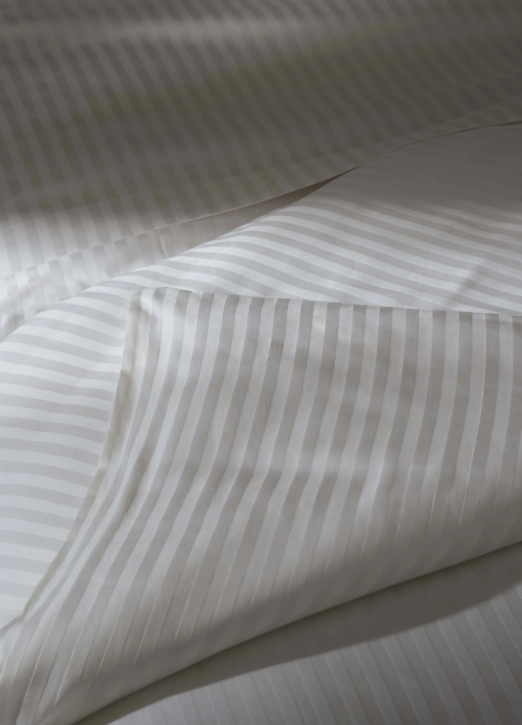 Sacco copripiumino bianco a due piazze realizzato in filato di puro cotone, leggero e fresco, perfetto per garantire il comfort durante tutta la notte. Con un motivo a righe tono su tono.