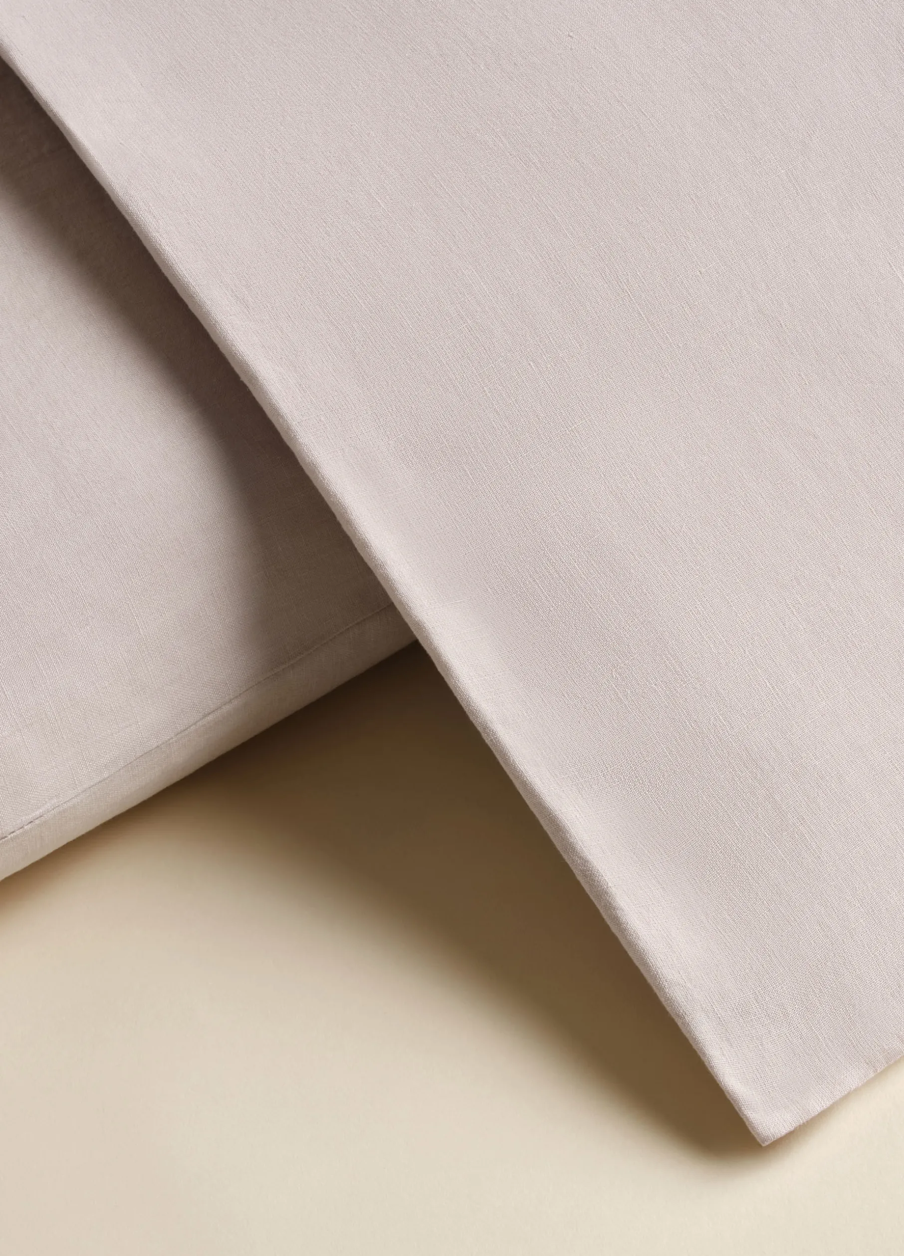 Copripiumino a due piazze realizzato interamente in Italia. Ideale per letto matrimoniale, è in puro lino beige chiaro dalla texture fresca e leggera.