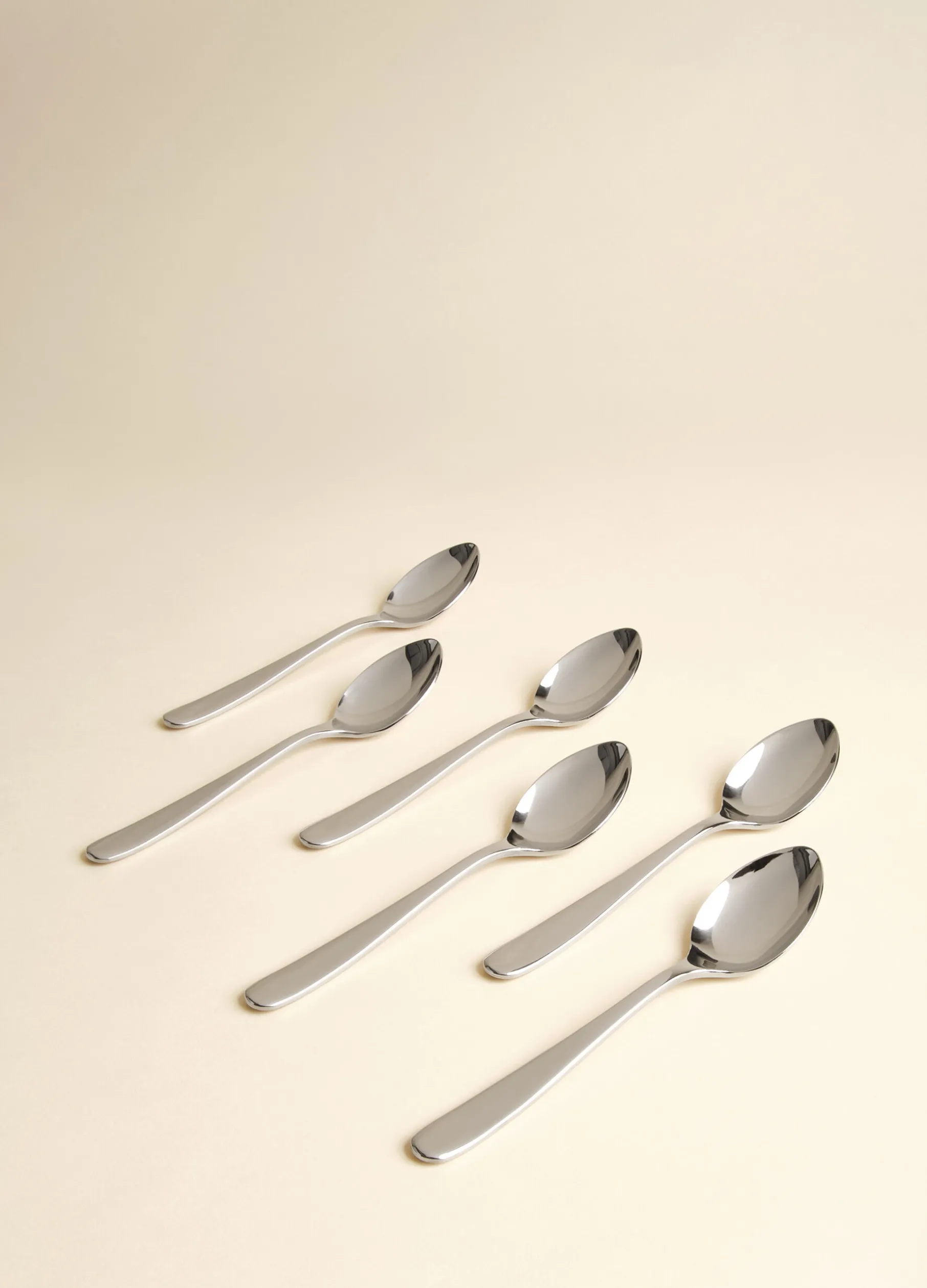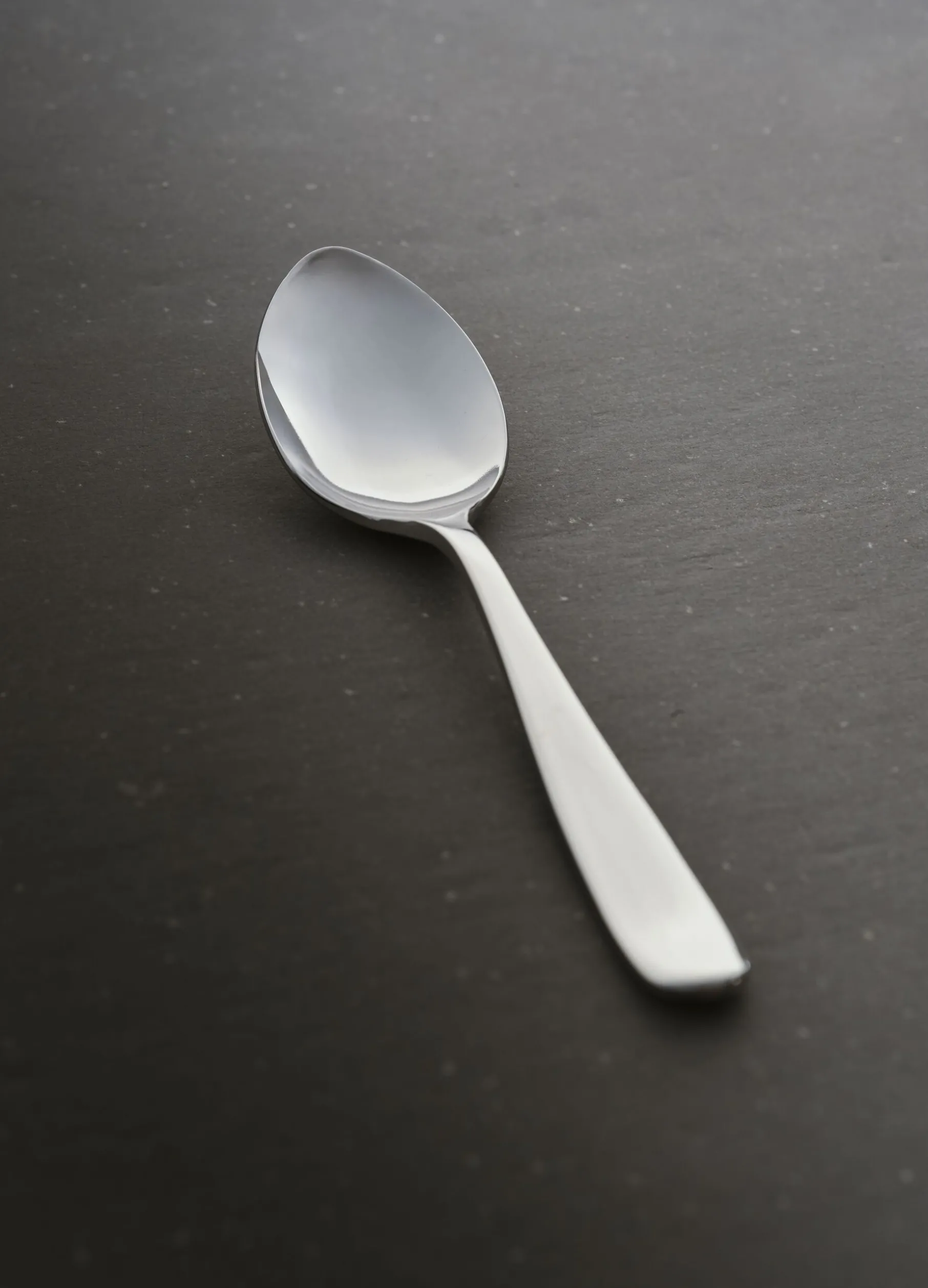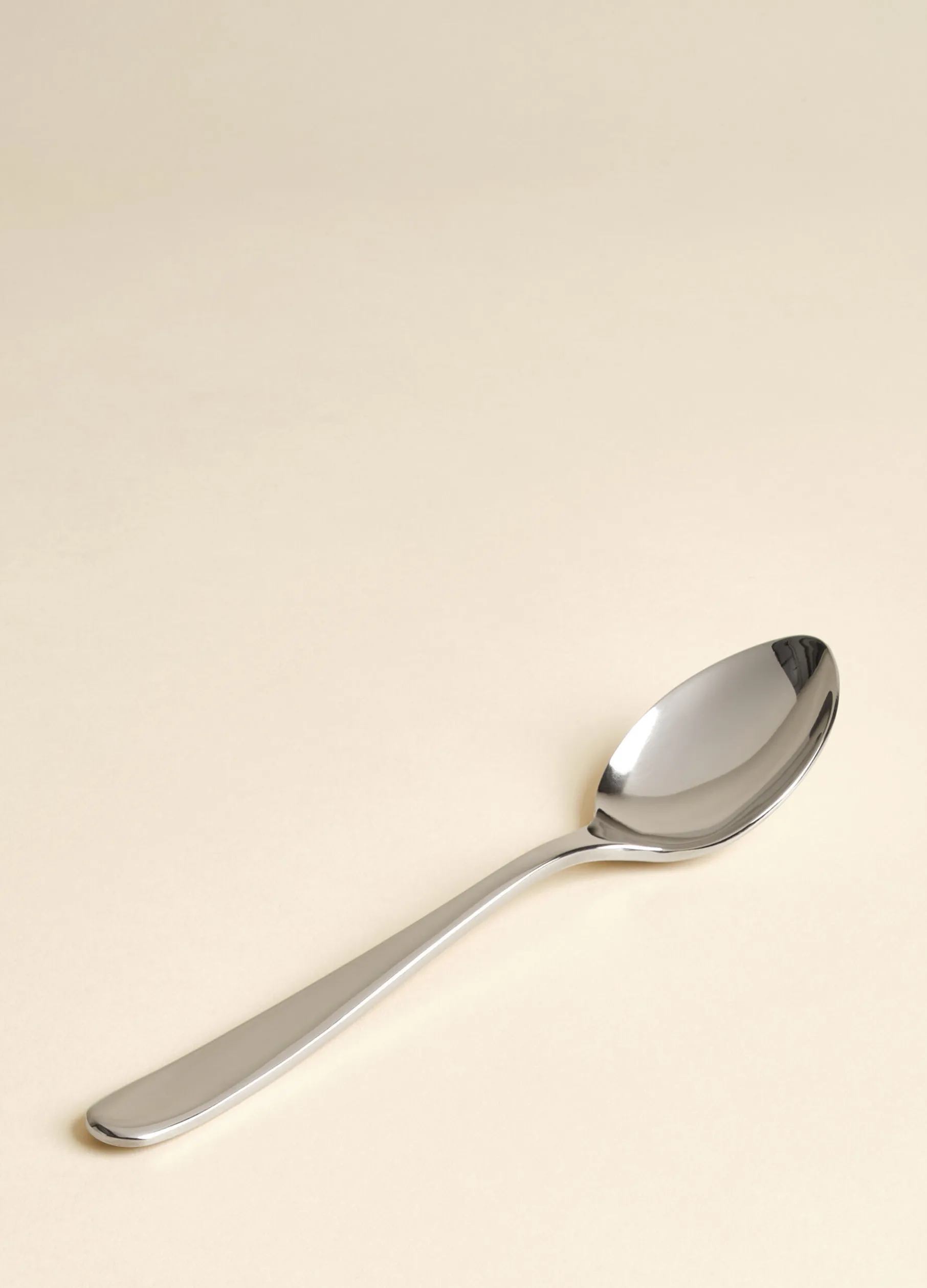Cucchiaio da tavola dalle linee semplici ed essenziali, realizzato in acciaio lucido.