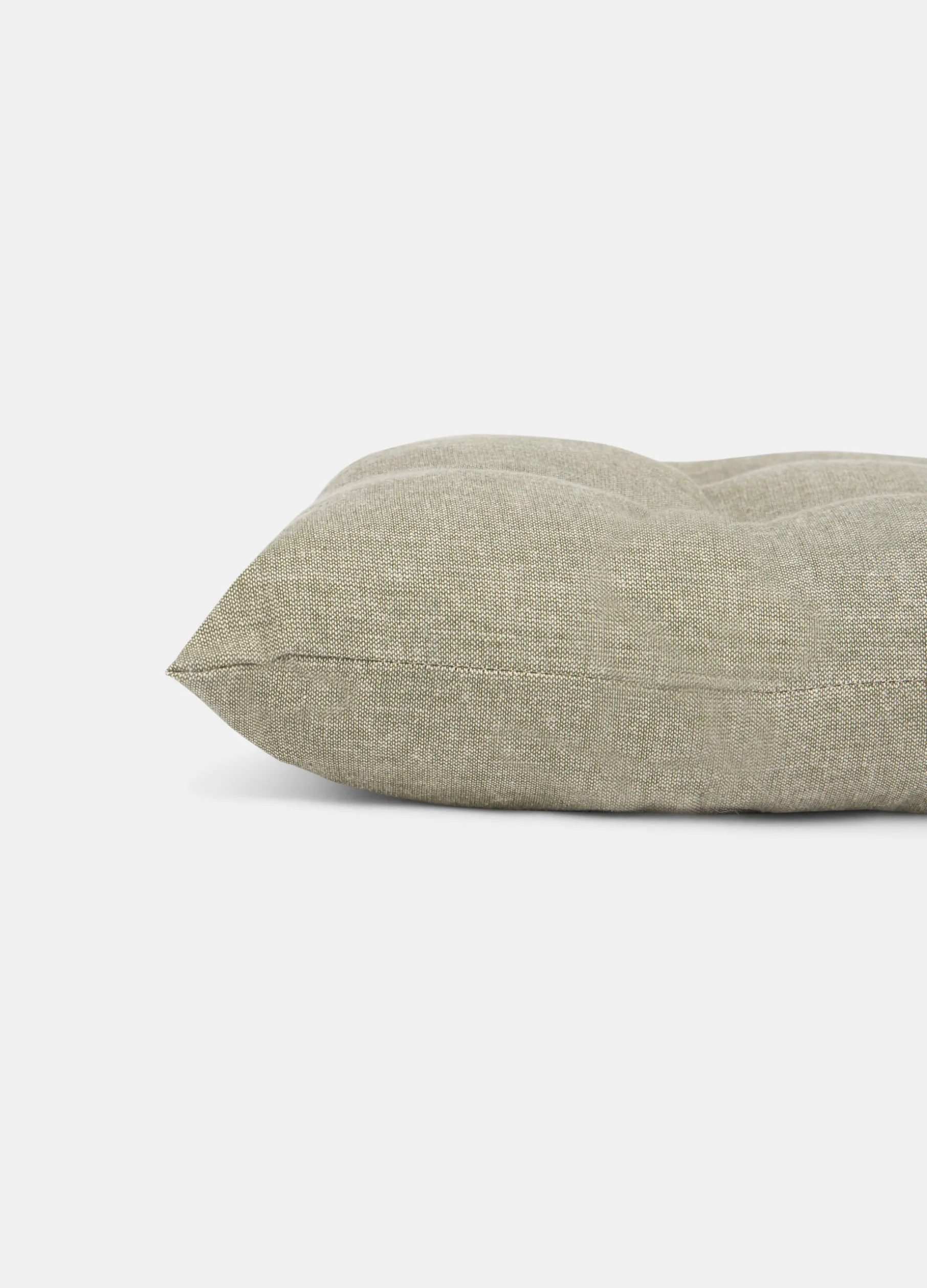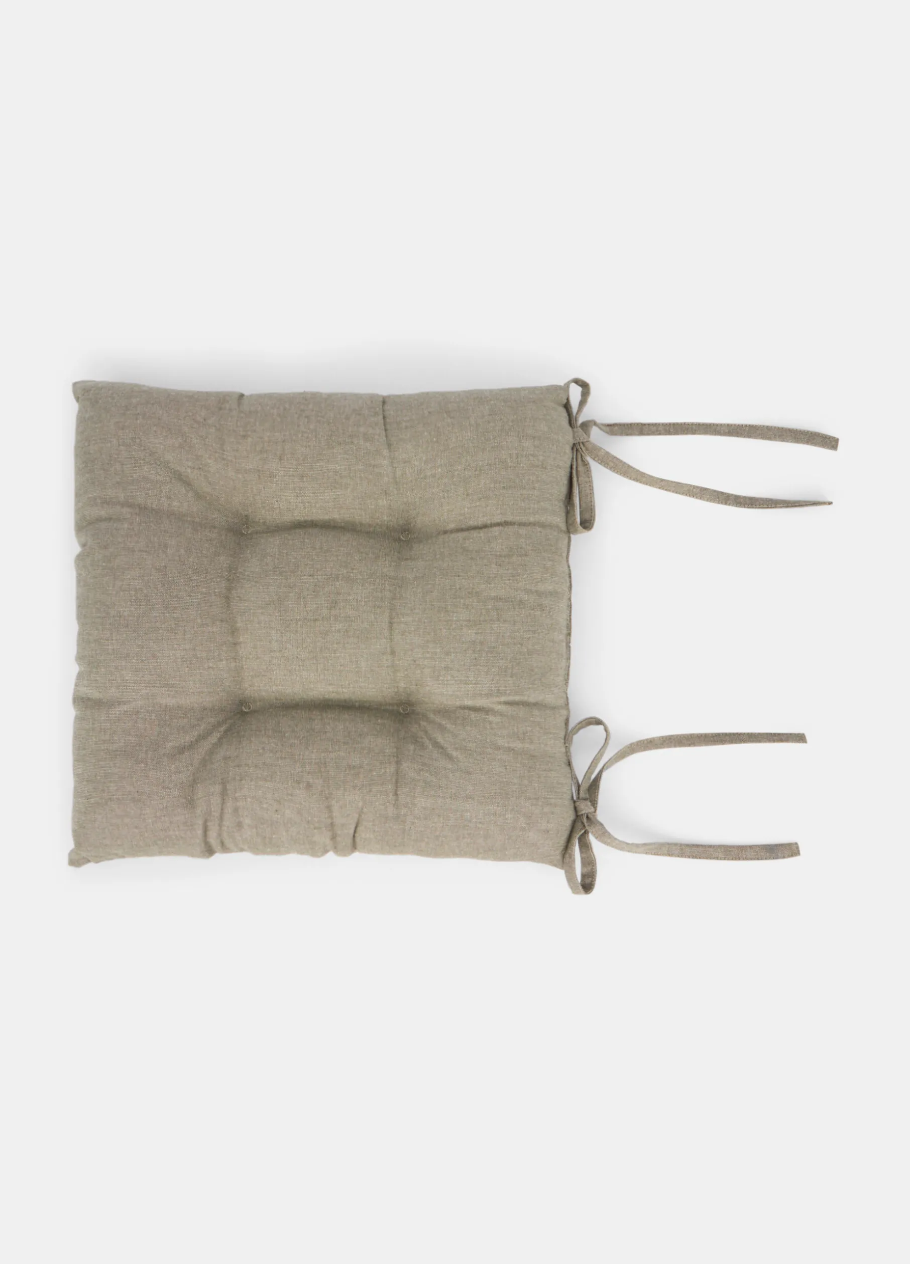 Cuscino quadrato per sedie da cucina in puro cotone verde militare con una caratteristica texture fiammata che regala al tessuto un effetto fiammato. È imbottito e trapuntato per un comfort massimo e presenta due laccetti per fissarlo alla sedia. Dimensioni: 40 x 40 cm.