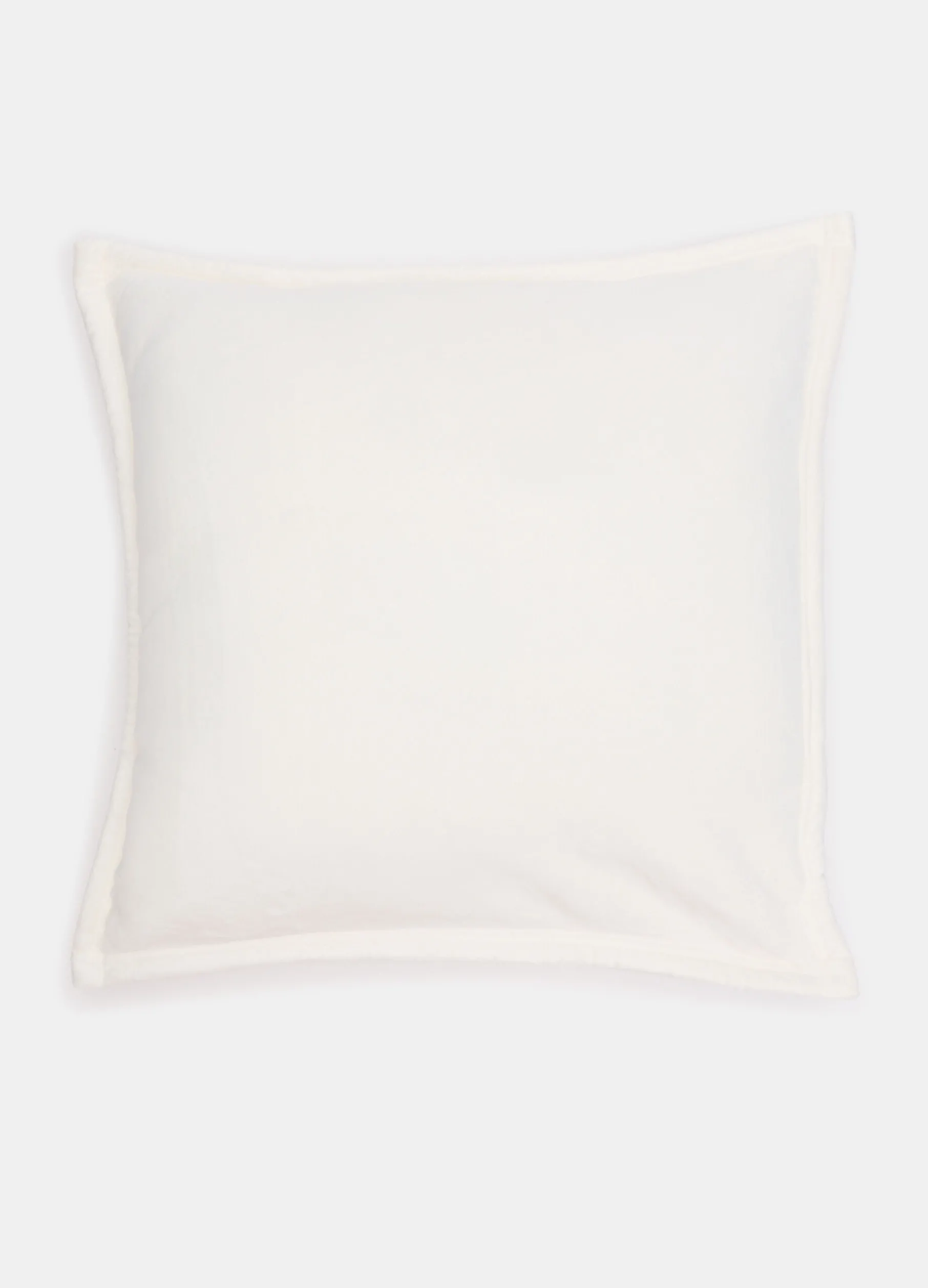 Morbido cuscino bianco candido rivestito in pile e abbinato alla coperta tono su tono. Con imbottitura interna, è caldo e confortevole, perfetto per le serate invernali. Dimensioni: 50 x 50 cm.