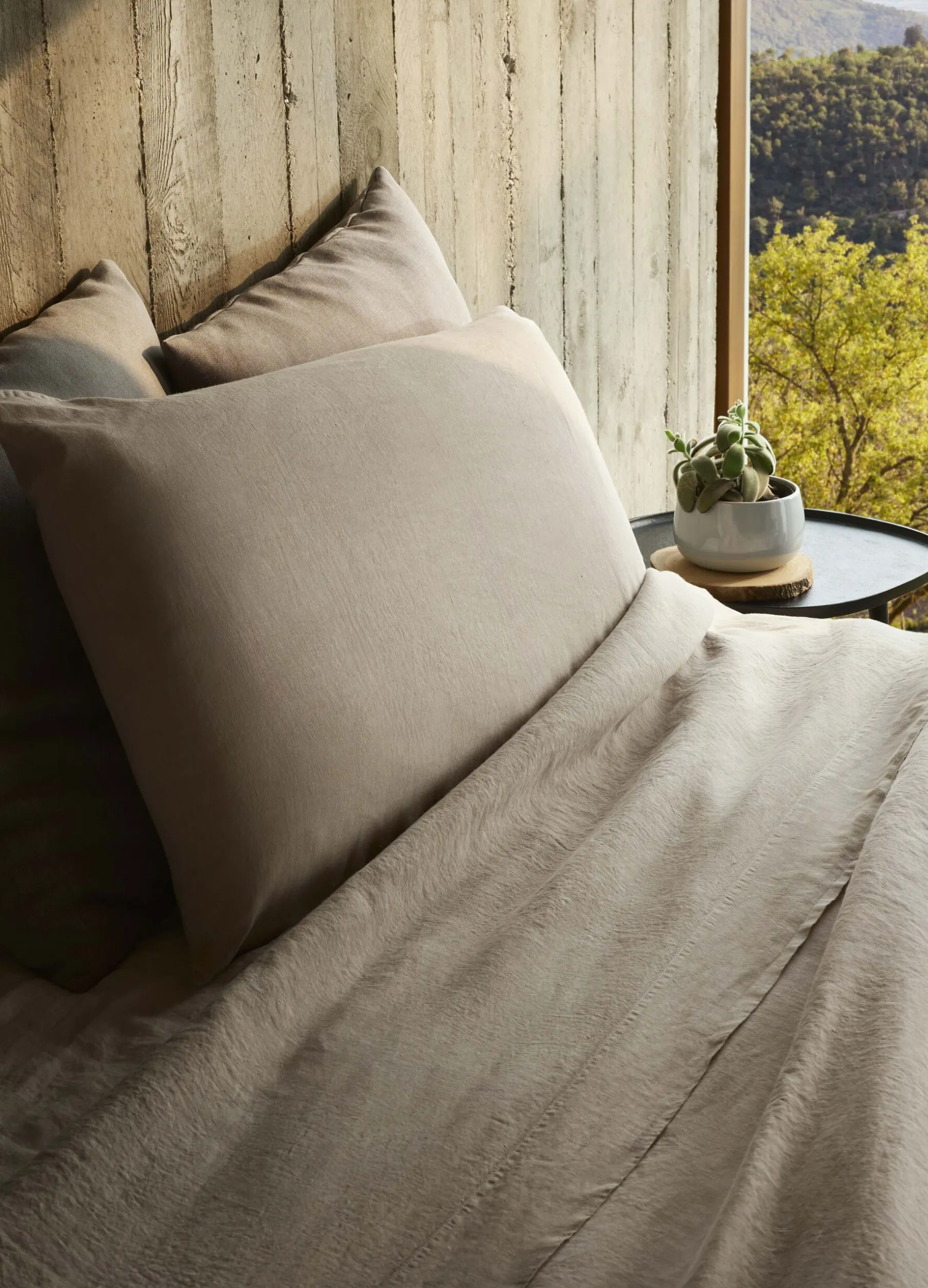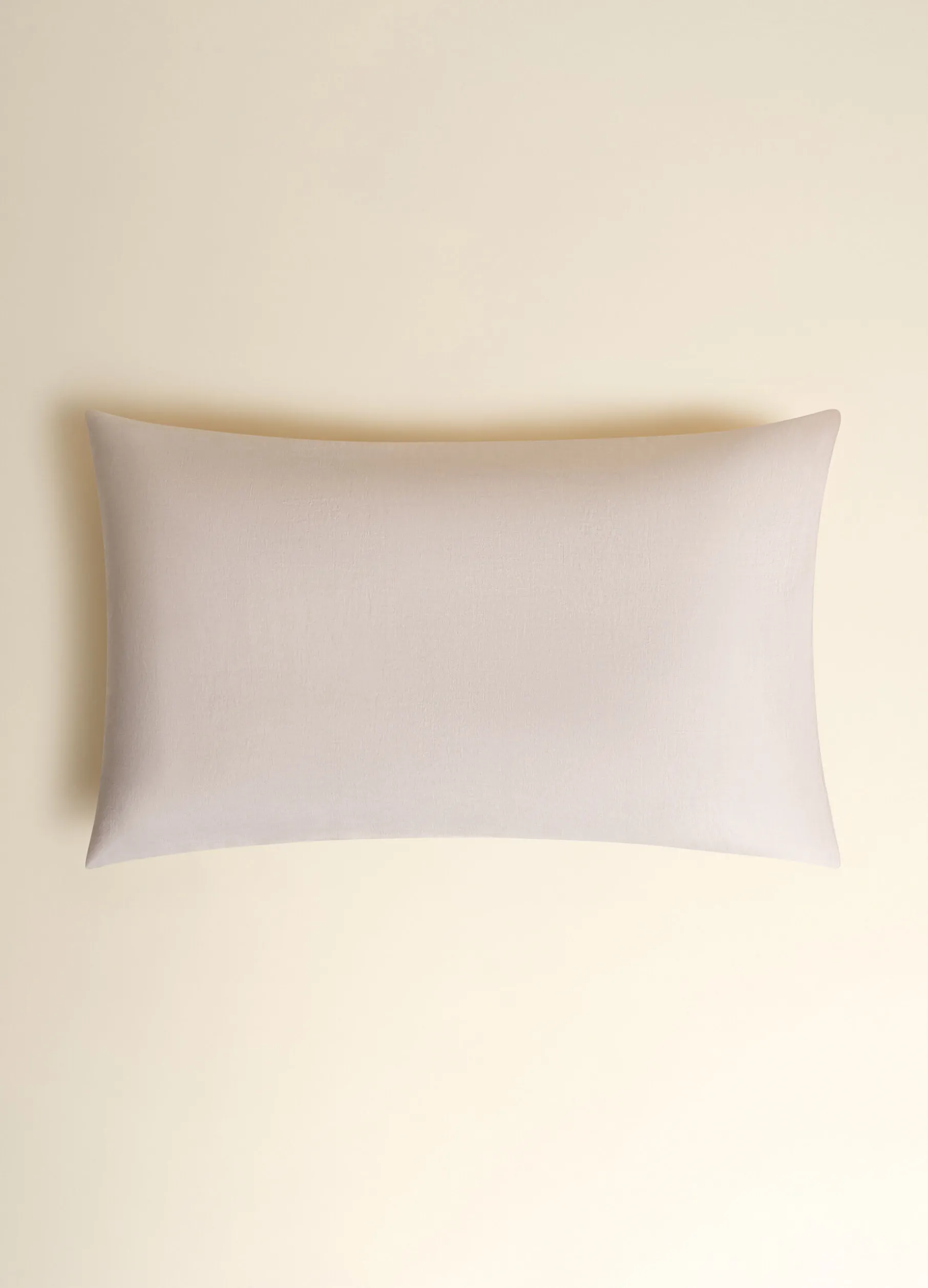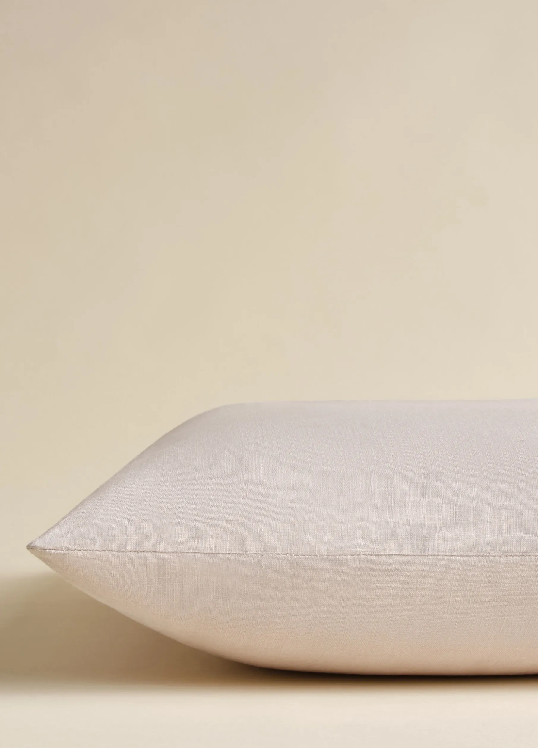 Federa rettangolare realizzata interamente in Italia in puro lino beige chiaro dalla texture fresca e leggera.
