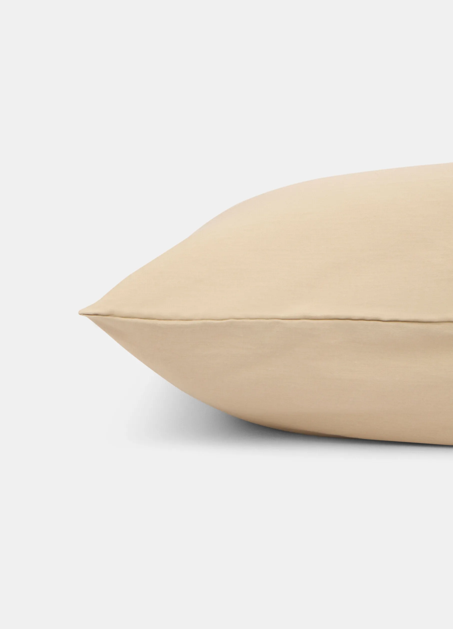 Federa singola in tonalità beige realizzata in puro raso di cotone: la particolare tessitura del filato rende questo tessuto liscio e fresco al tatto, e luminoso, perfetto per garantire comfort e riposo per tutta la notte. Dimensioni: 80 x 50 cm.
