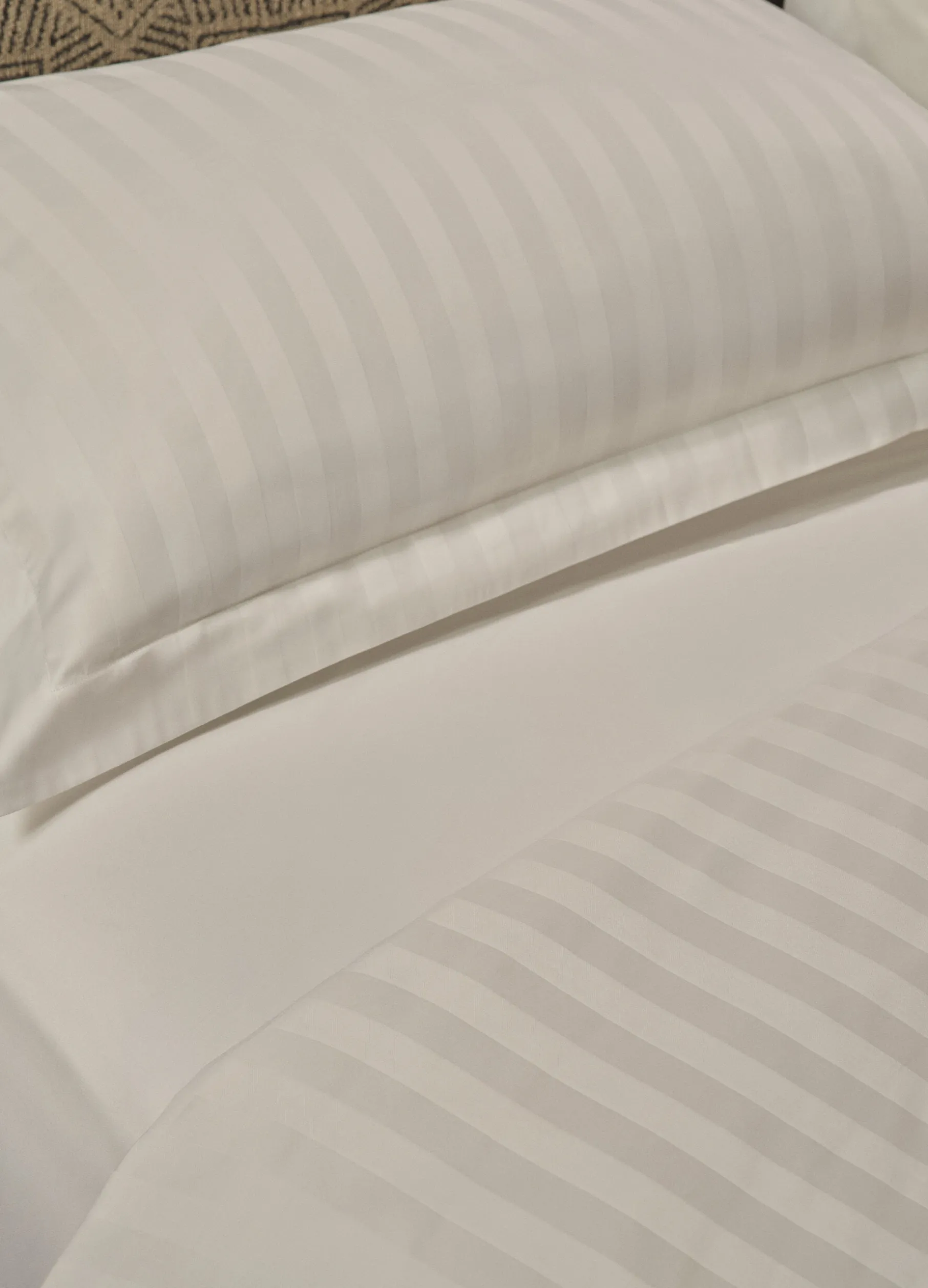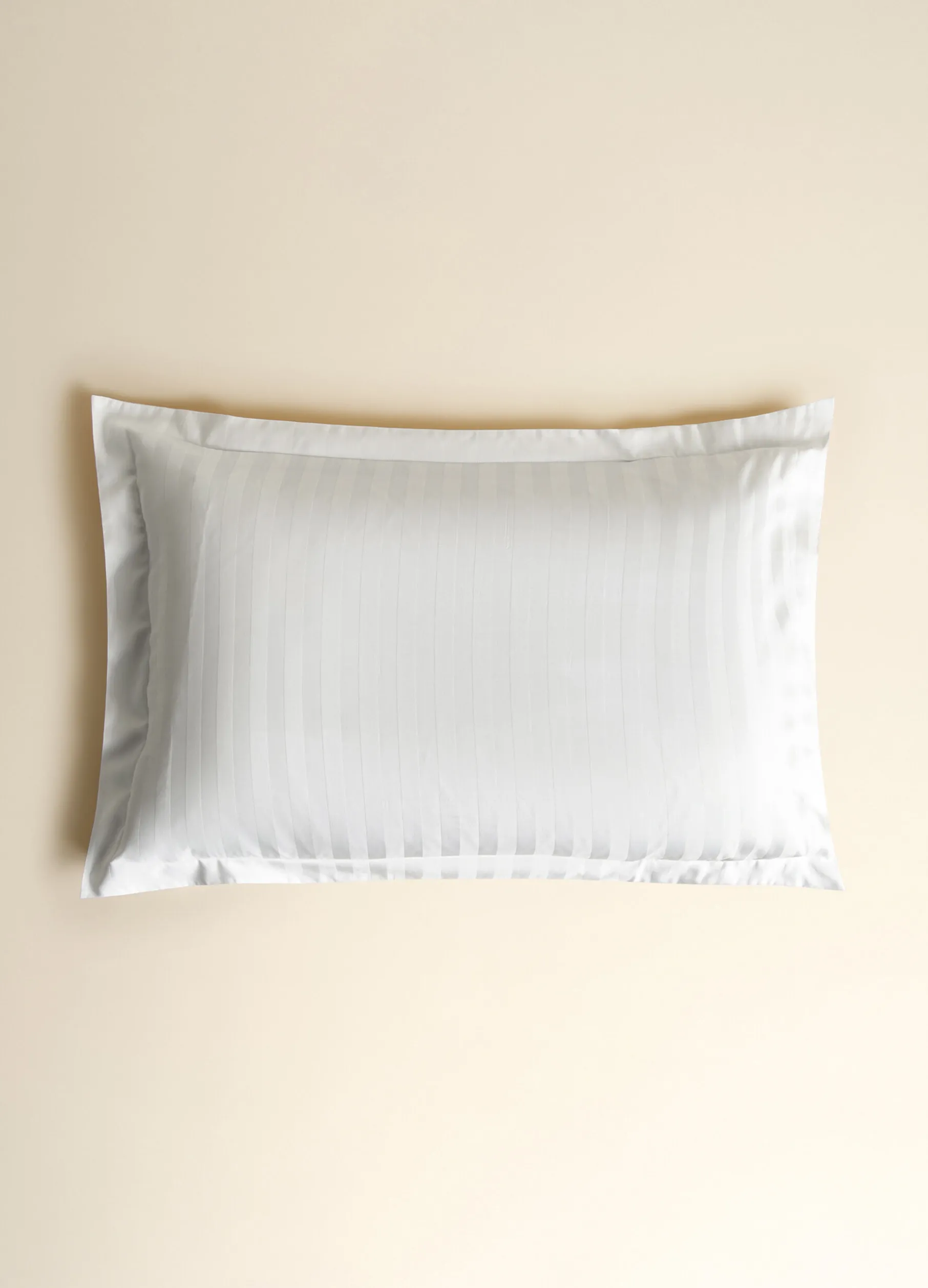 Federa singola realizzata in puro raso di cotone, dalla mano fresca e liscia per garantire un riposo e un comfort ottimale. Il tessuto bianco candido è animato da righe jacquard tono su tono. Dimensioni: 82 x 52 cm.