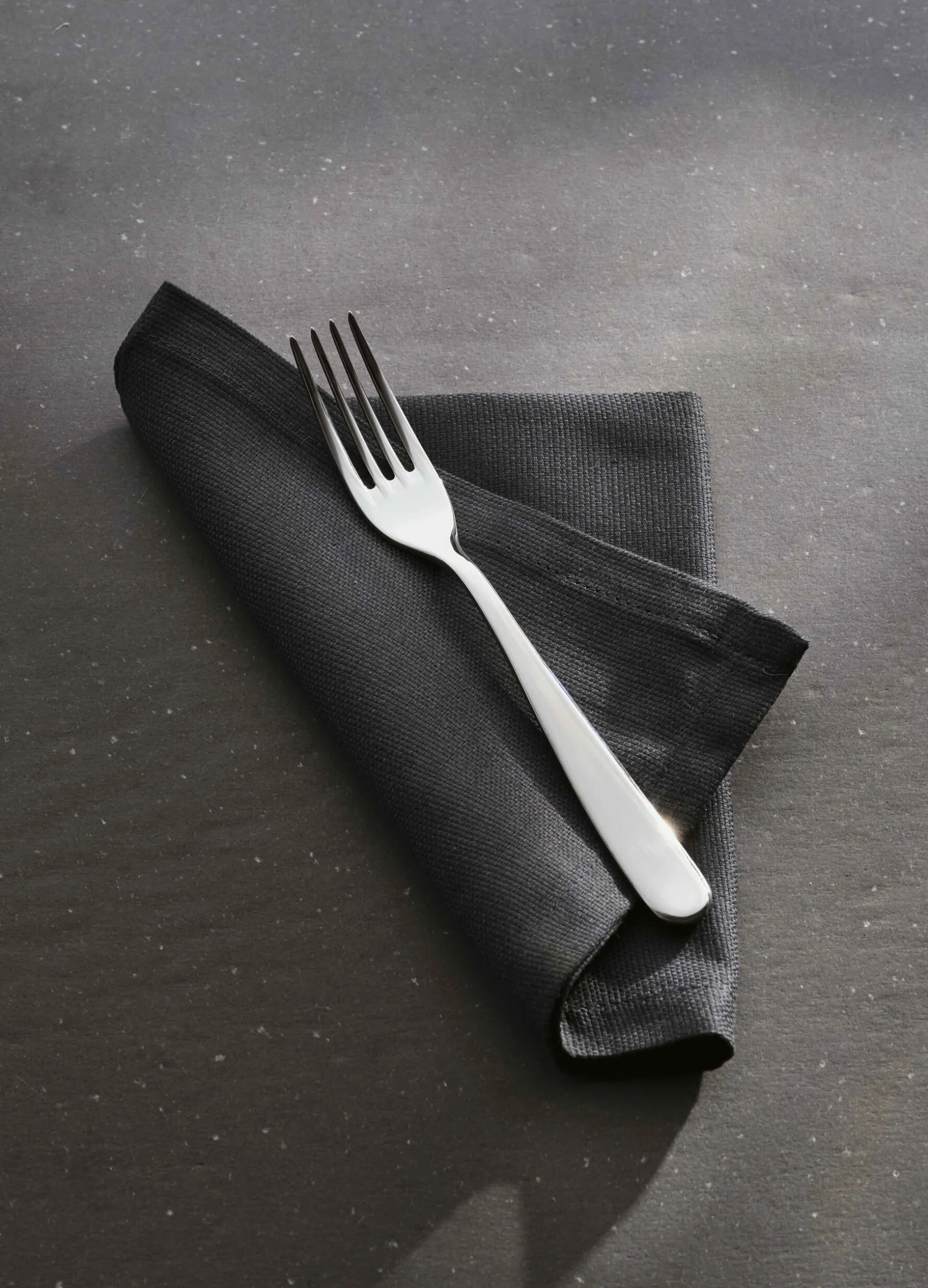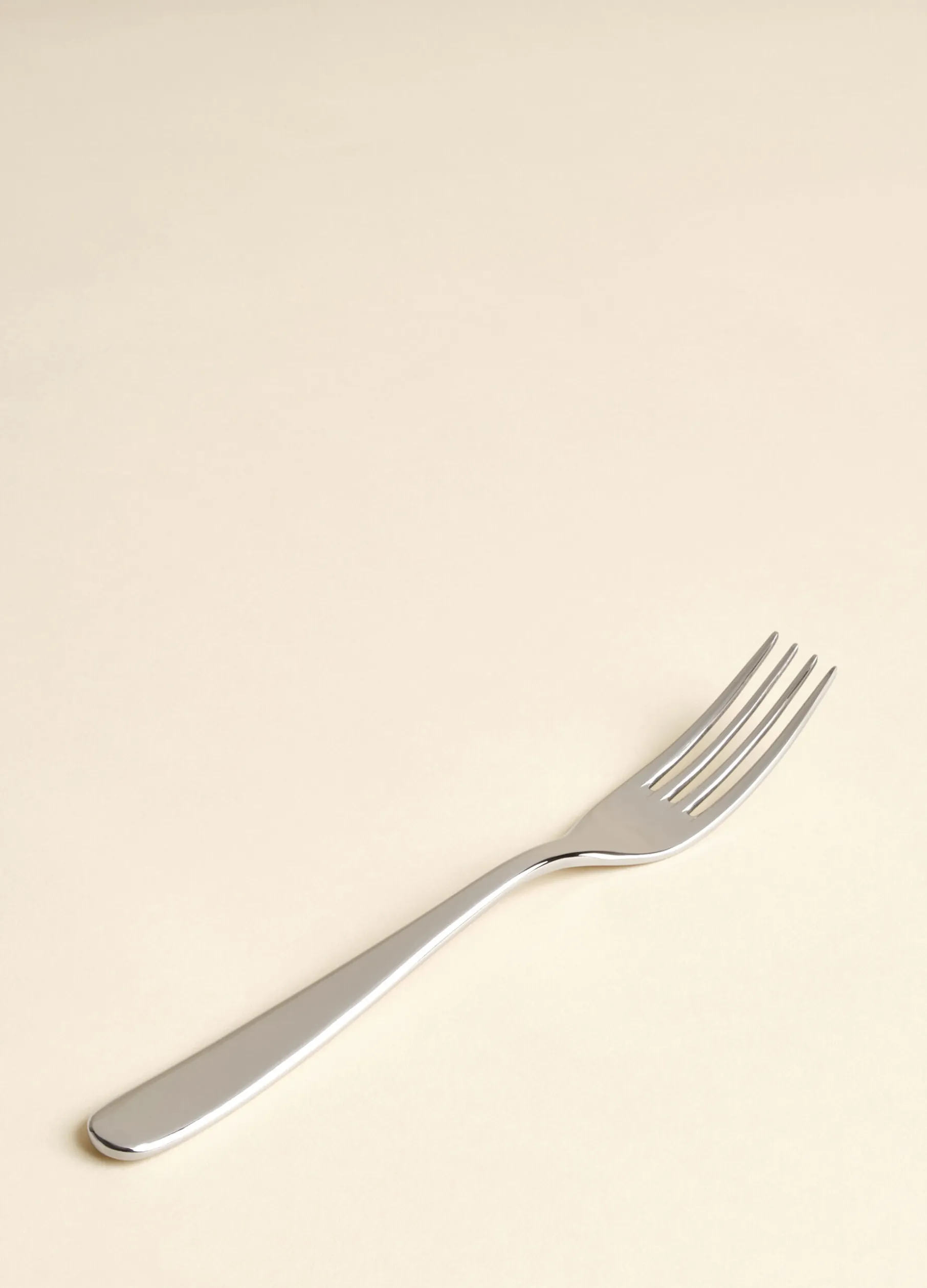 Forchetta da tavola dalle linee semplici ed essenziali, realizzato in acciaio lucido.