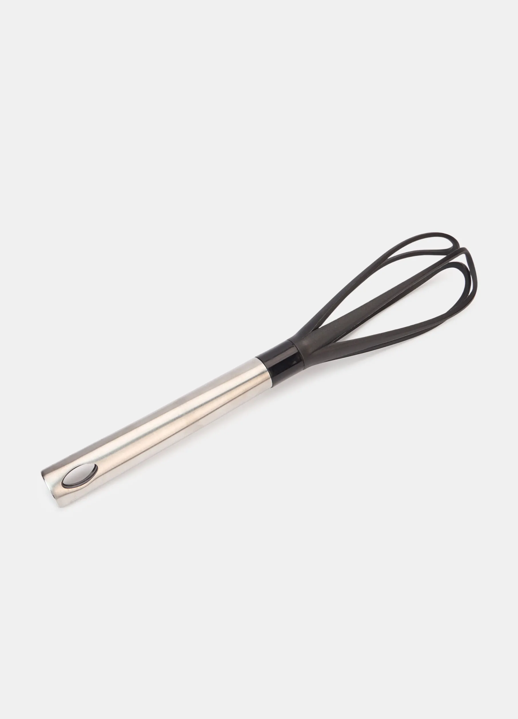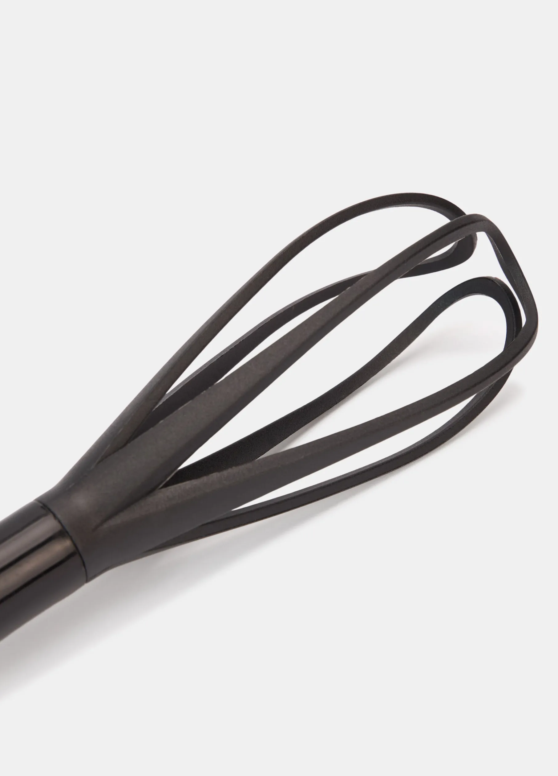 Pratica frusta da cucina realizzata in poliammide nera, versatile e resistente. Con manico in metallo satinato e foro per appenderla.