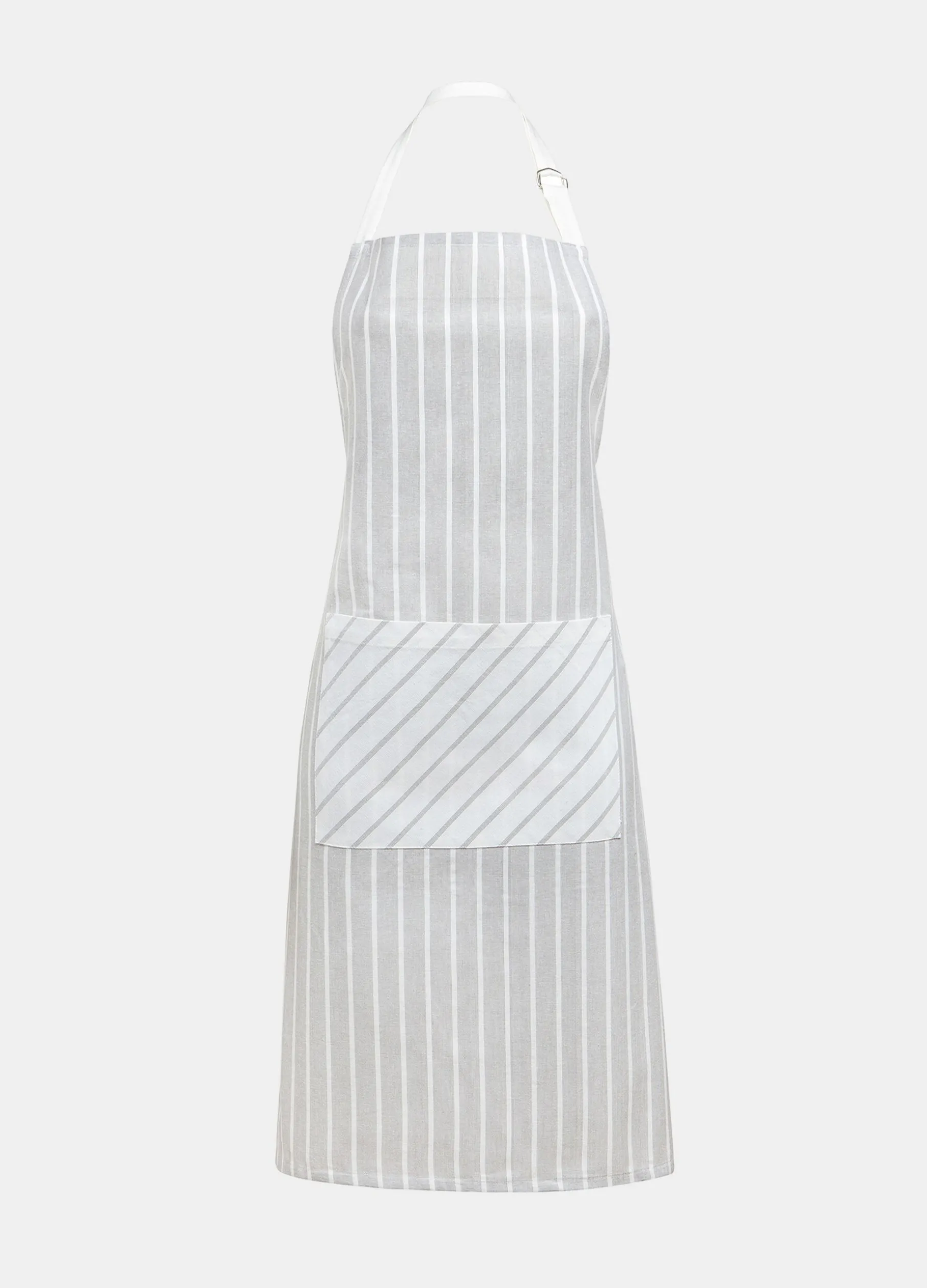 Grembiule 90×70 cm in puro cotone con laccetto e gancio al collo. Una tasca applicata sul davanti e fantasia a righe. Questo prodotto fa parte della collezione “GLI INDISPENSABILI” CROFF.