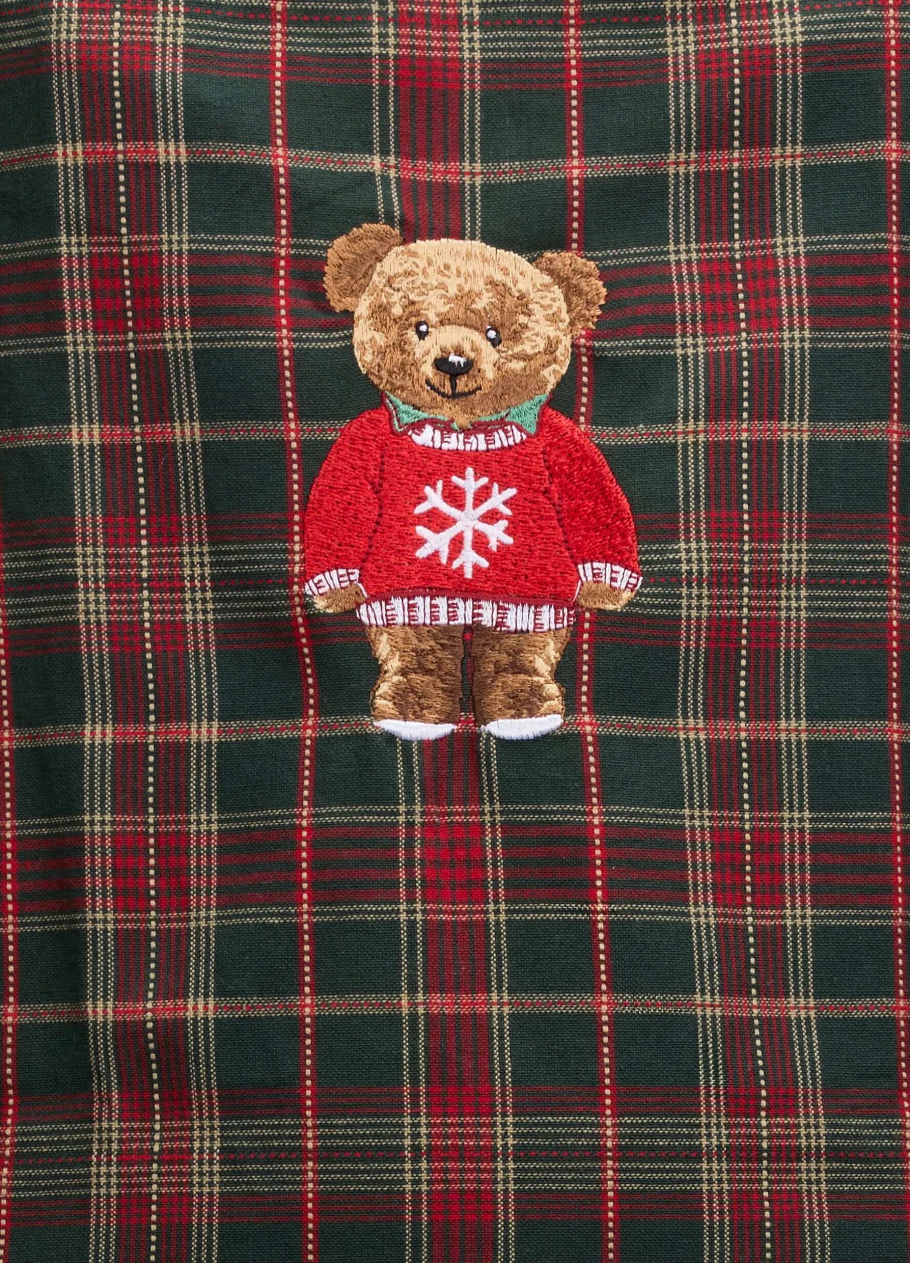 Grembiule lungo in cotone tartan con ricamo Teddy Bear