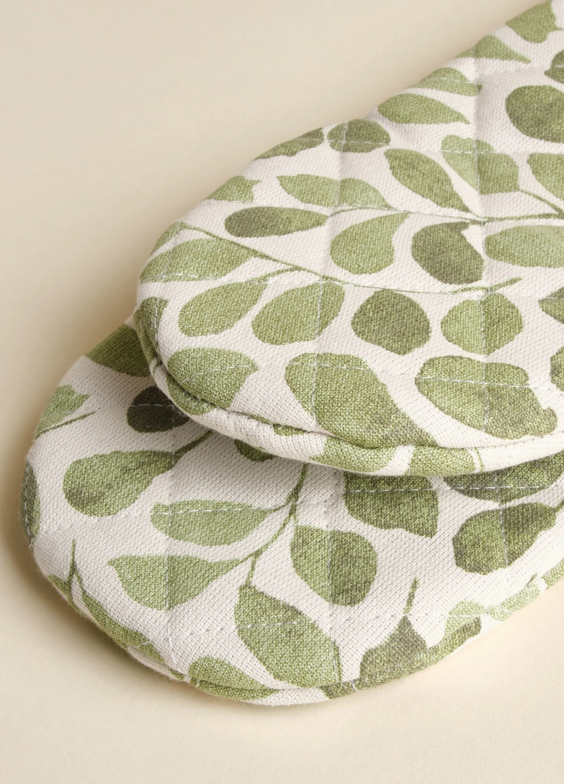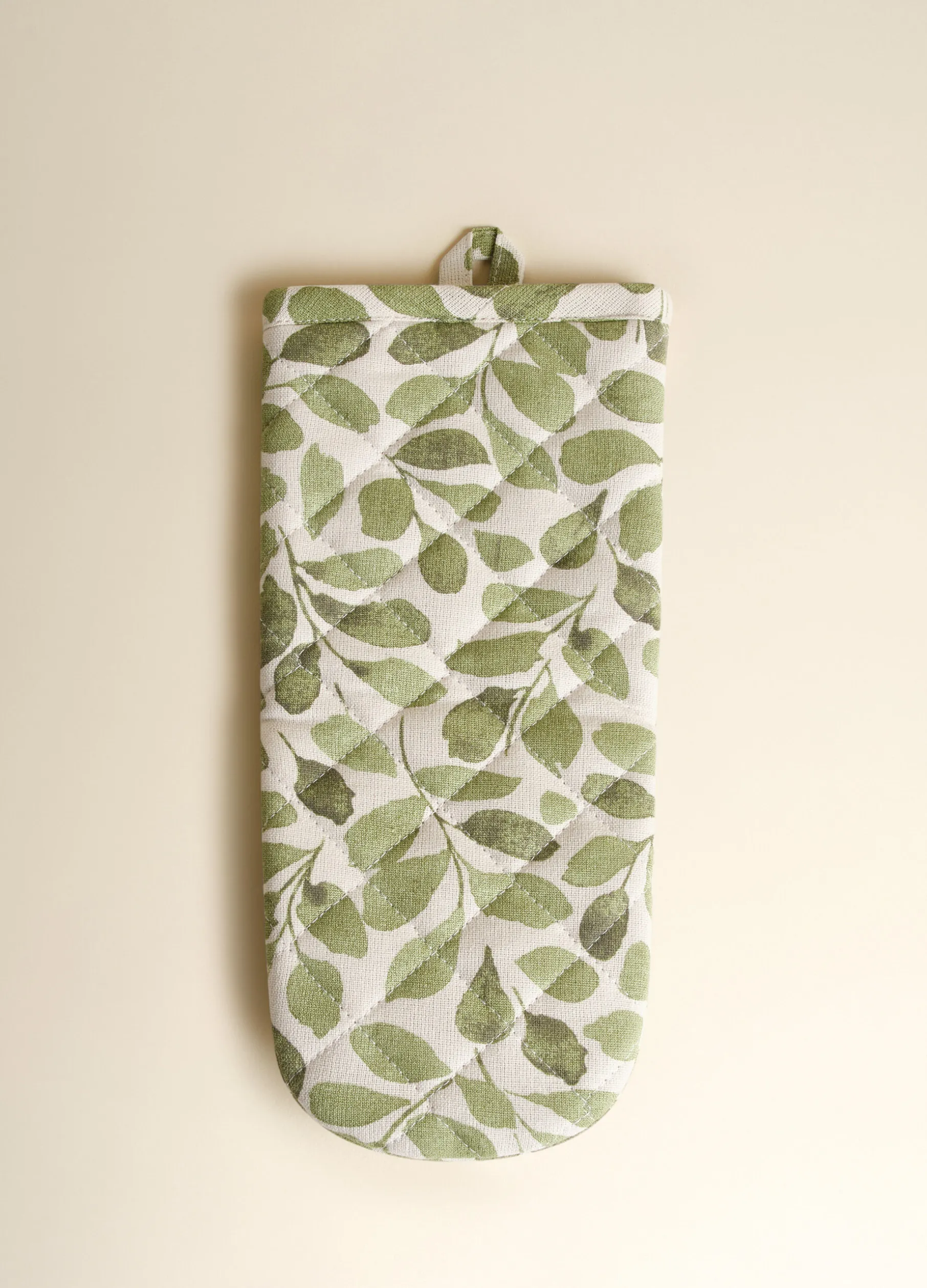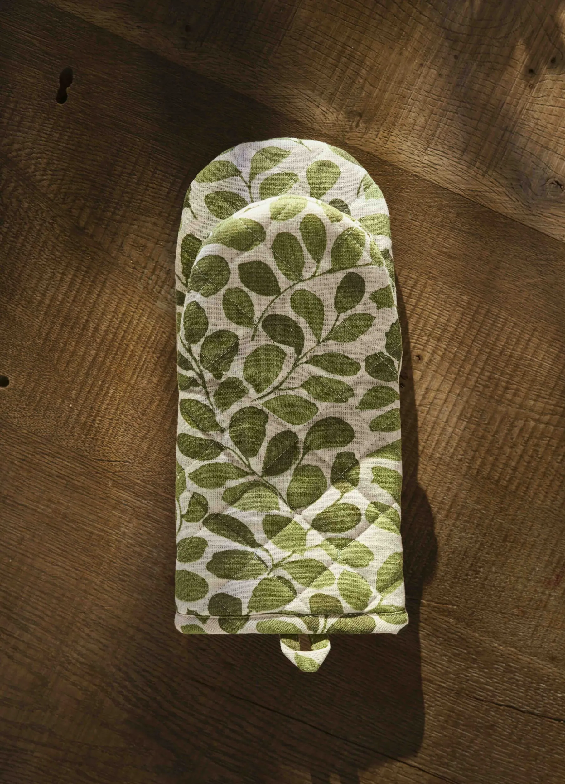 Guanto in puro cotone biologico con stampa all over con motivo foliage. Dimensioni 30x16cm.