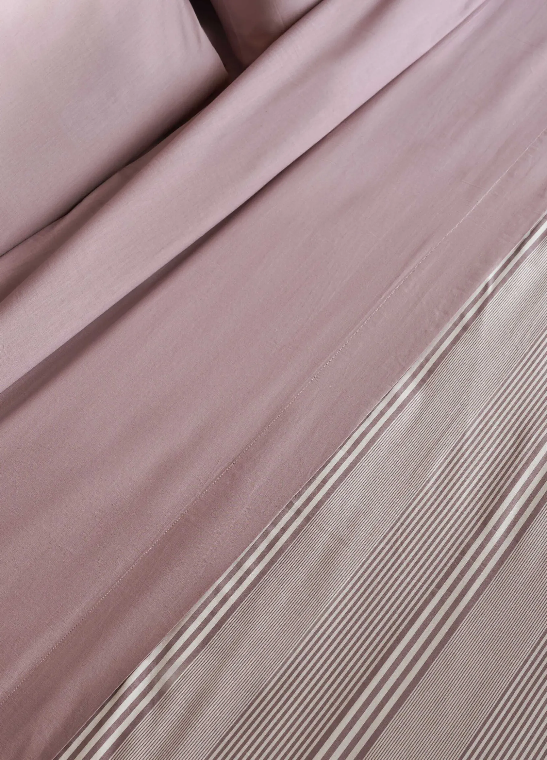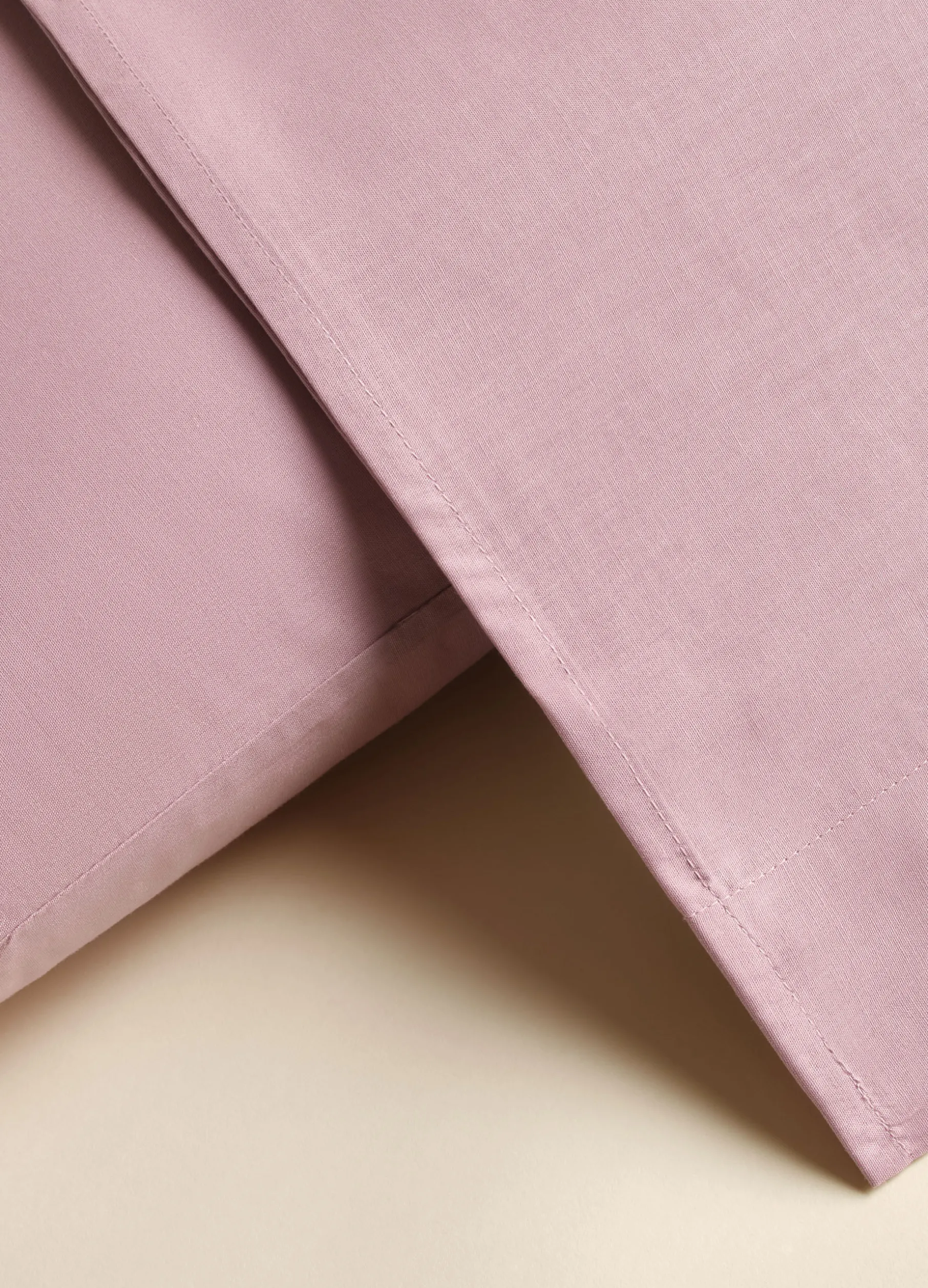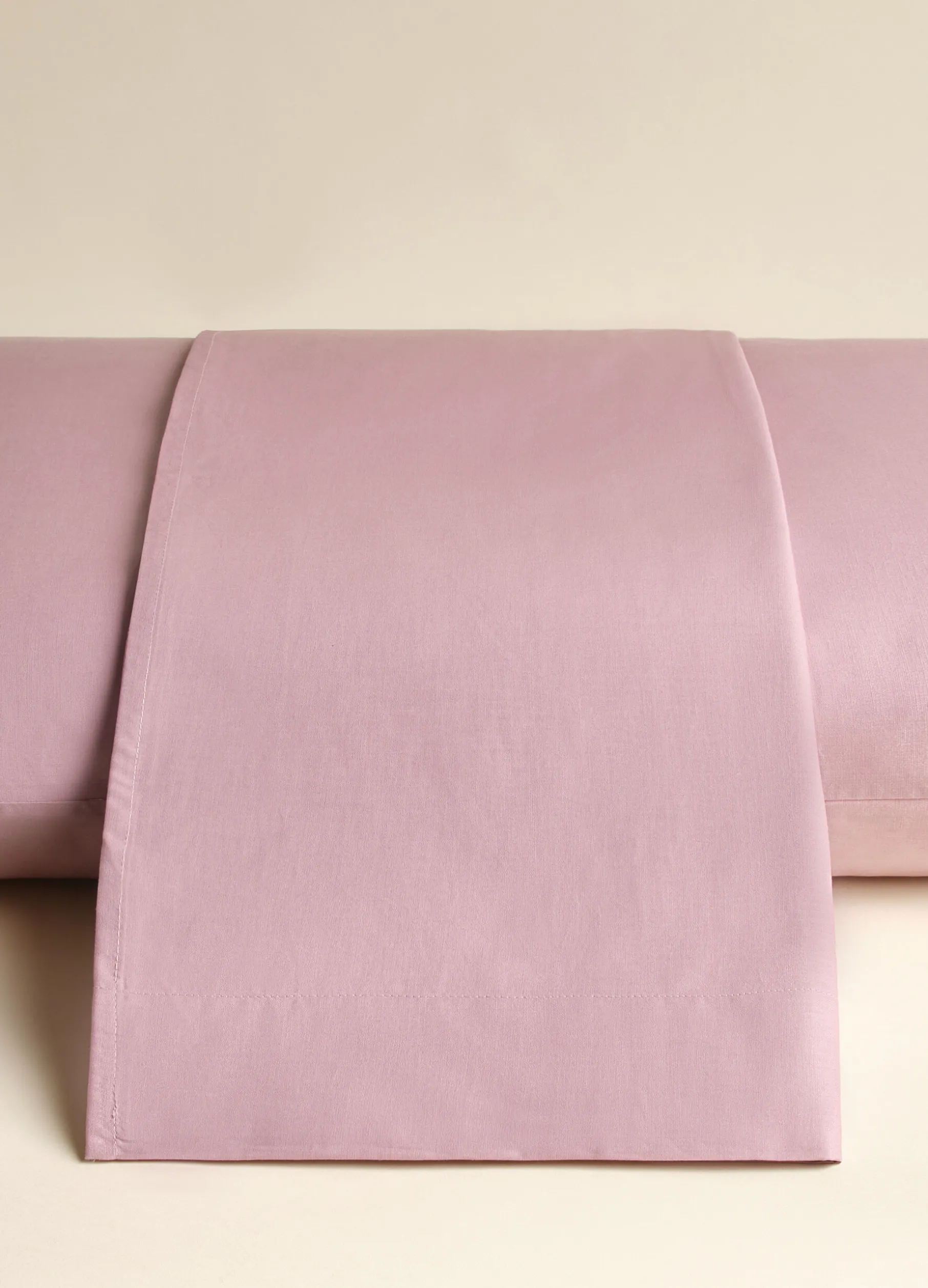 Lenzuolo a due piazze per letto matrimoniale realizzato in puro cotone, dalla texture liscia e fresca, perfetta per garantire un riposo ottimale, e declinato in una delicata tonalità di rosa ciclamino.