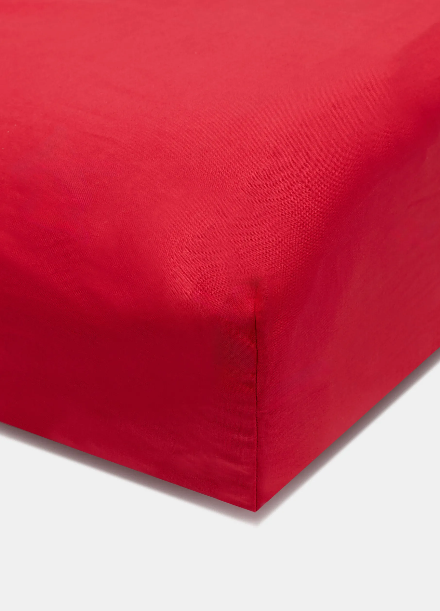 Lenzuolo con angoli rosso realizzato in tela di cotone al 100%, un tessuto dalla trama larga e irregolare che mette in risalto la colorazione intensa. In formato a due piazze, ideale per letti matrimoniali. Dimensioni: 200 x 175 x 30 cm.