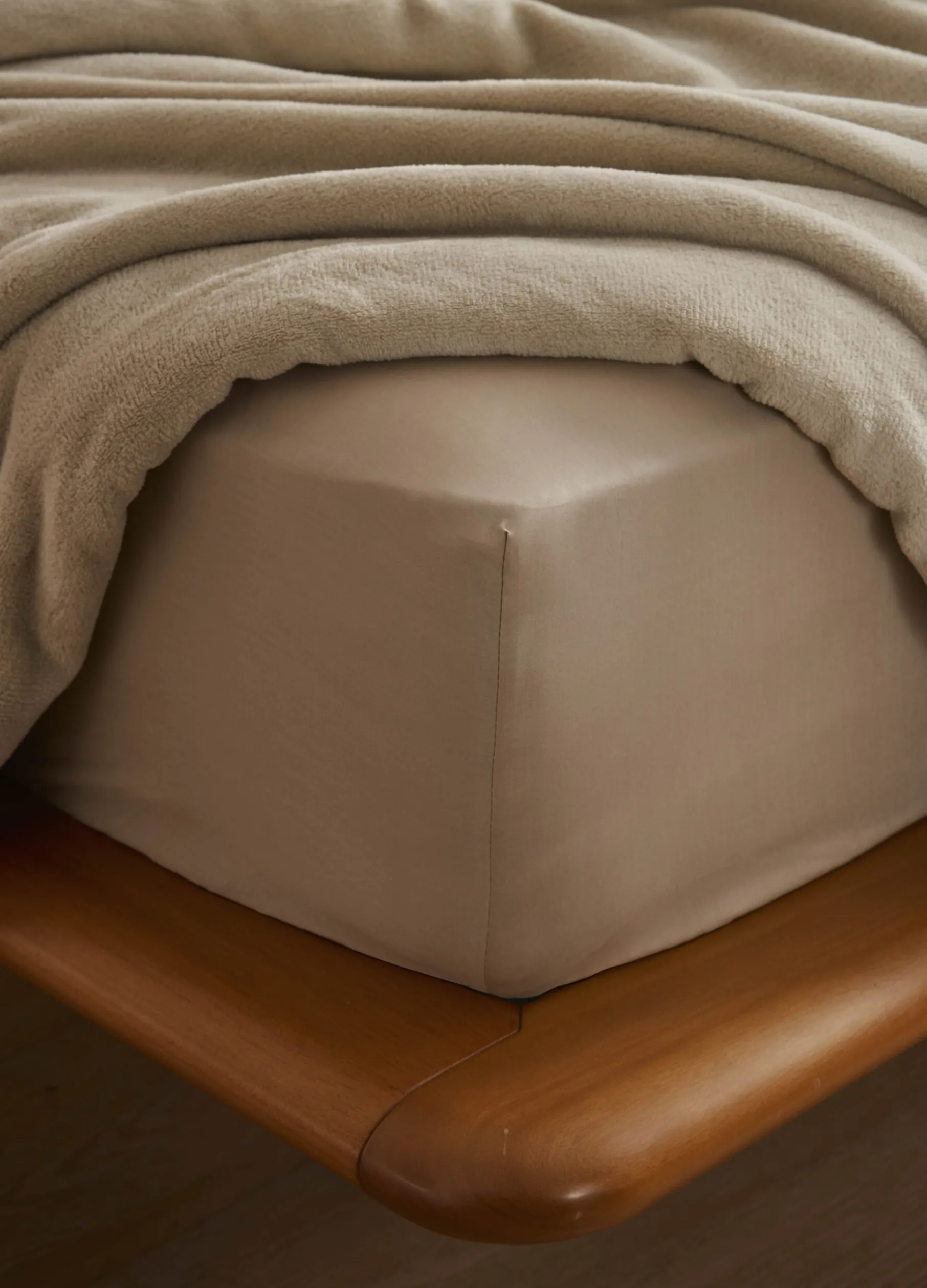 Lenzuolo con angoli per letto singolo in percallino di puro cotone: il tessuto leggero e dalla mano liscia e confortevole esalta la colorazione marrone chiaro ricercata. Dimensioni: 200 x 90 x 30 cm.