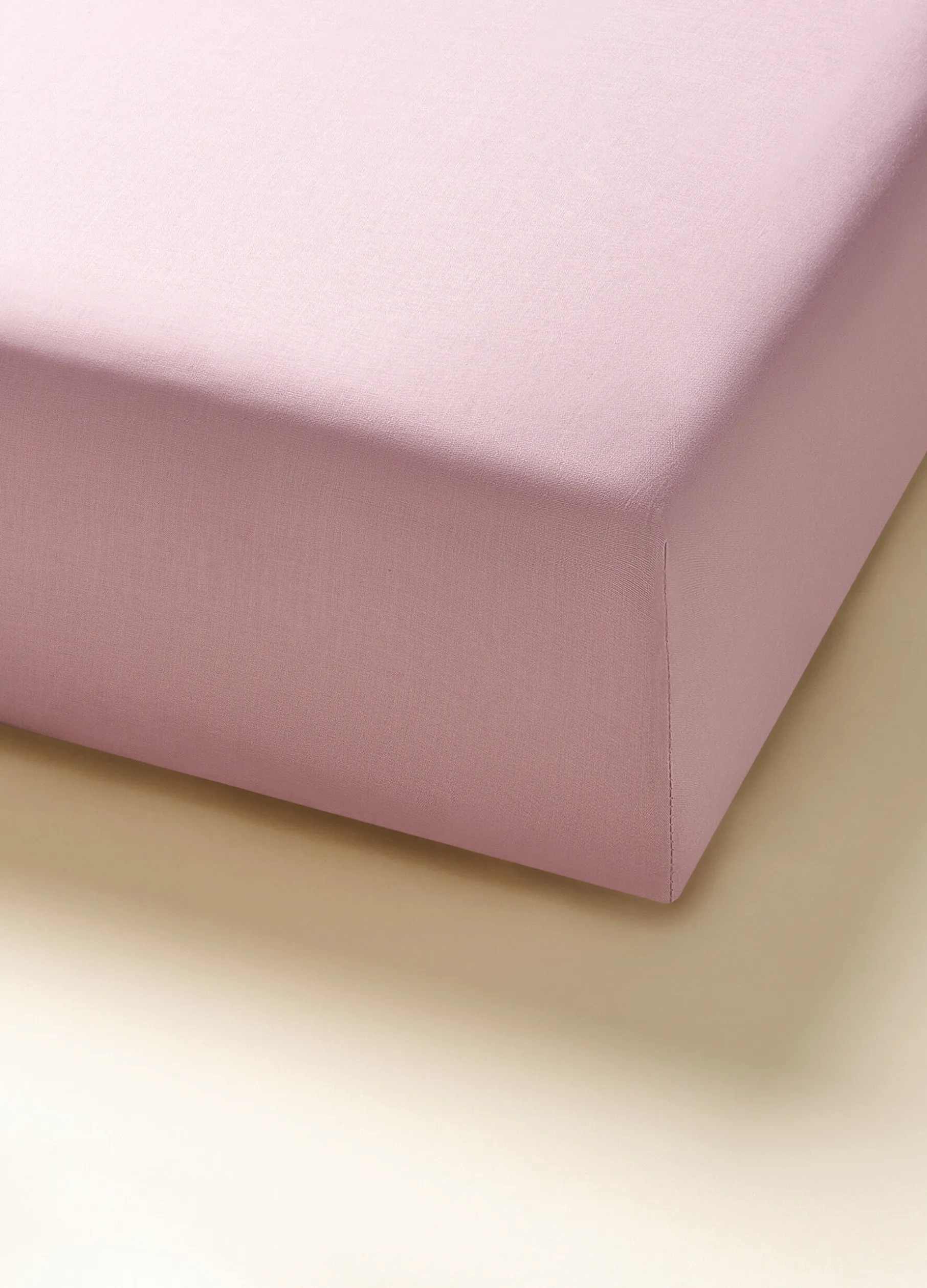 Lenzuolo con angoli per letto a una piazza e mezzo realizzato in puro cotone, dalla texture liscia e fresca, perfetta per garantire un riposo ottimale, e declinato in una delicata tonalità di rosa ciclamino.
