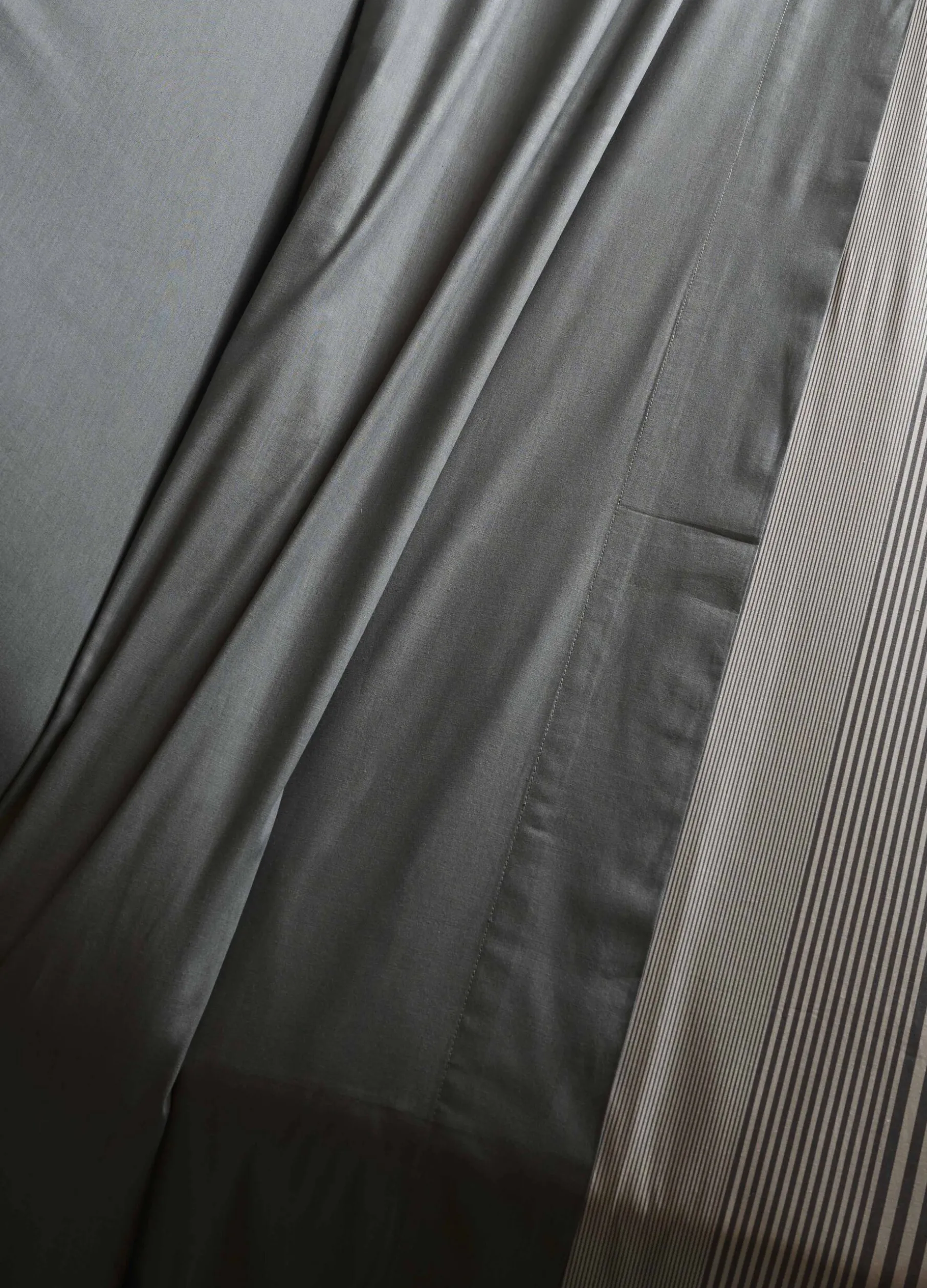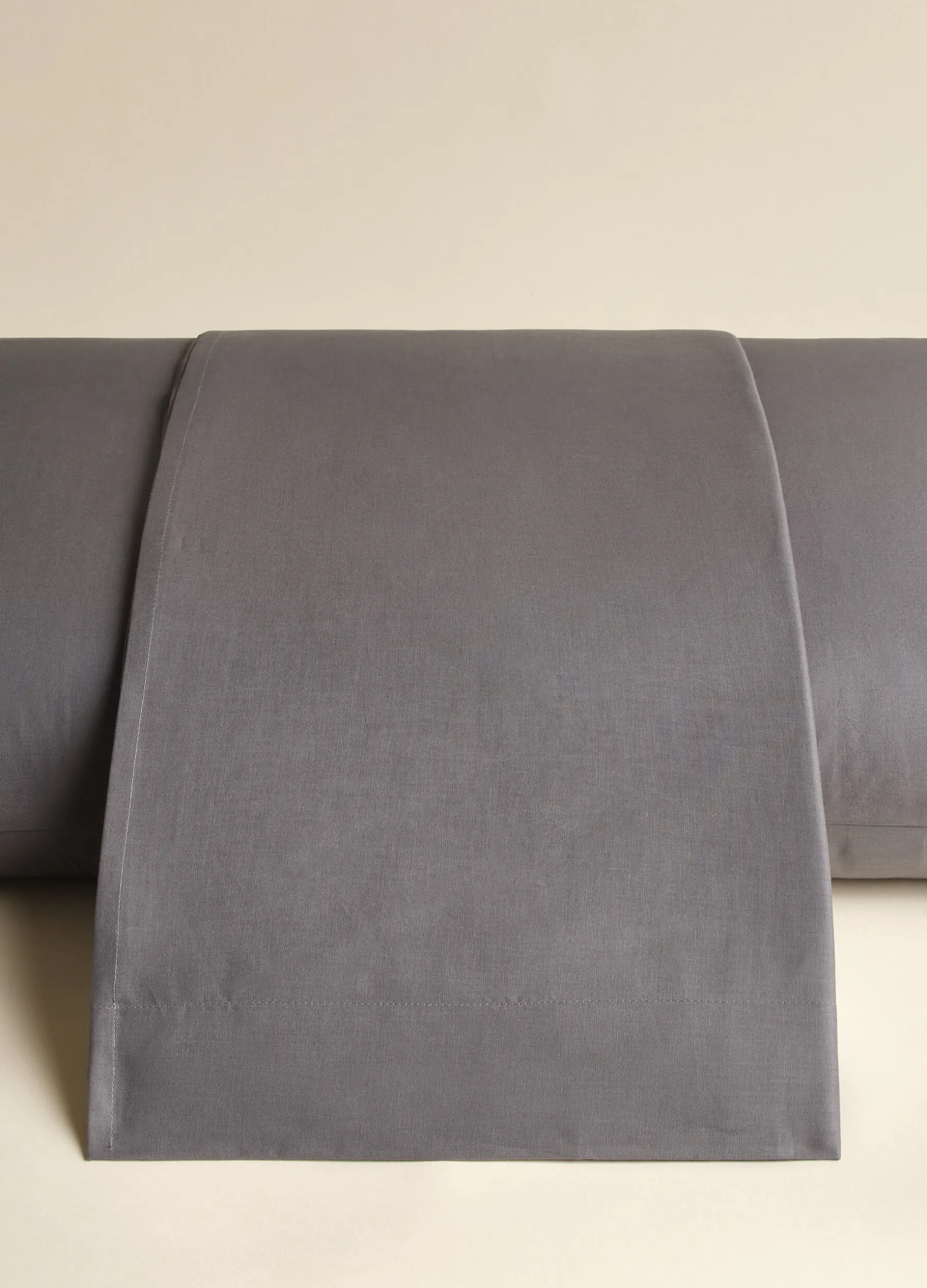 Lenzuolo a una piazza e mezzo in cotone leggero e fresco, perfetto per garantire riposo e comfort durante la notte. Il tessuto grigio antracite è arricchito da un caratteristico effetto mélange.
