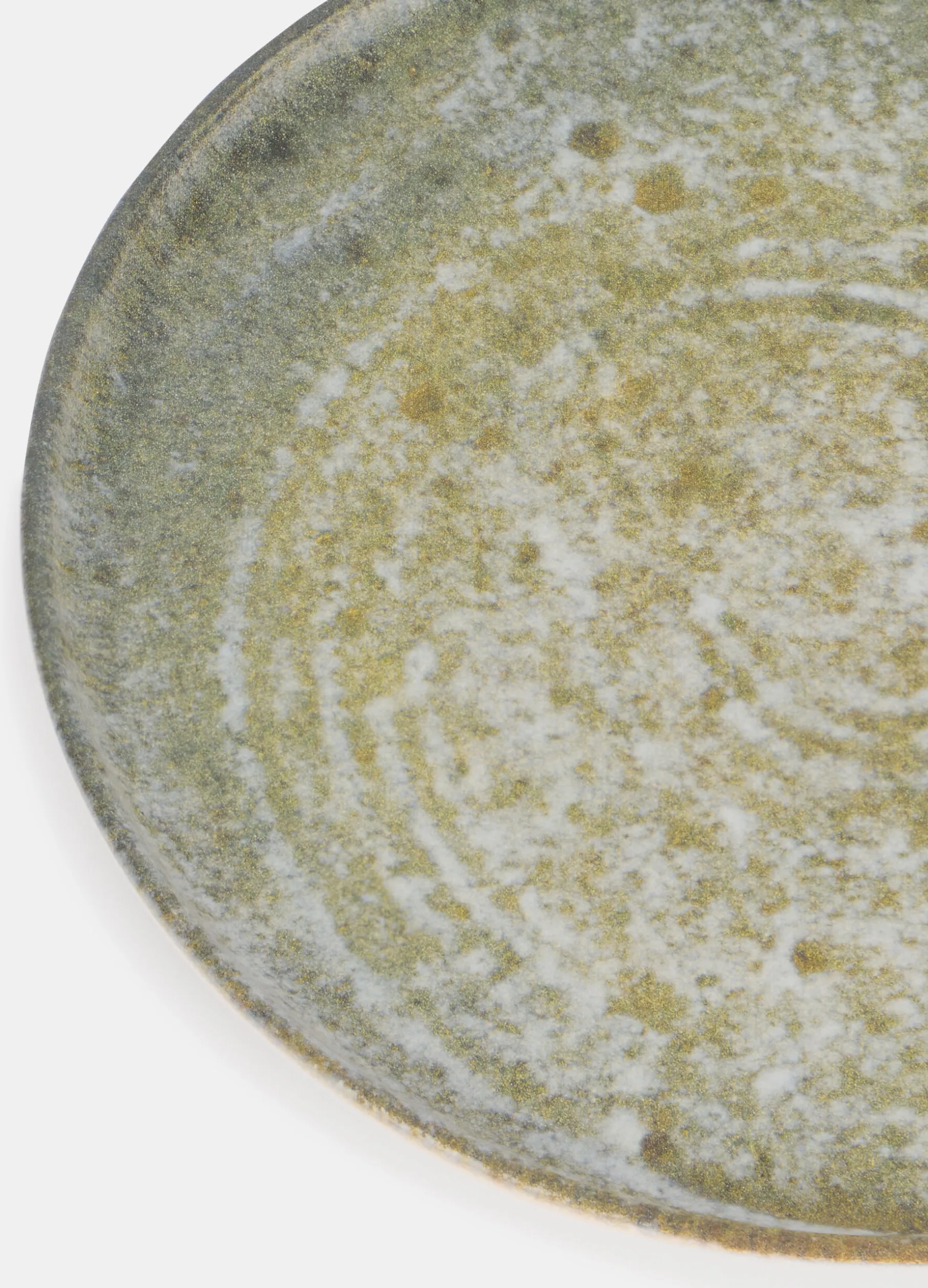 Piatto da dessert in gres, proposto in un’elegante tonalità verde sfumata. Diametro 22 cm.