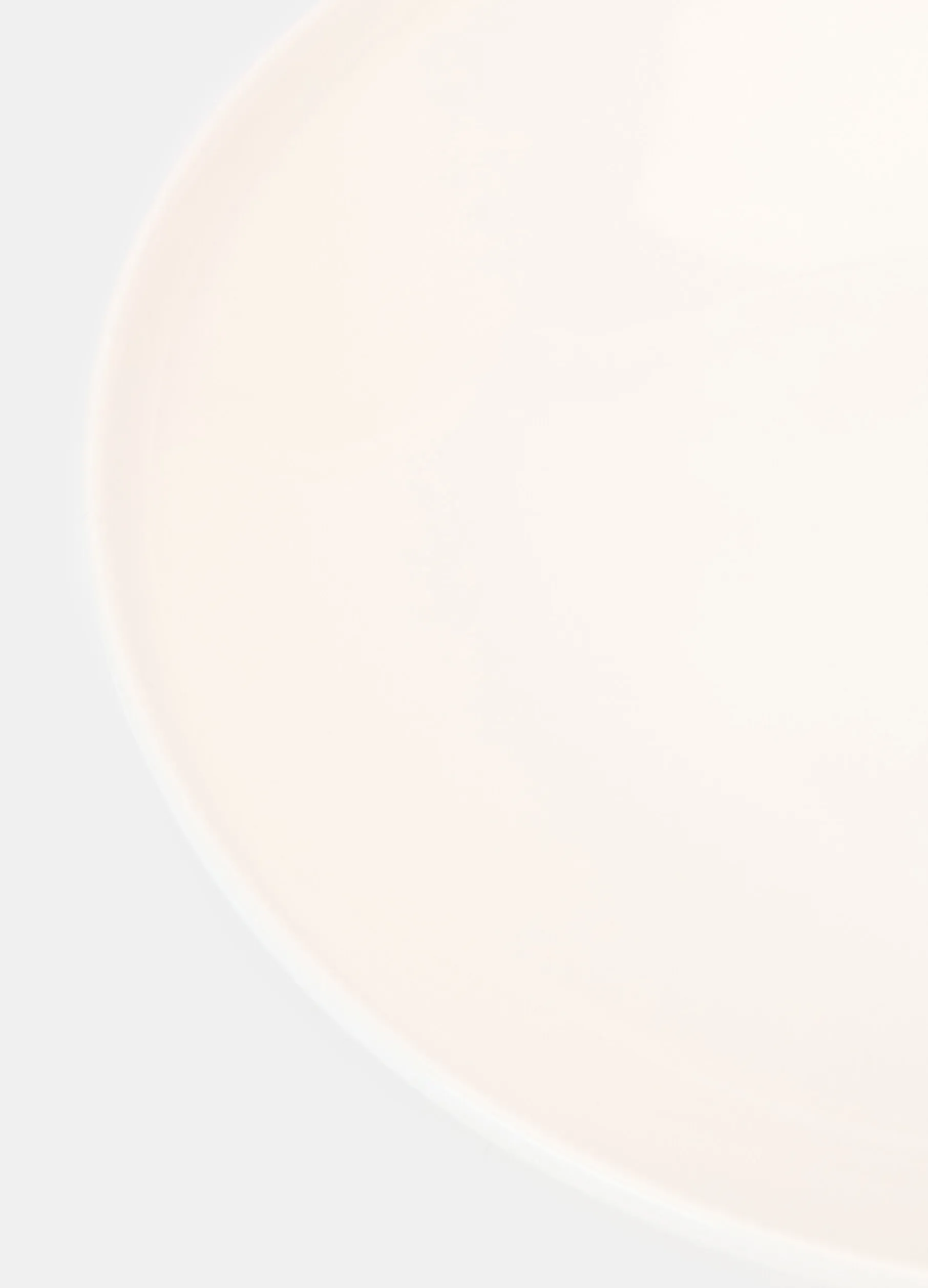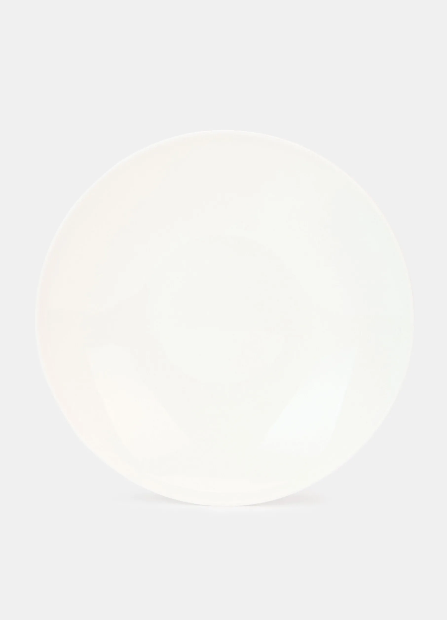 Piatto fondo in ceramica bianco avorio con bordo leggermente rialzato. Il look semplice ed essenziale lo rende perfetto per la tavola di tutti i giorni.
