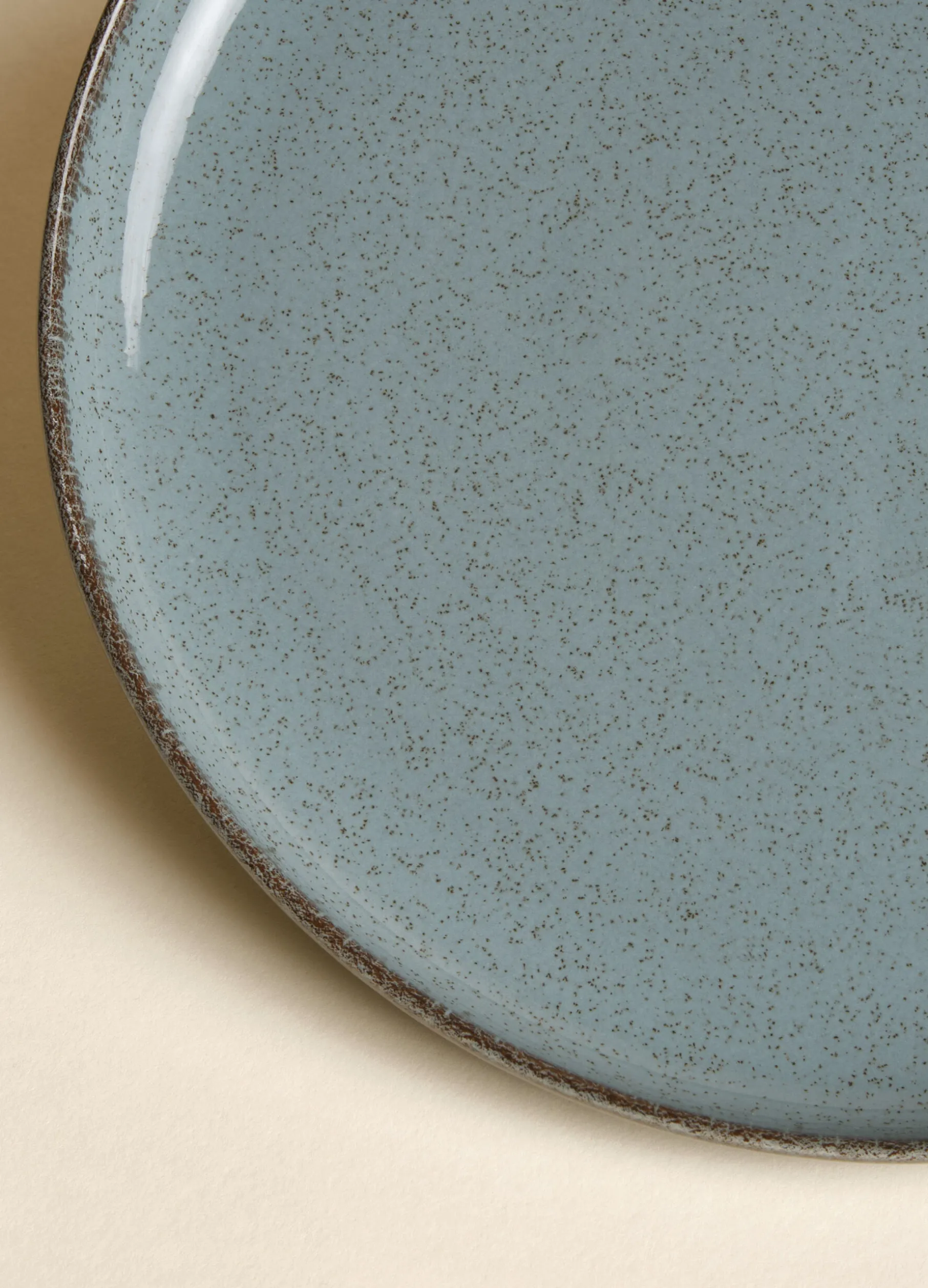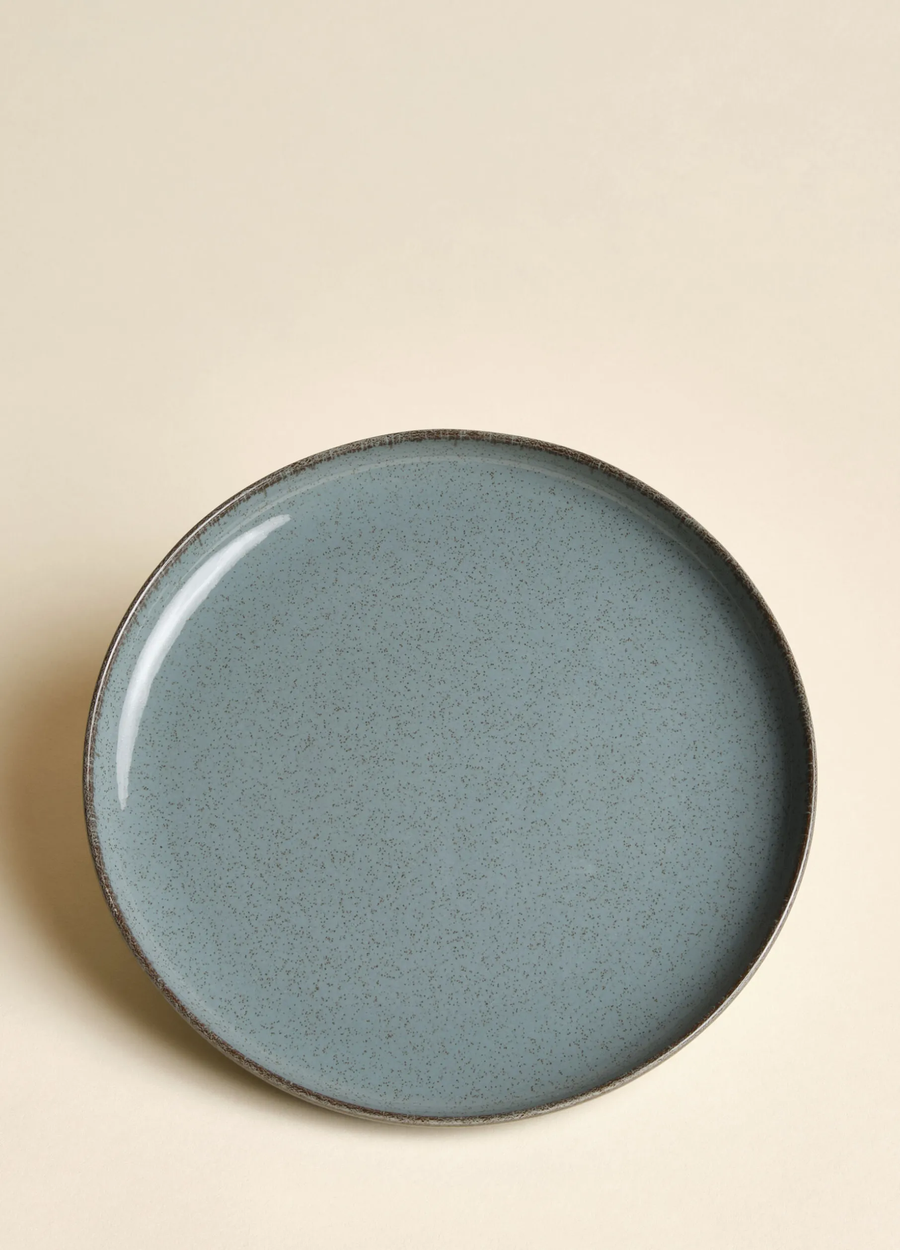 Piatto frutta in porcellana puntinata con bordo a contrasto. Diametro 19 cm.