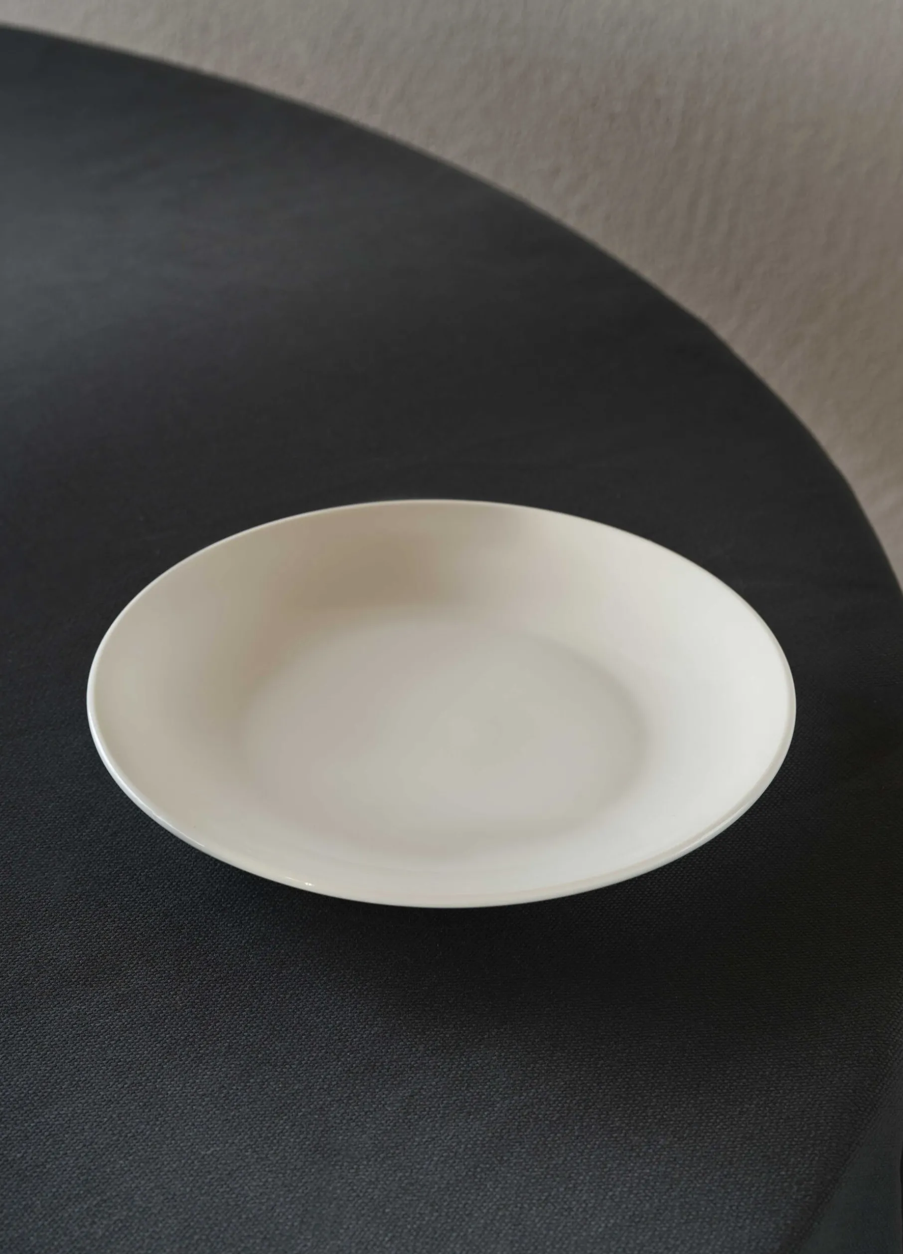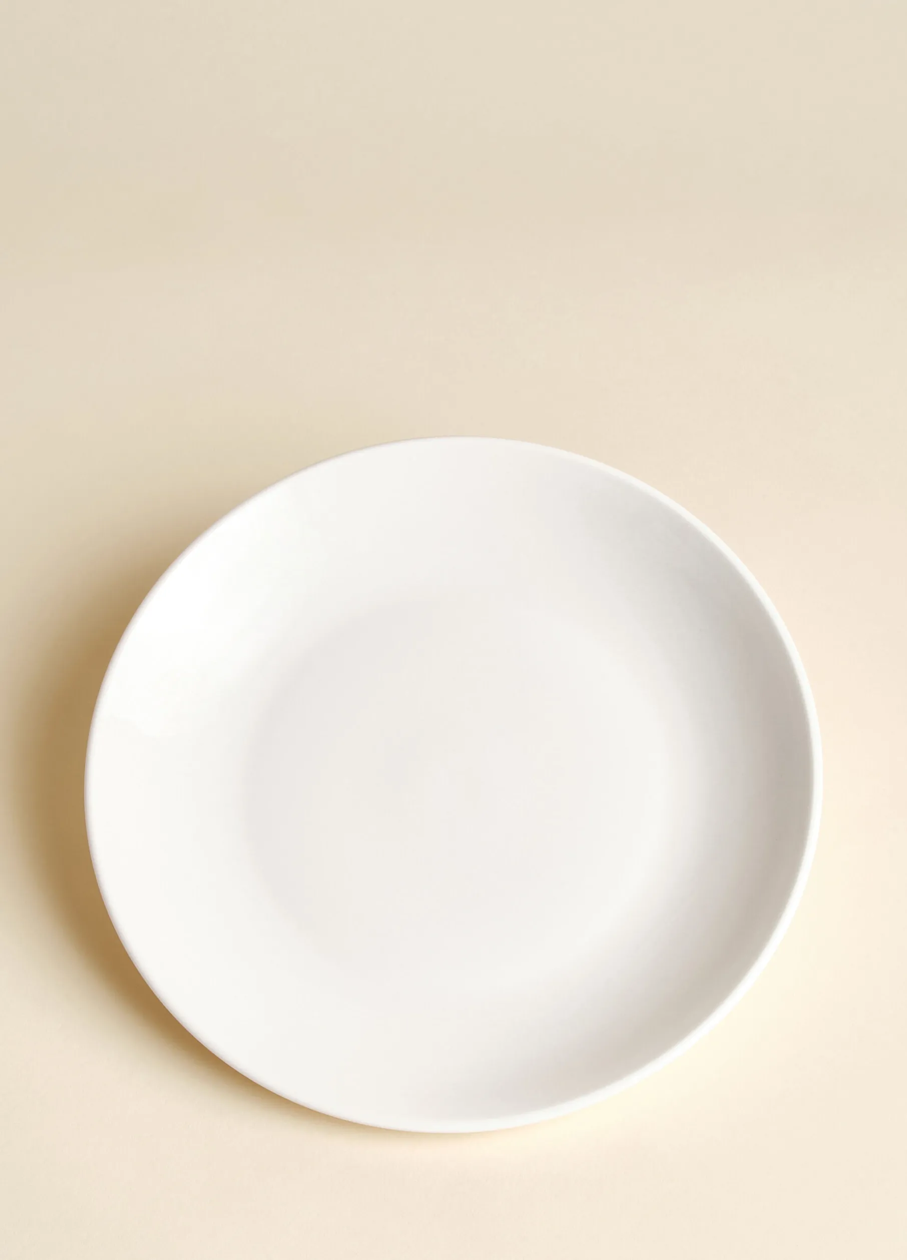 Piatto piano in porcellana color avorio. Diametro 24 cm.