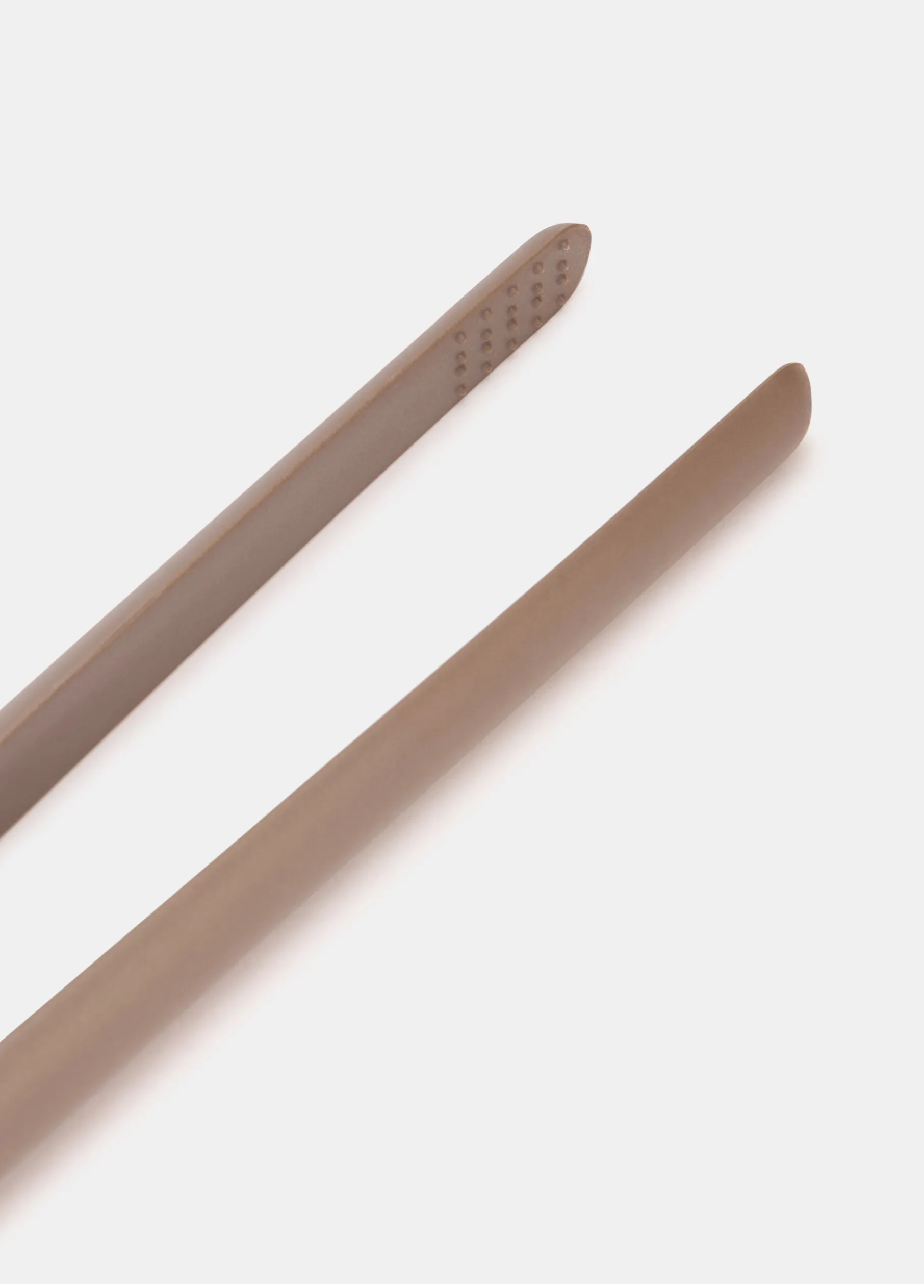 Pinze da cucina realizzate in plastica dura grigio tortora, complete di inserto ruvido all’interno e foro per appenderle.