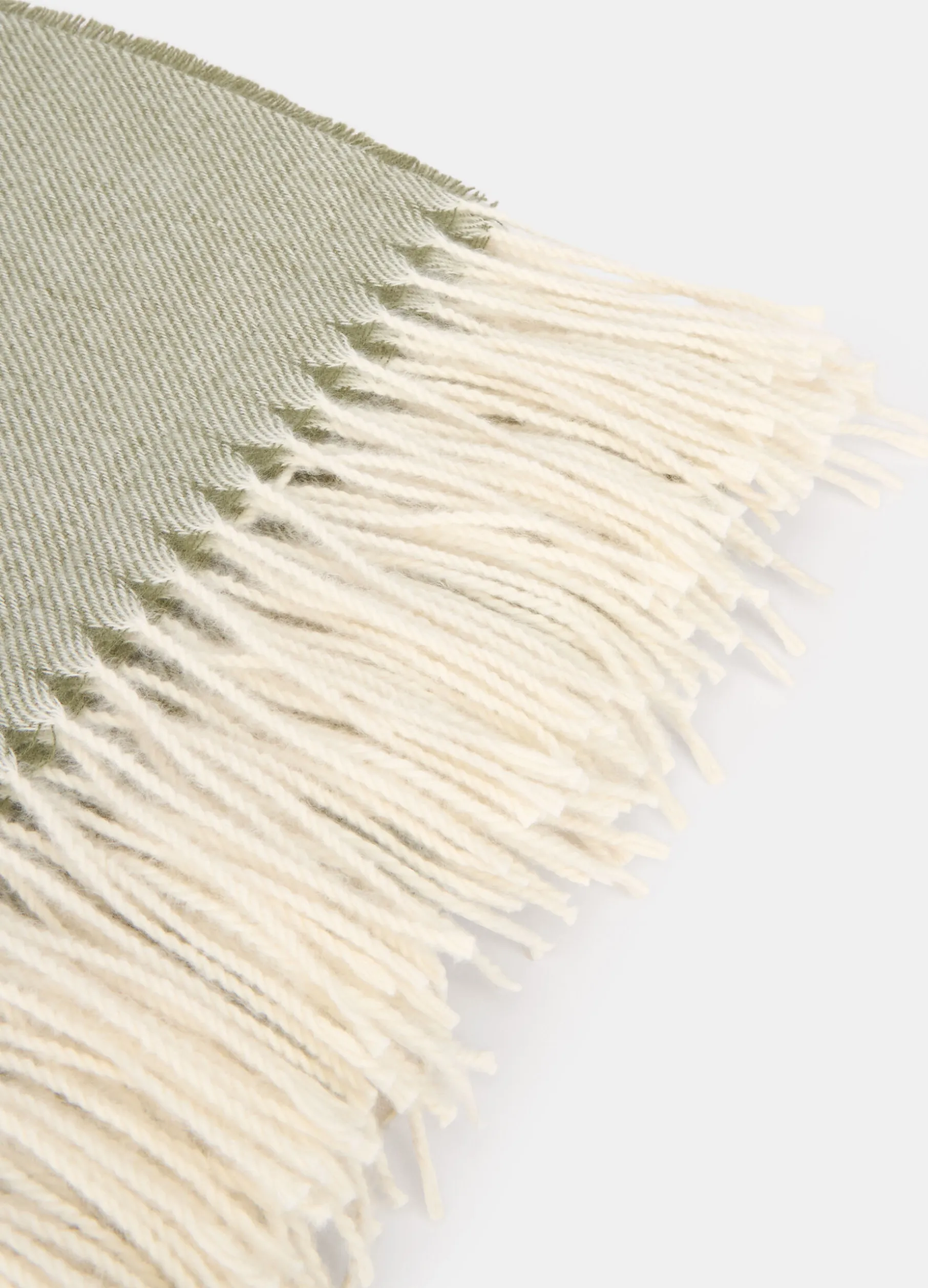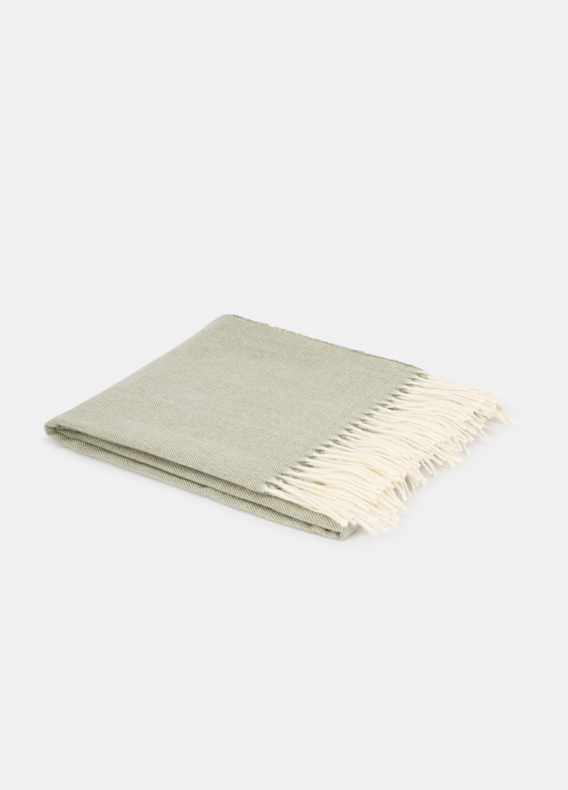 Plaid leggero e soffice, realizzato in tessuto verde chiaro leggermente vaporoso e avvolgente e caratterizzato dal motivo diagonale visibile su tutta la superficie. Completato da frange bianche attorcigliate sui lati corti. Dimensioni: 160 x 130 cm.