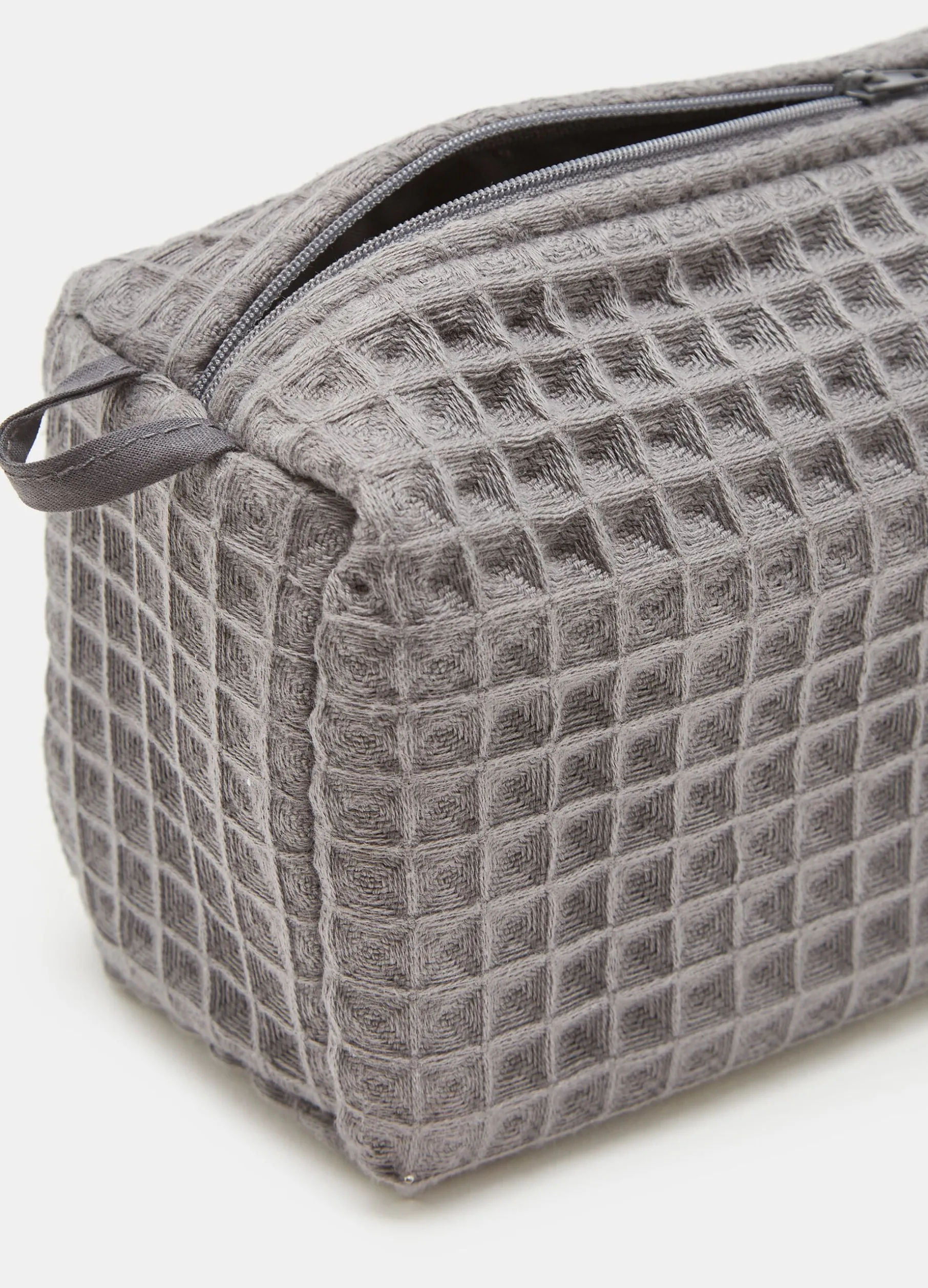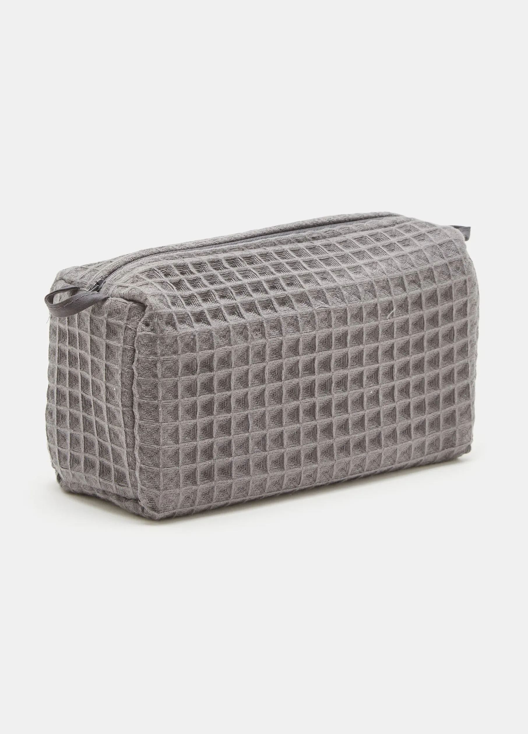 Pochette nido d’ape in puro cotone. Tinta unita. Chiusura con zip.