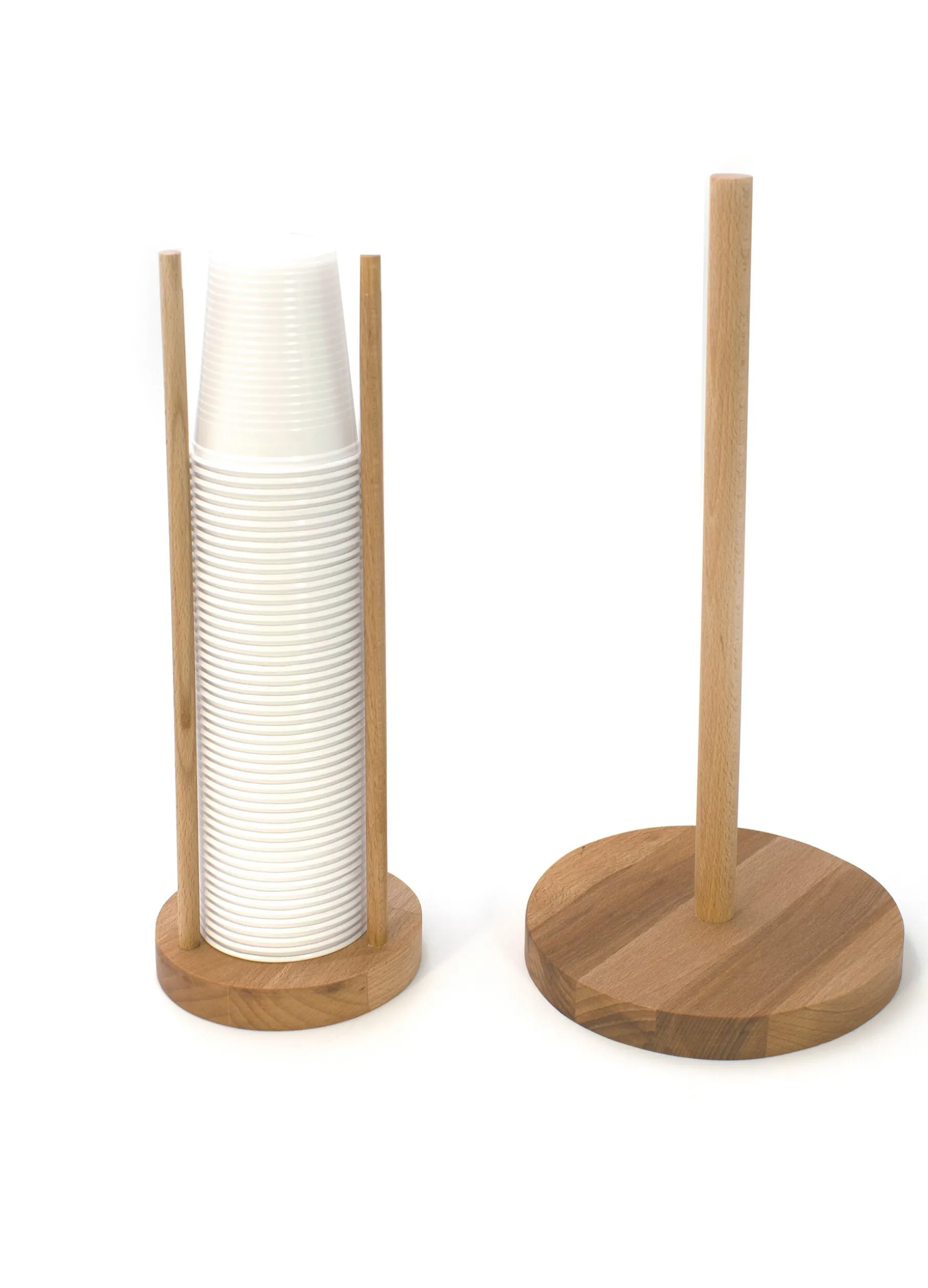 Porta bicchieri in legno di faggio massello con base rotonda. Made in Italy. Altezza 31cm.