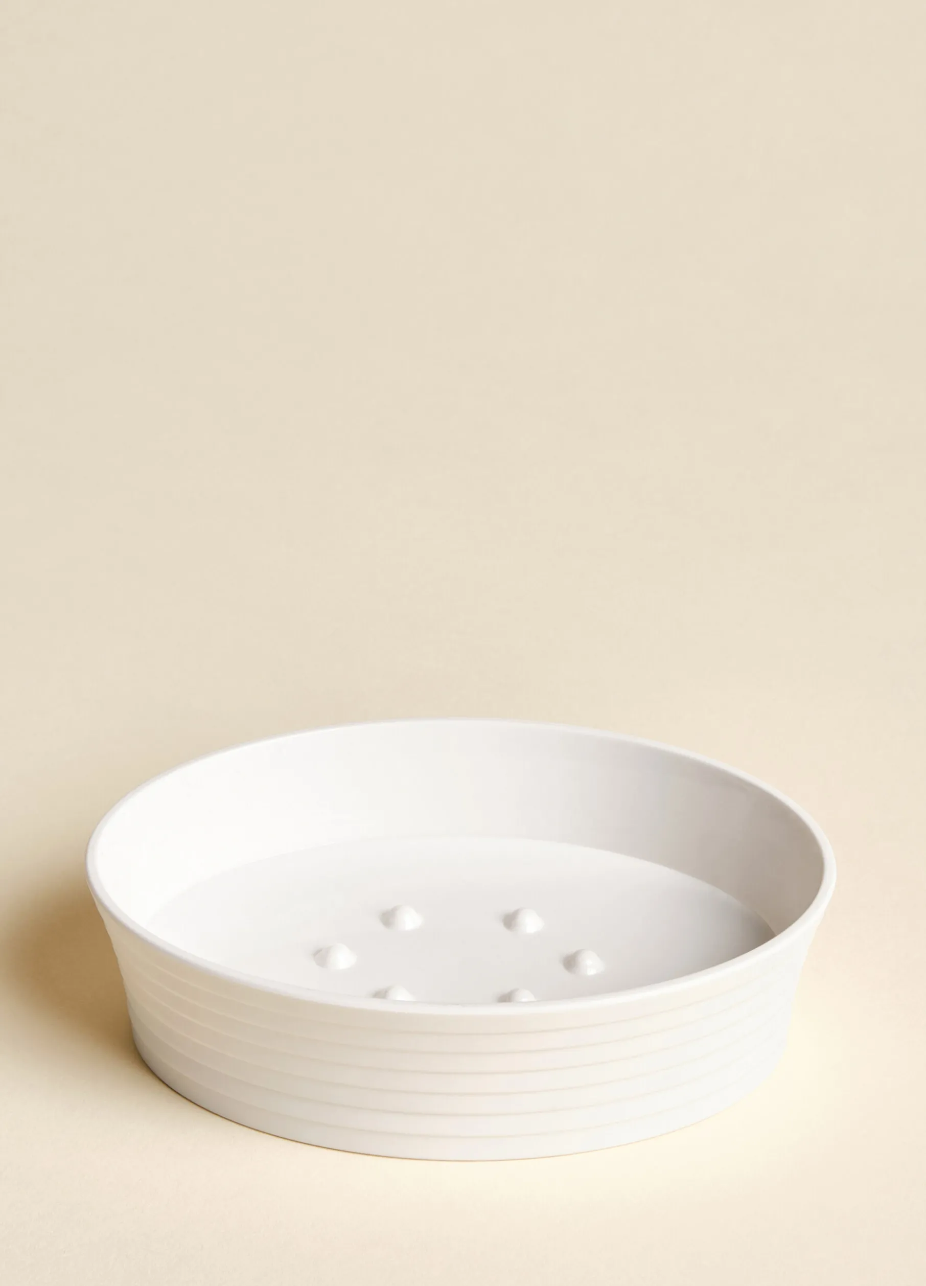 Porta sapone a righe in plastica. Dimensioni 9,9×3,7×13,4cm.