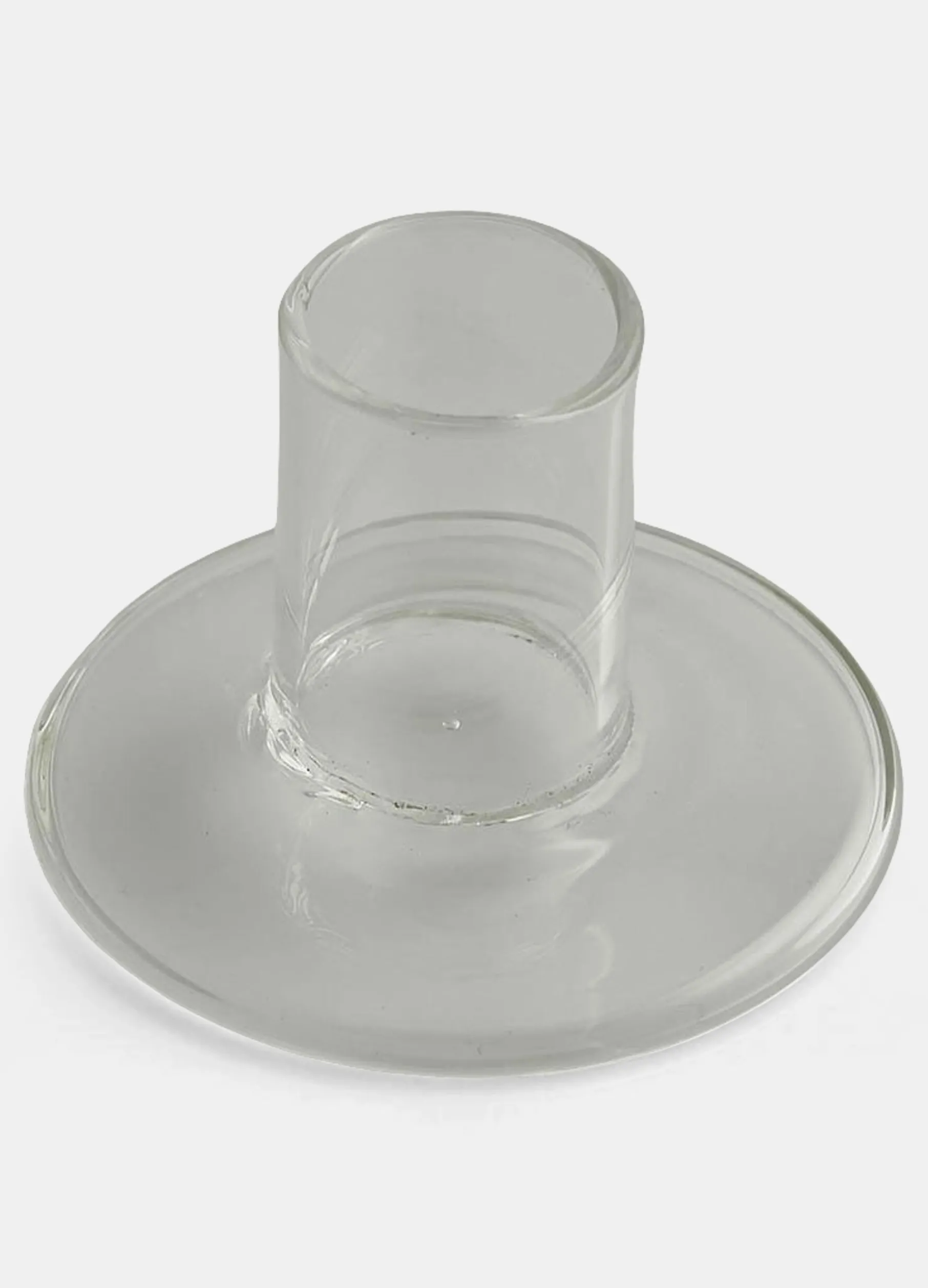 Portacandela conica in vetro trasparente. Dimensioni 24 cm.