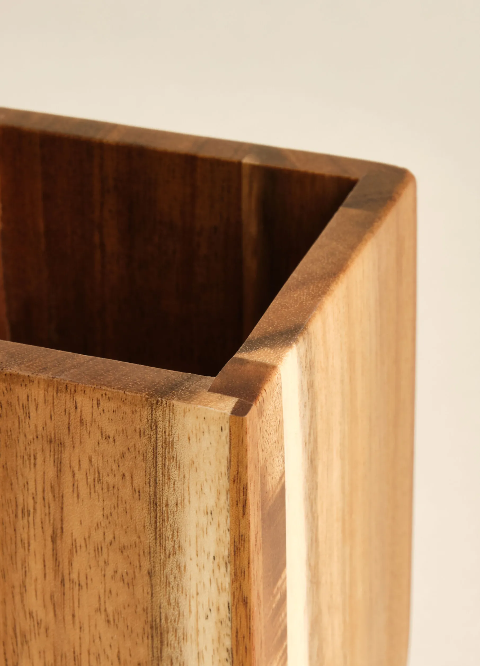 Portaspazzolini in legno di acacia. Forma quadrata.
